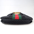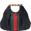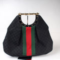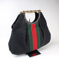 This Gucci GG Canvas Metal Bamboois eye catching bag. The exterior is in the classic Gucci GG canvas.