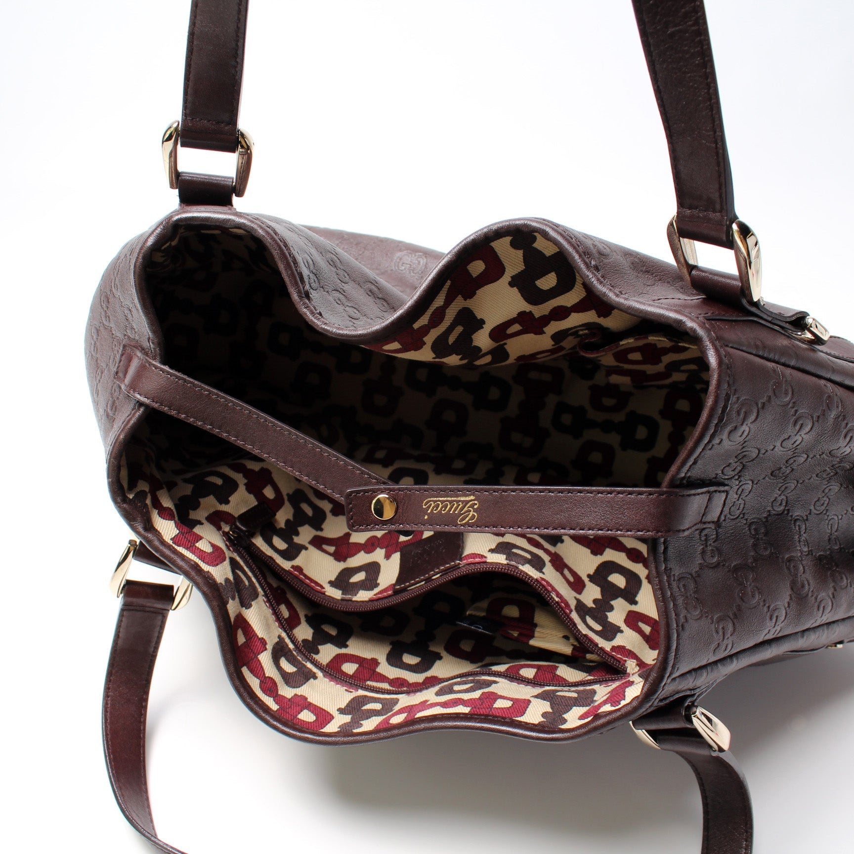 This Gucci Abbey Toteis eye catching bag. The exterior is in the classic Guccissima leather.