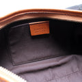 Exterior: The exterior canvas is free of any rips or cracks. The leather corners show minor wear.