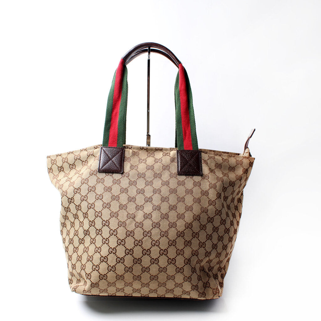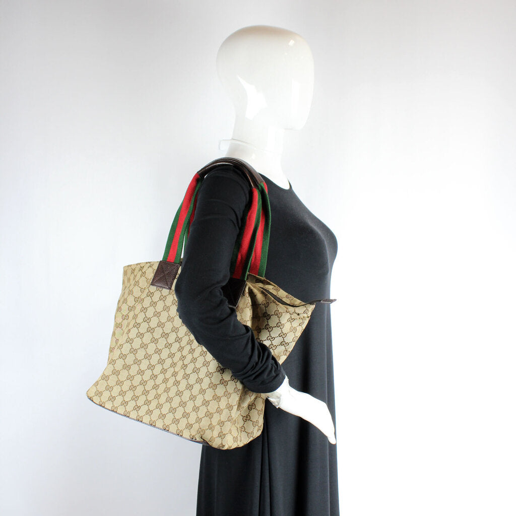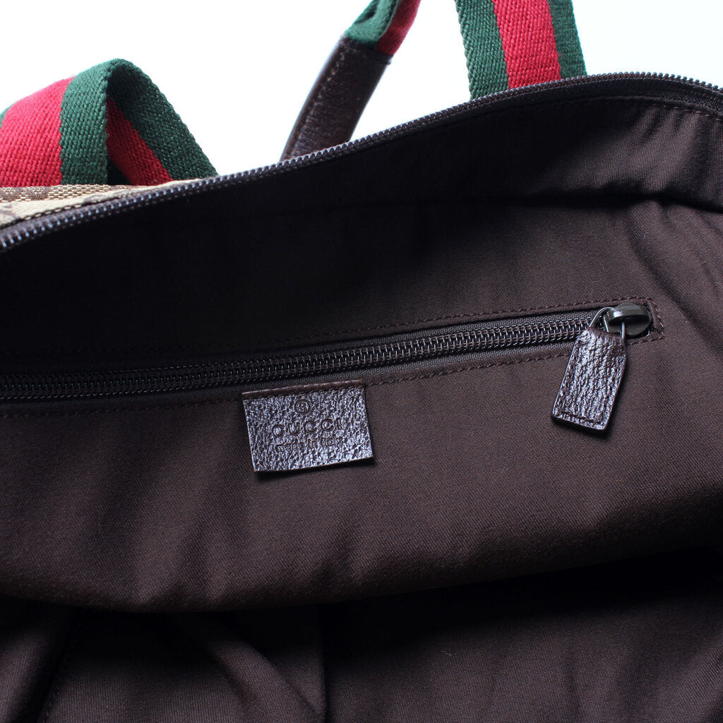 This Gucci Web Handle Toteis eye catching bag. The exterior is in the classic GG canvas.