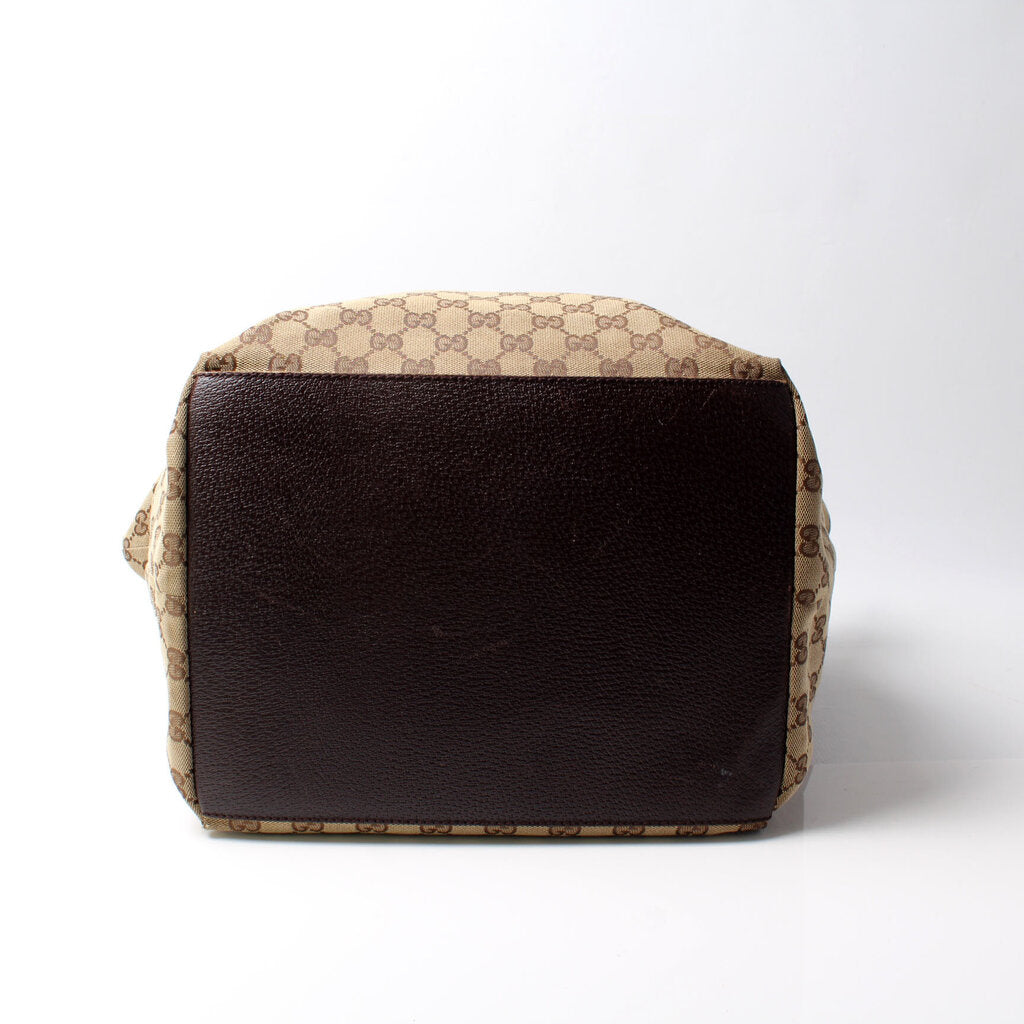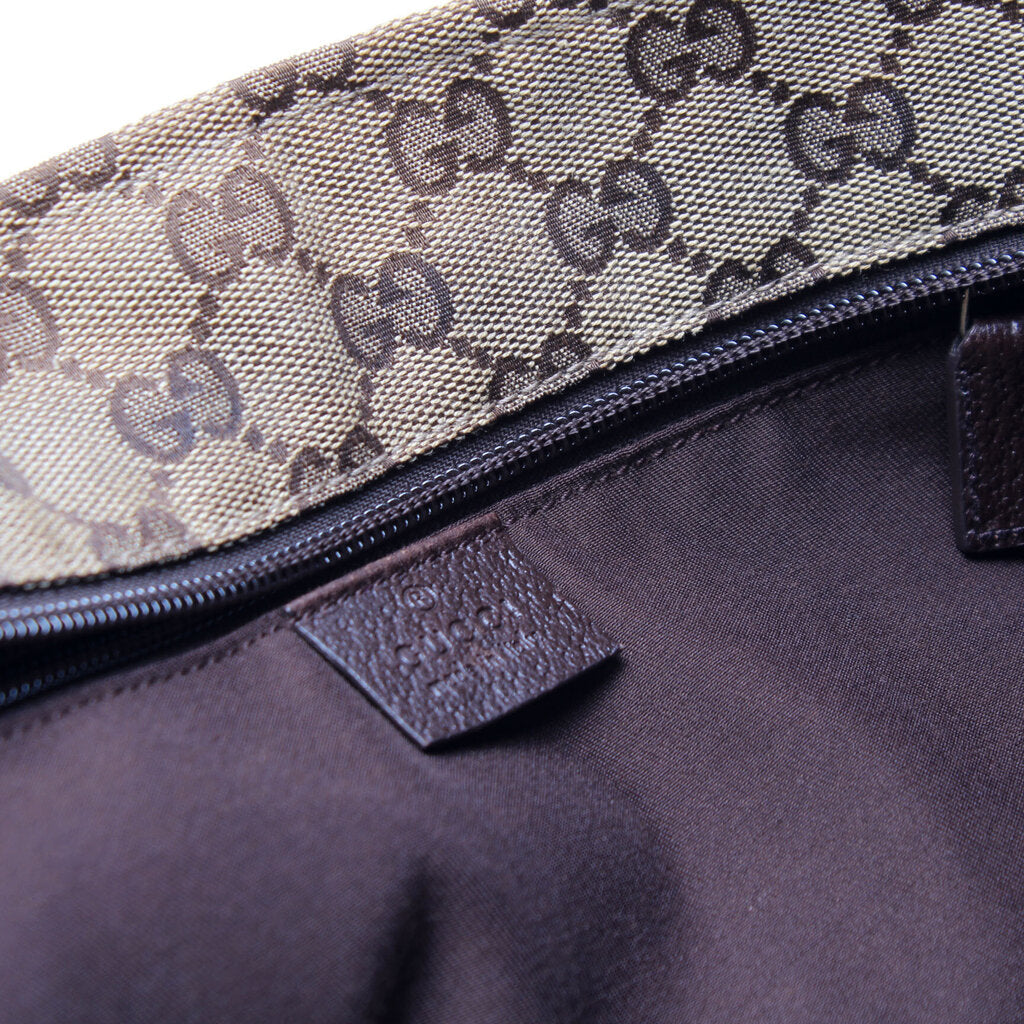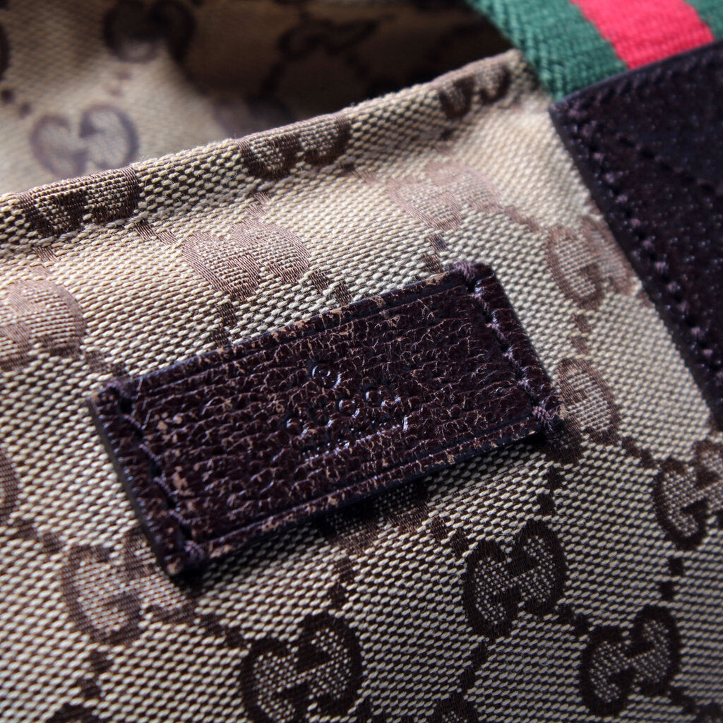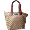 This Gucci Web Handle Toteis eye catching bag. The exterior is in the classic GG canvas.