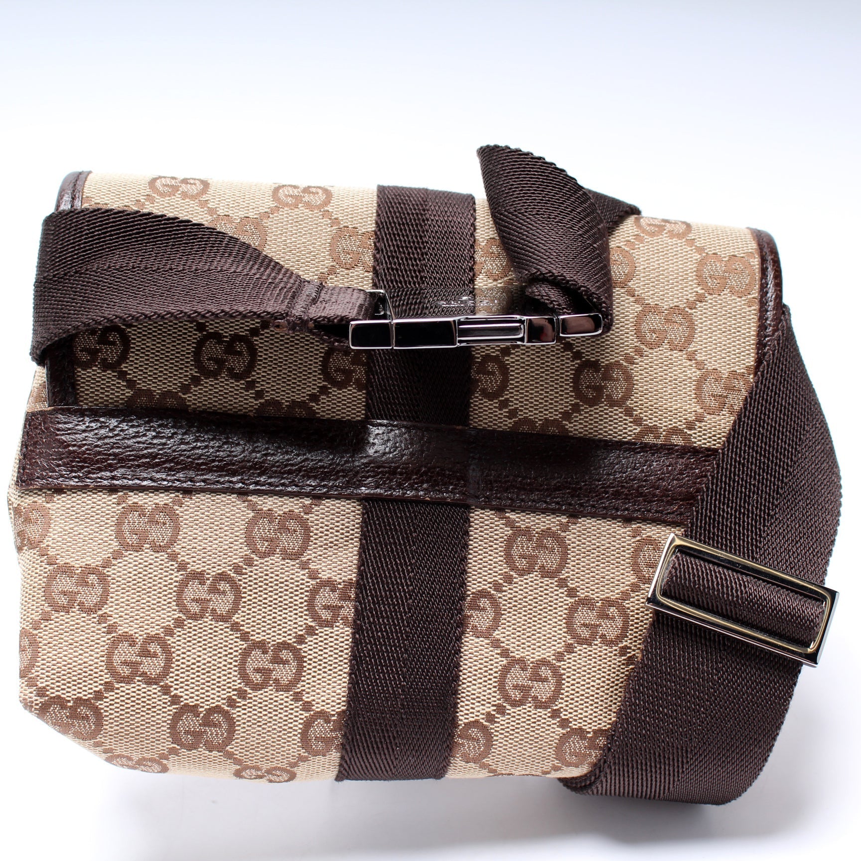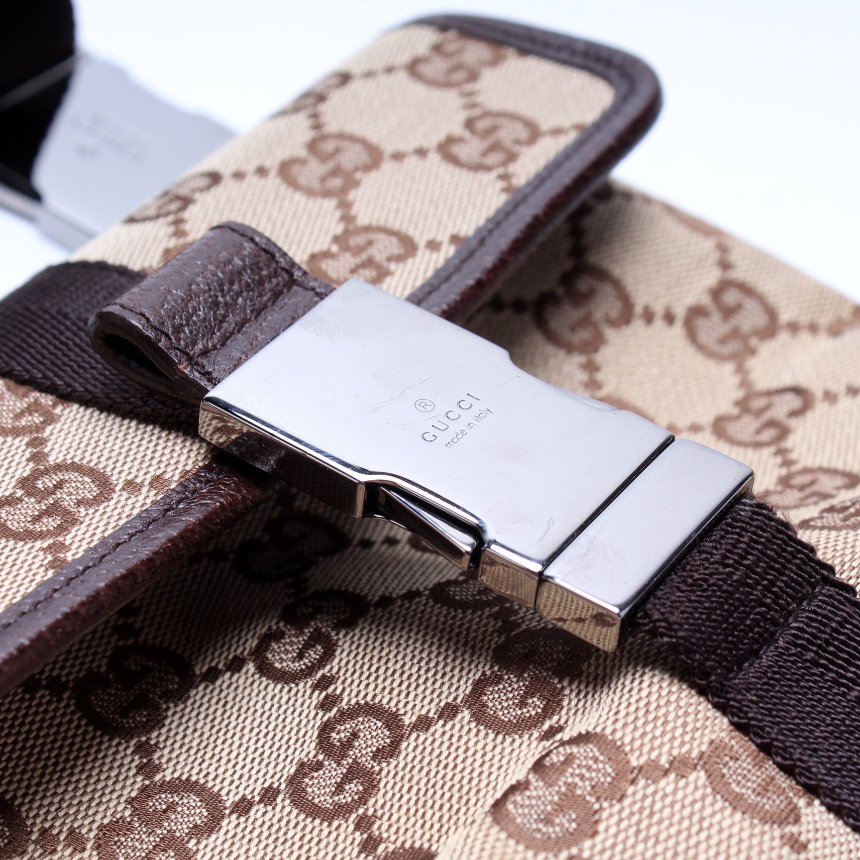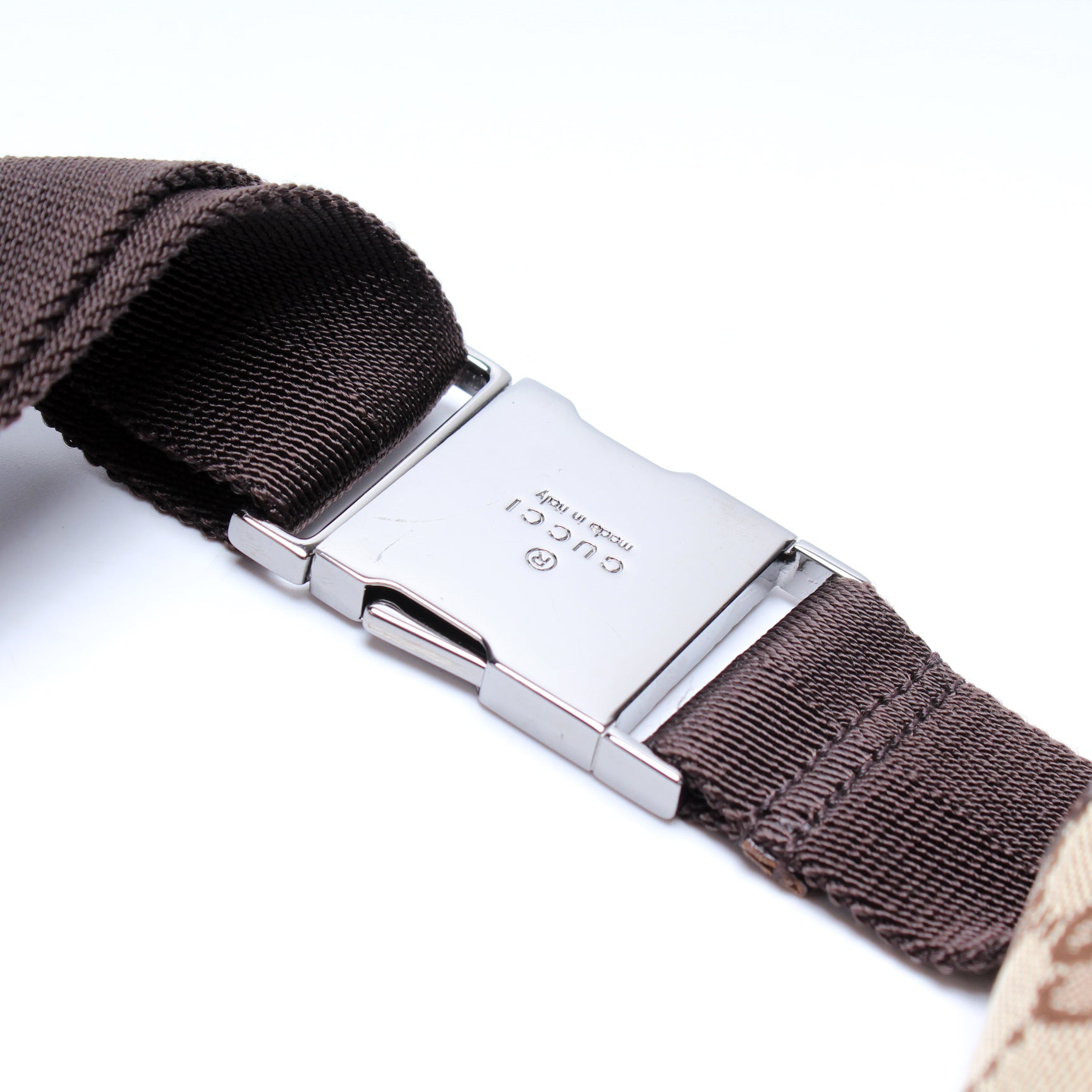 This Gucci GG Canvas Small Buckle Belt Bagis eye catching bag. The exterior is in the classic GG canvas.