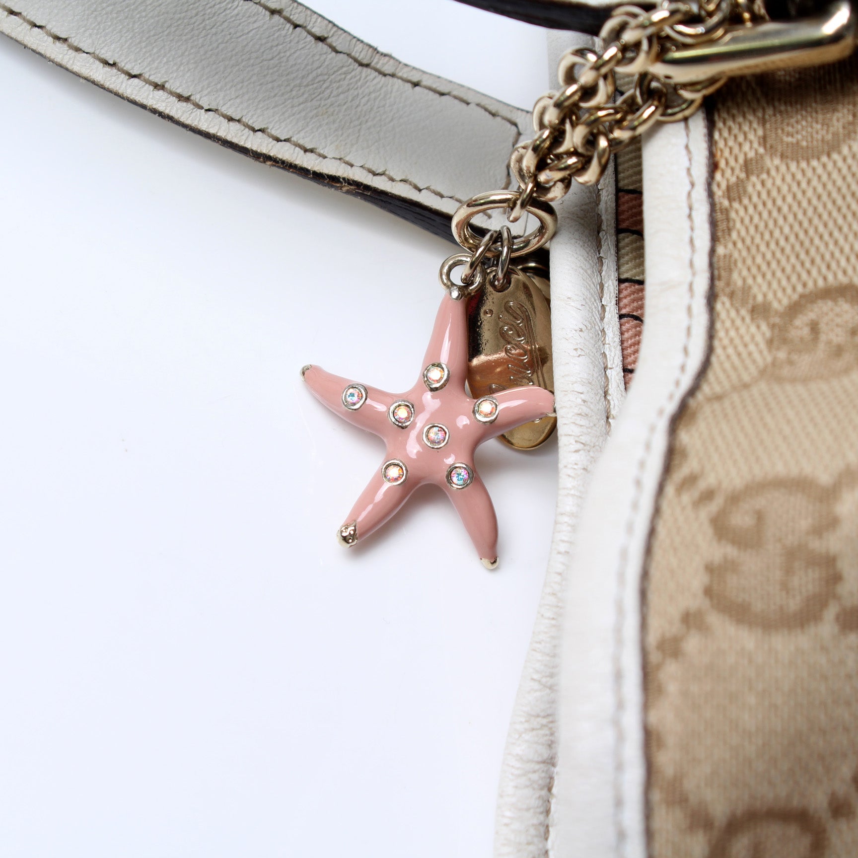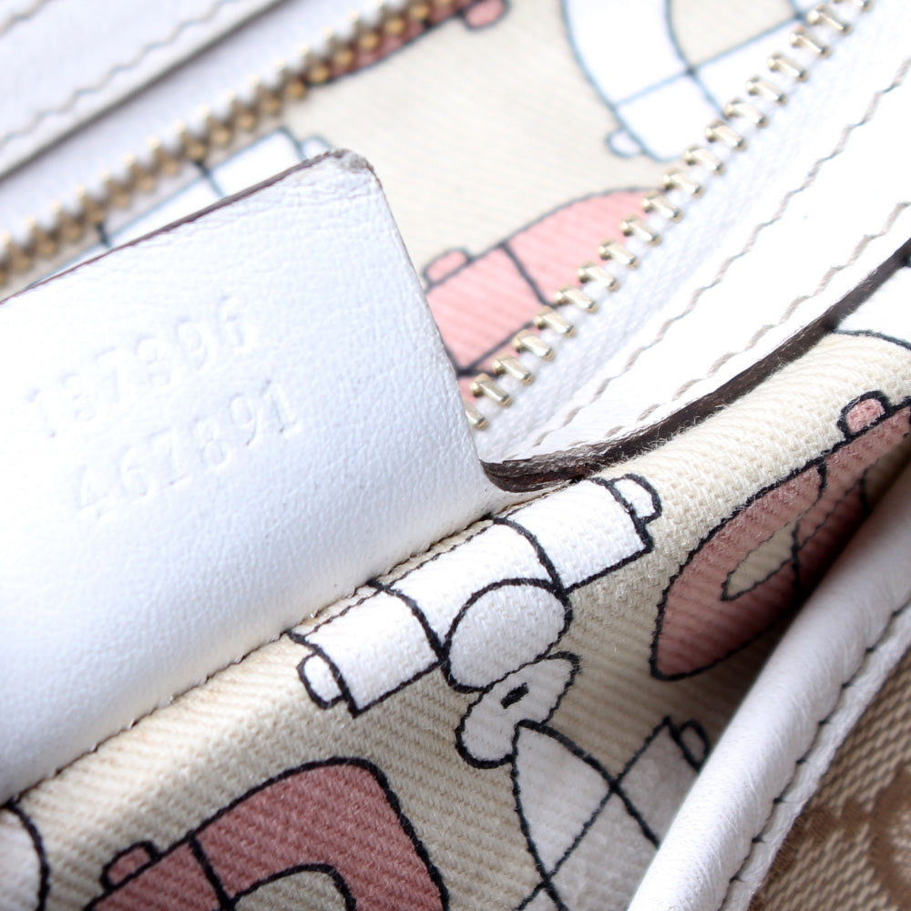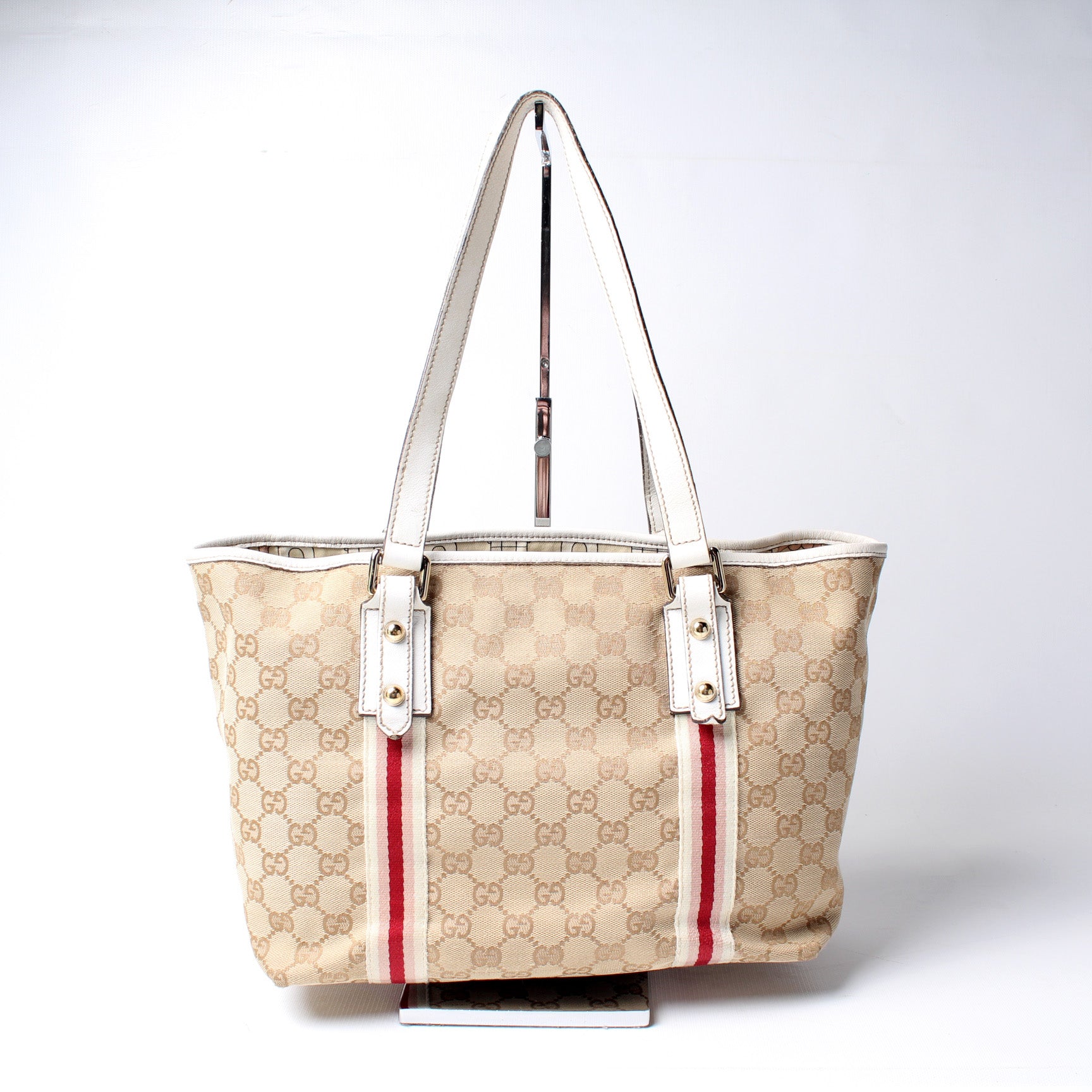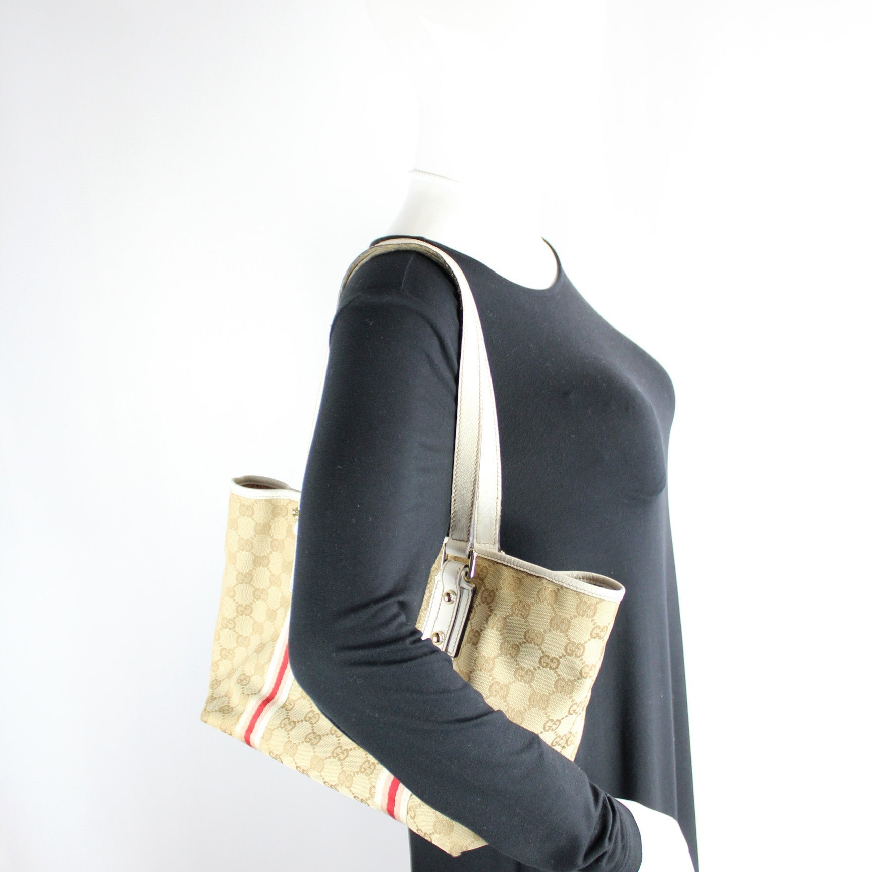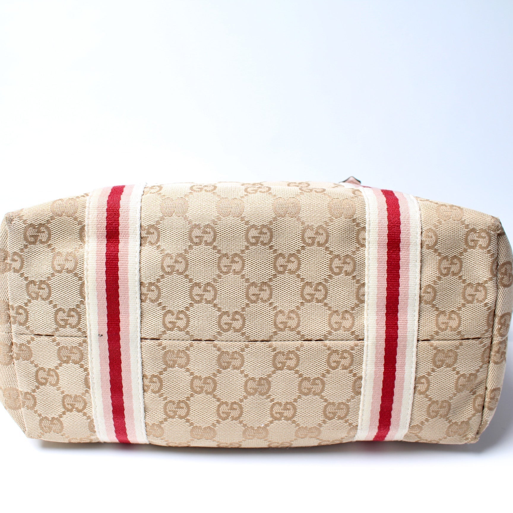 This Gucci Jolicoeur Tote Bagis eye catching bag. The exterior is in the classic GG canvas.