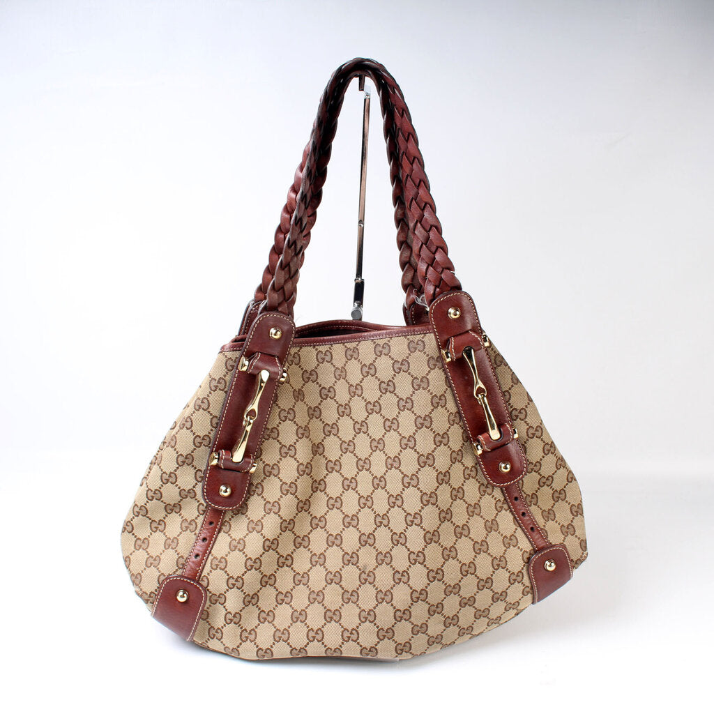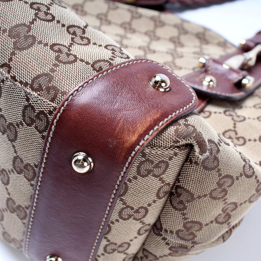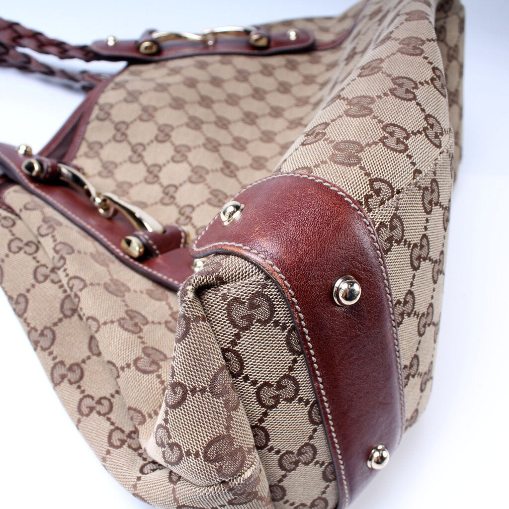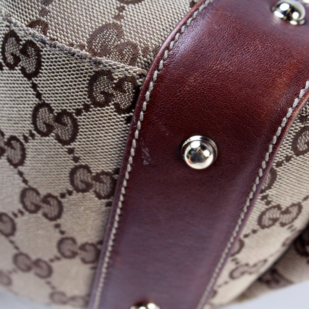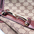 This Gucci Horsebit Hobois eye catching bag. The exterior is in the classic Gucci GG canvas.