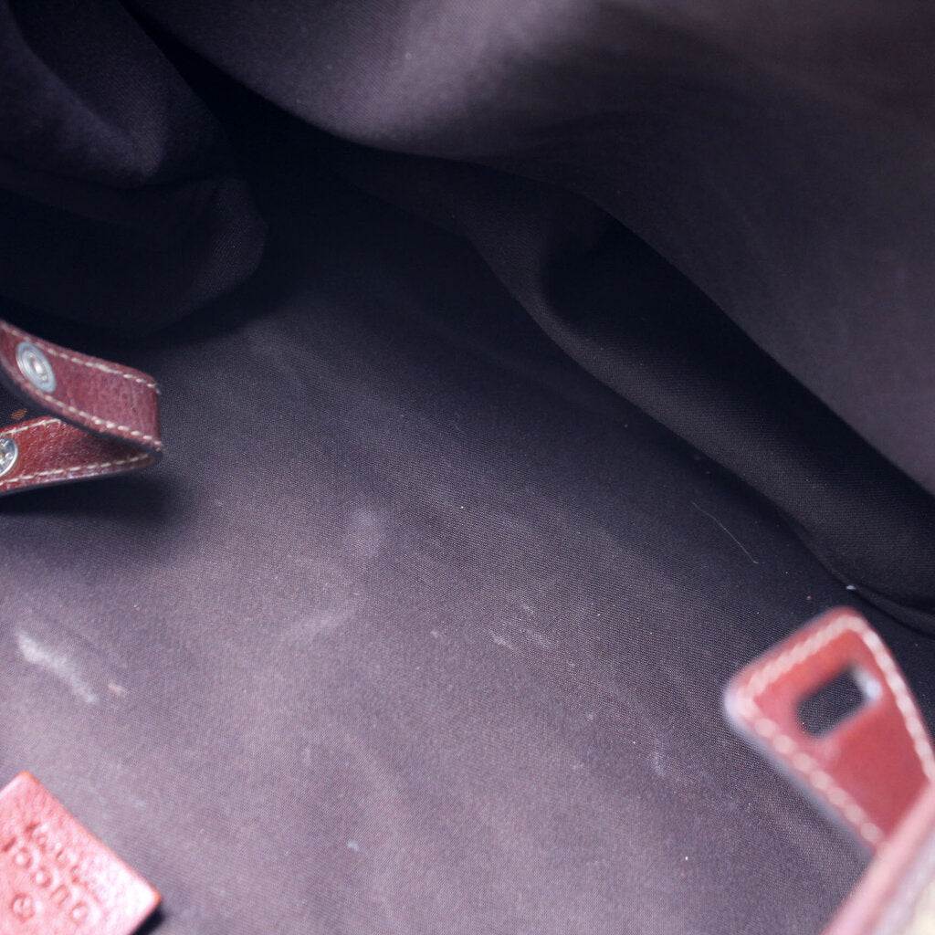 Interior: The is free of rips or tears. The interior features one zipper pocket that has minimal staining inside.