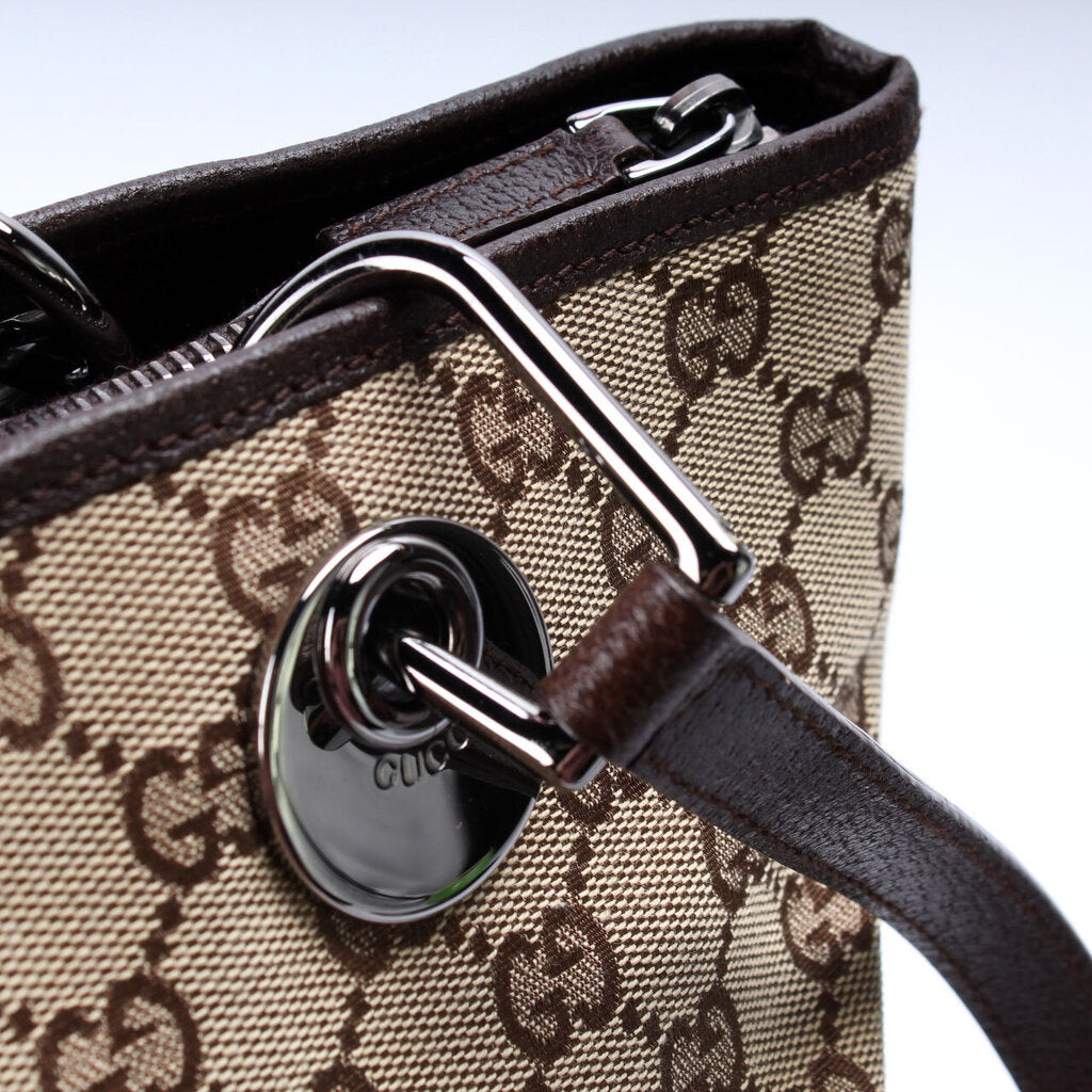 This Gucci Eclipse GG Bagis eye catching bag. The exterior is in the classic Gucci GG canvas.