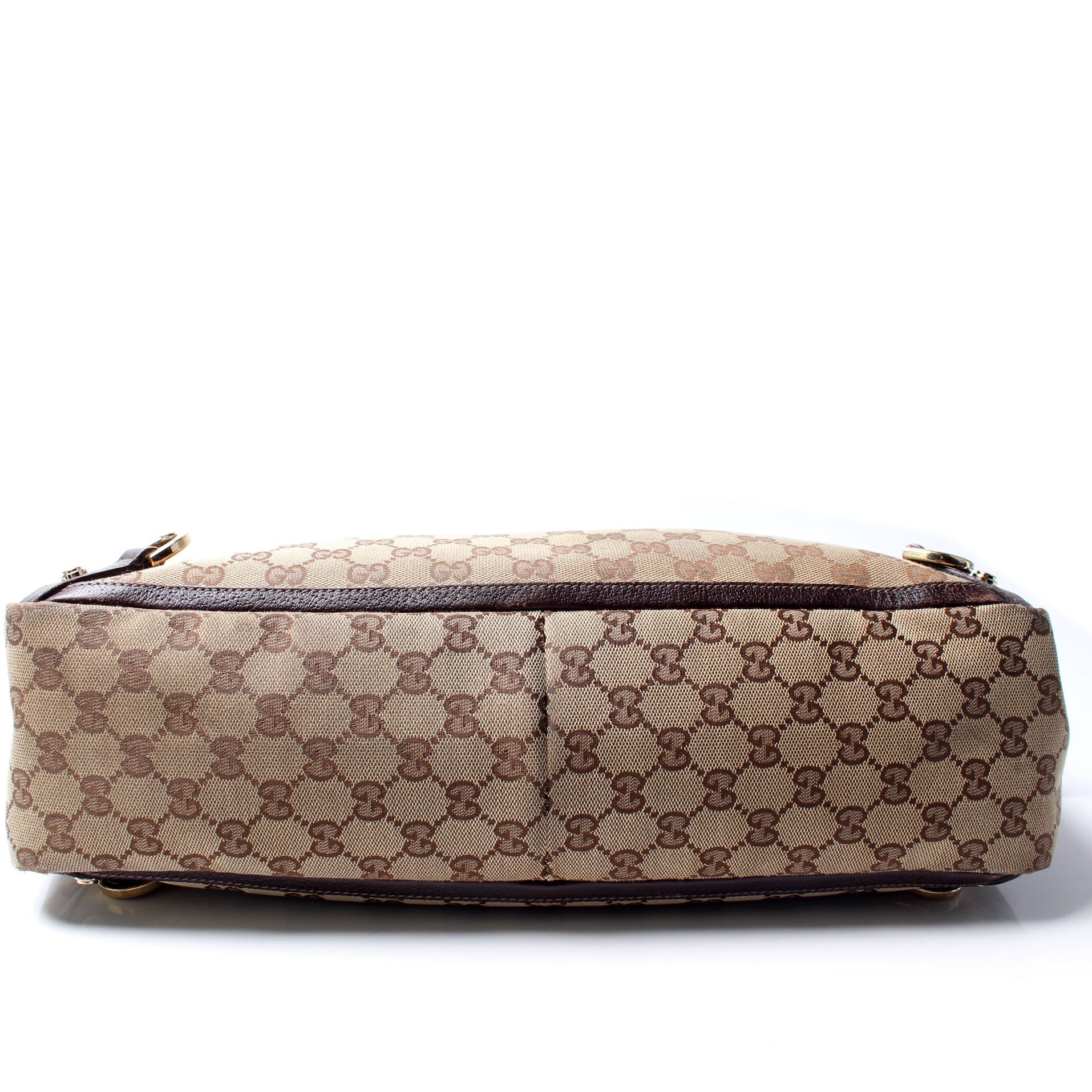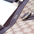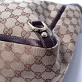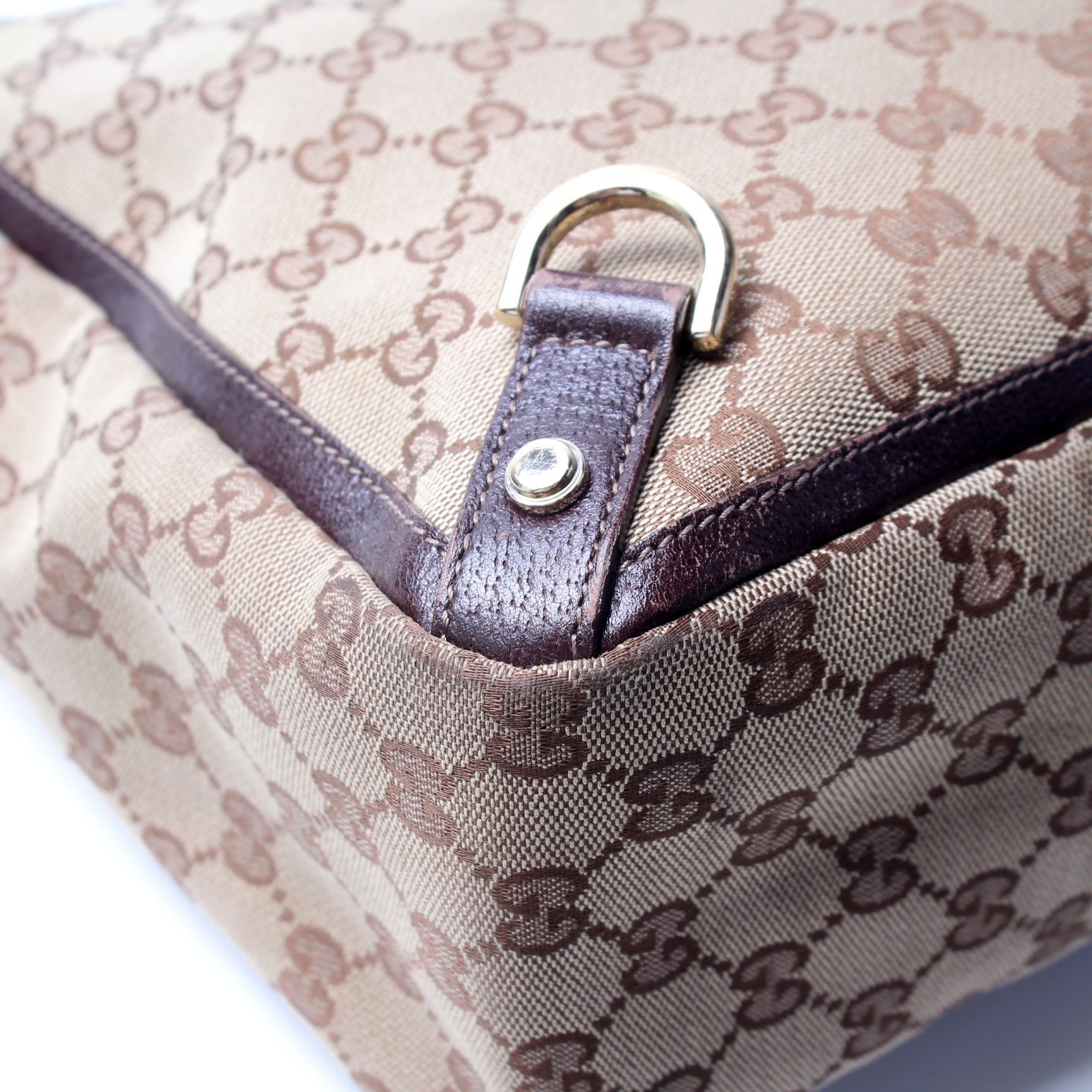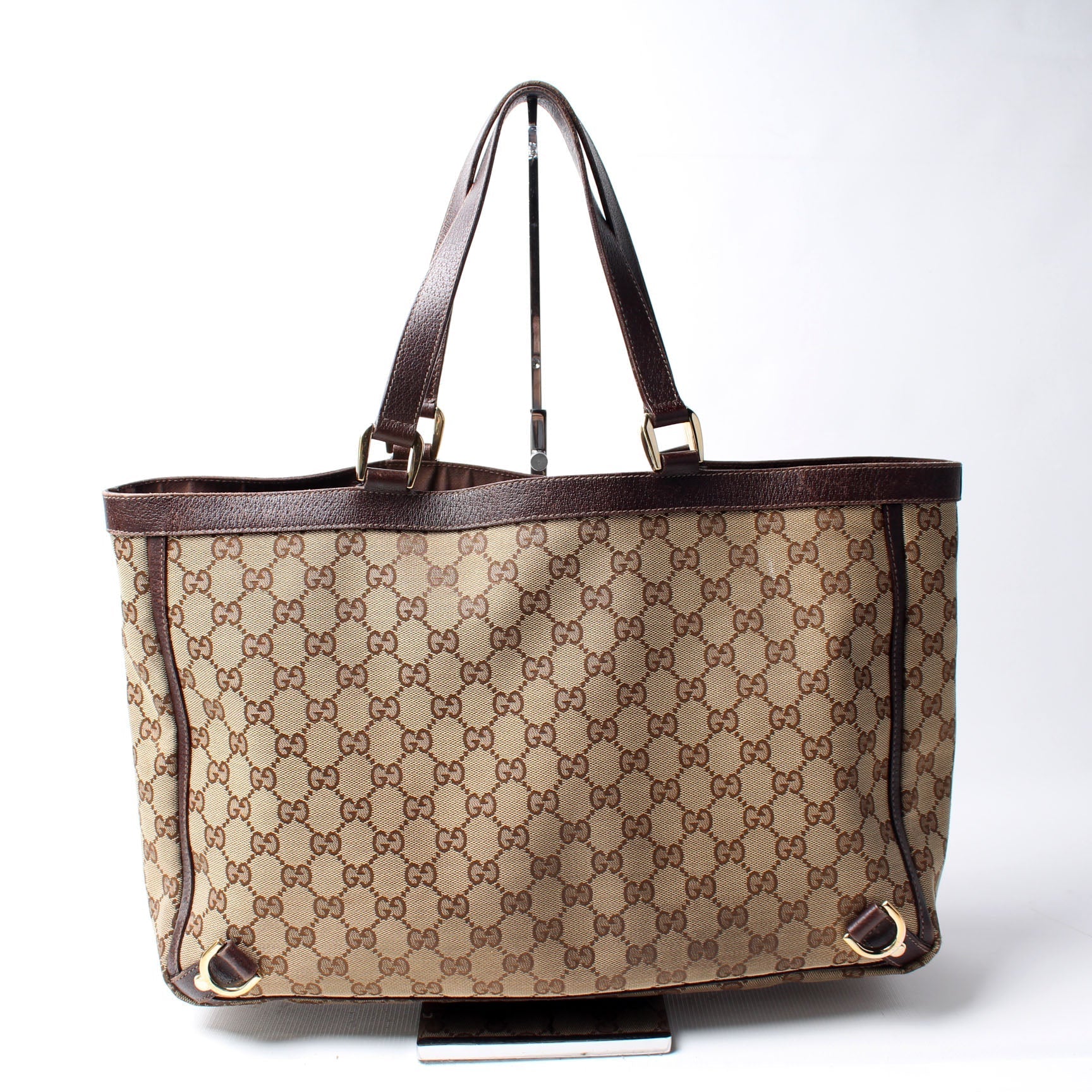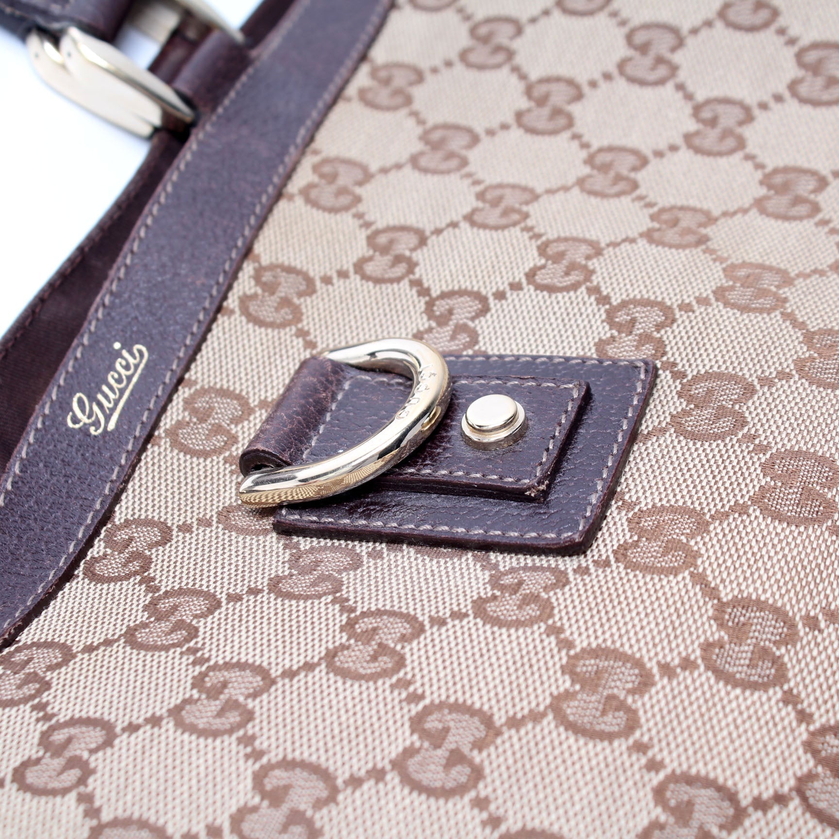This Gucci GG Canvas Abbey Toteis eye catching bag. The exterior is in the classic GG canvas.