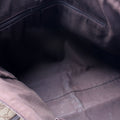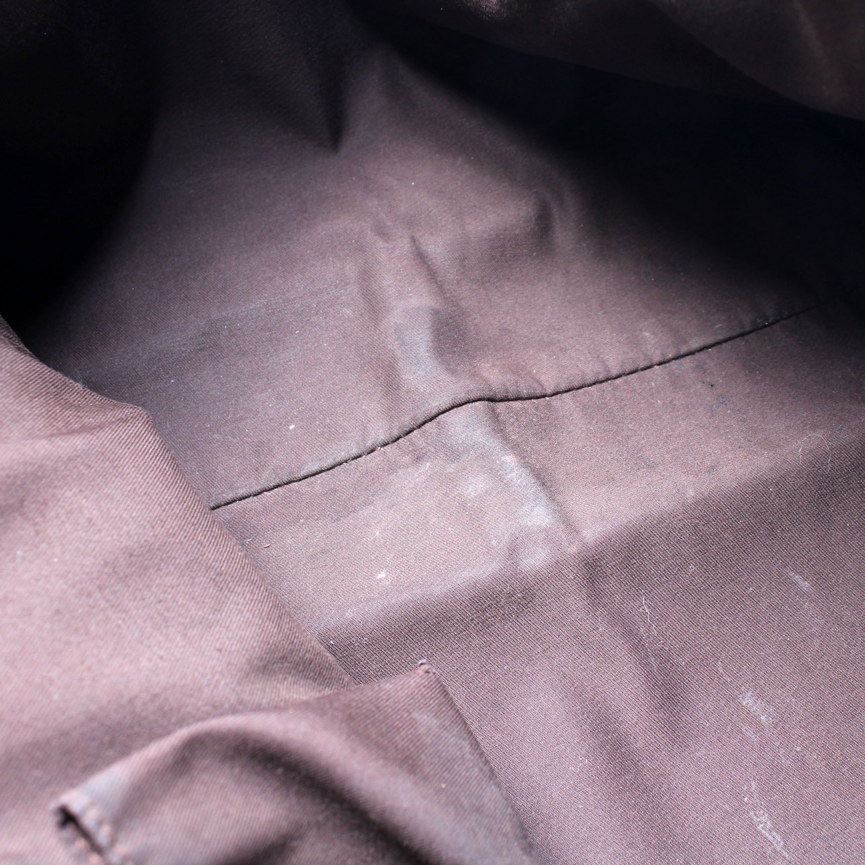 Interior: The interior is free of rips or tears. The interior features one zip closure pocket and one open pocket. There are stains to the interior as pictured.