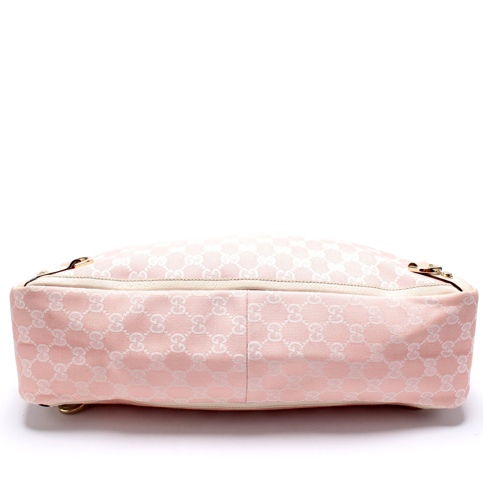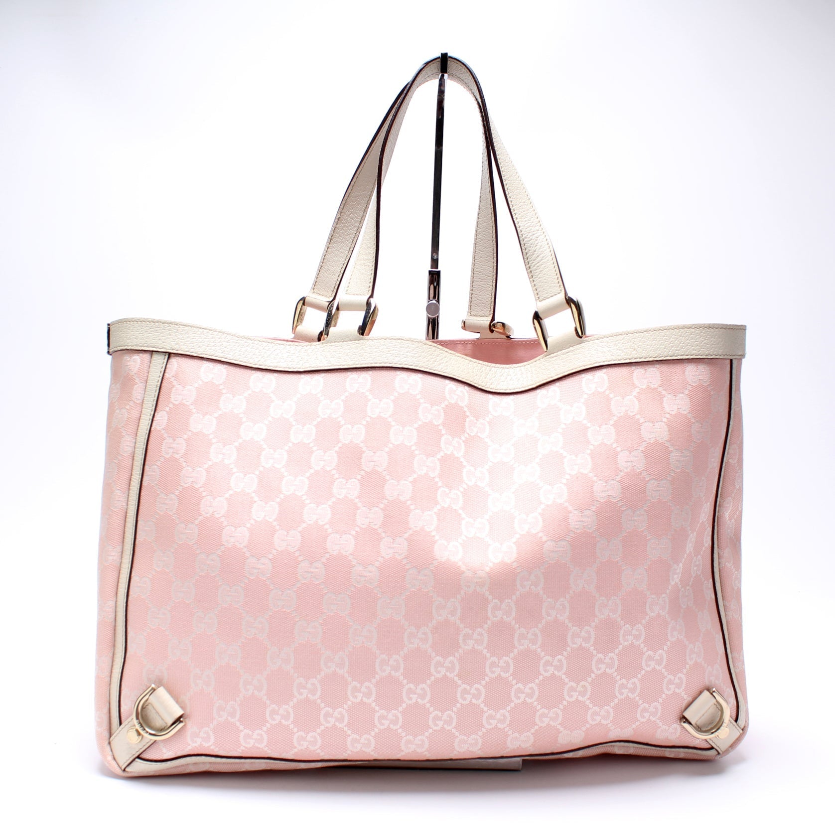 This Gucci GG Canvas Abbey Toteis eye catching bag. The exterior is in the classic Gucci GG canvas.