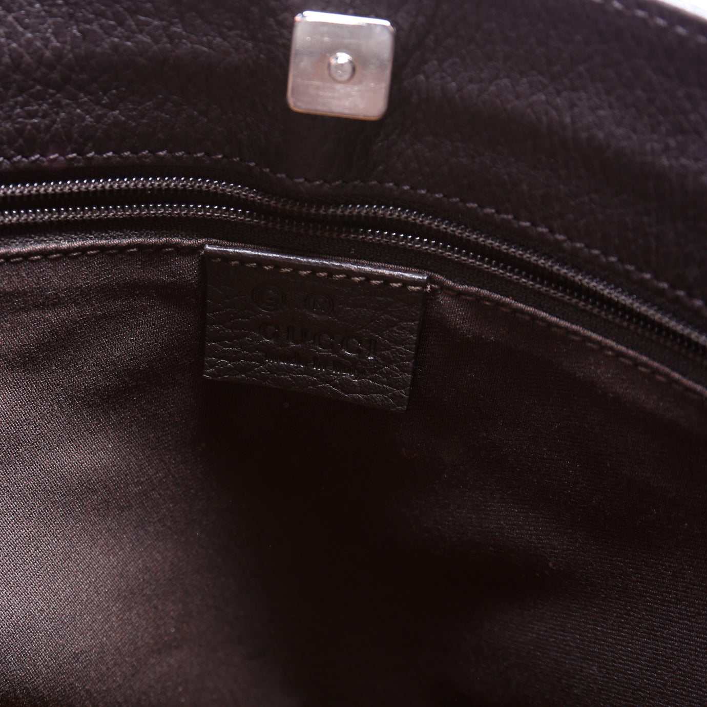 Interior: The interior is clean and free of rips or tears. The interior features one zipper pocket.