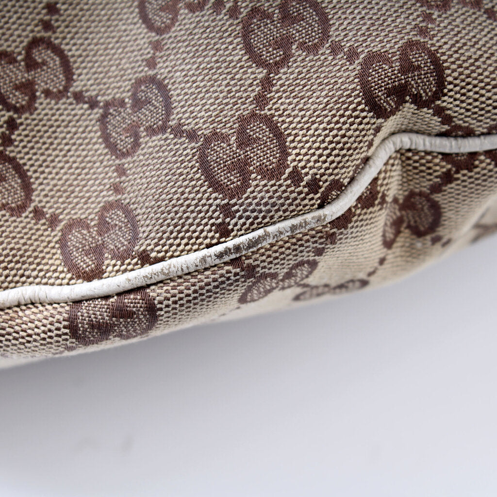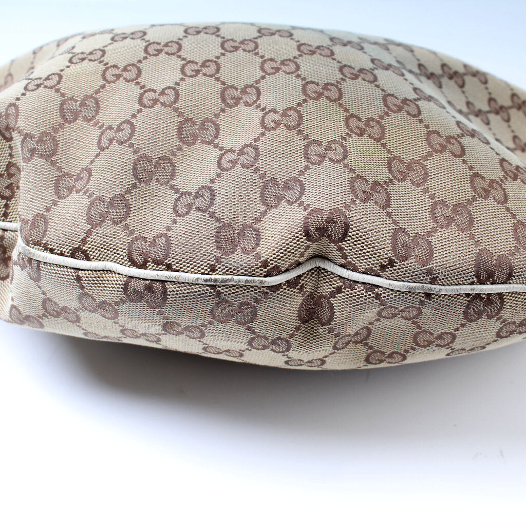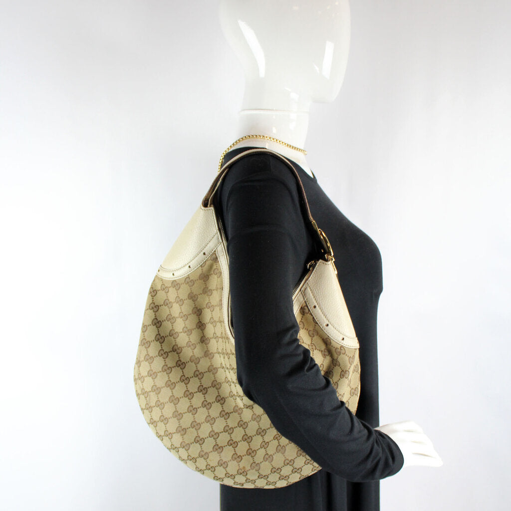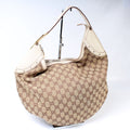 This Gucci Crescent Hobois eye catching bag. The exterior is in the classic Gucci GG canvas.
