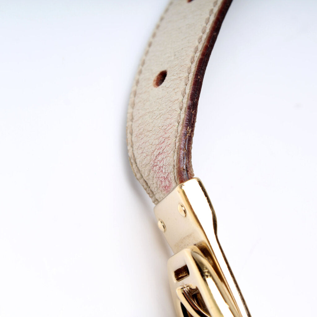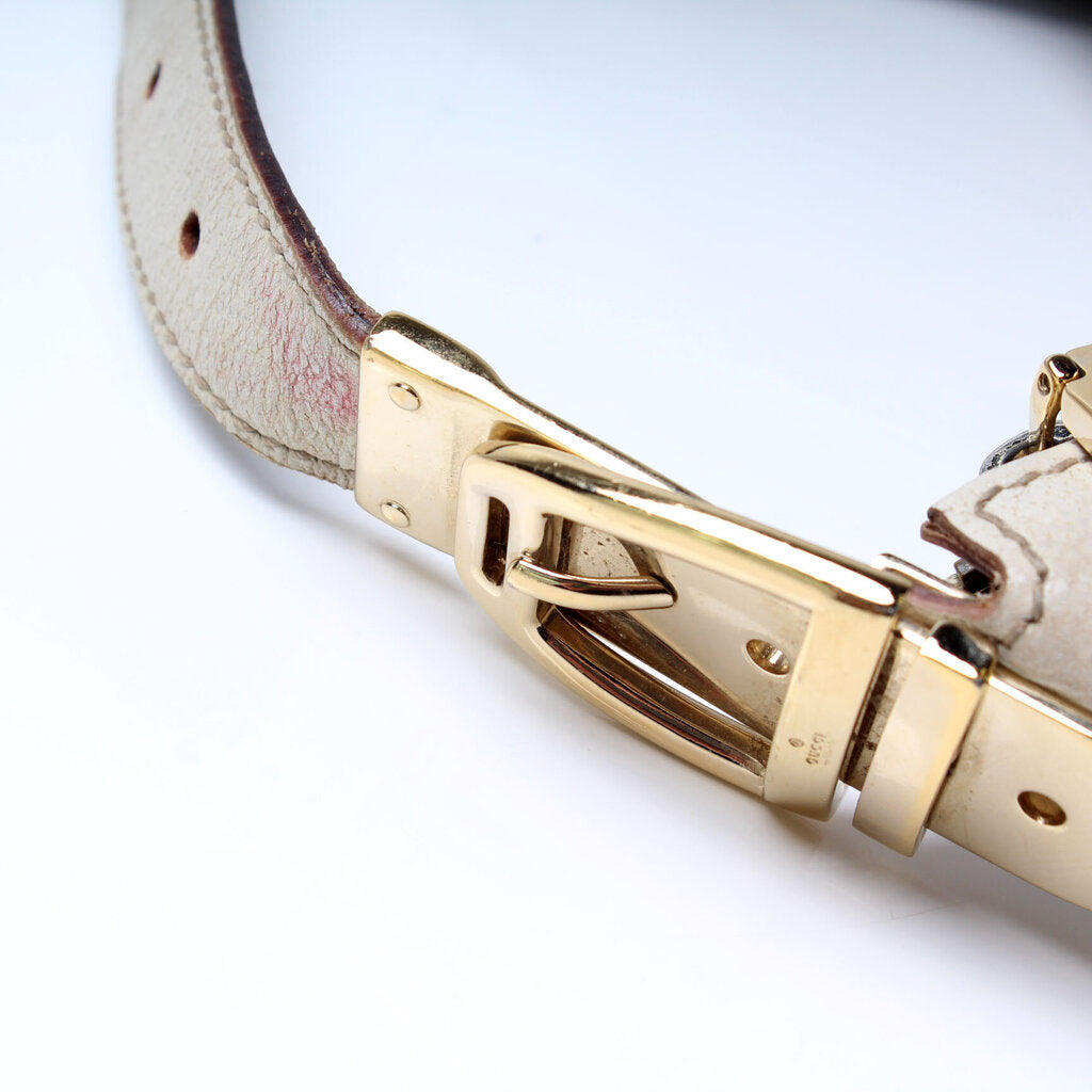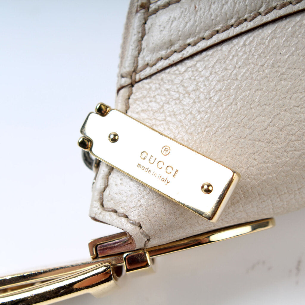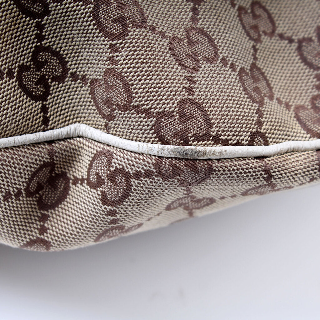 This Gucci Crescent Hobois eye catching bag. The exterior is in the classic Gucci GG canvas.