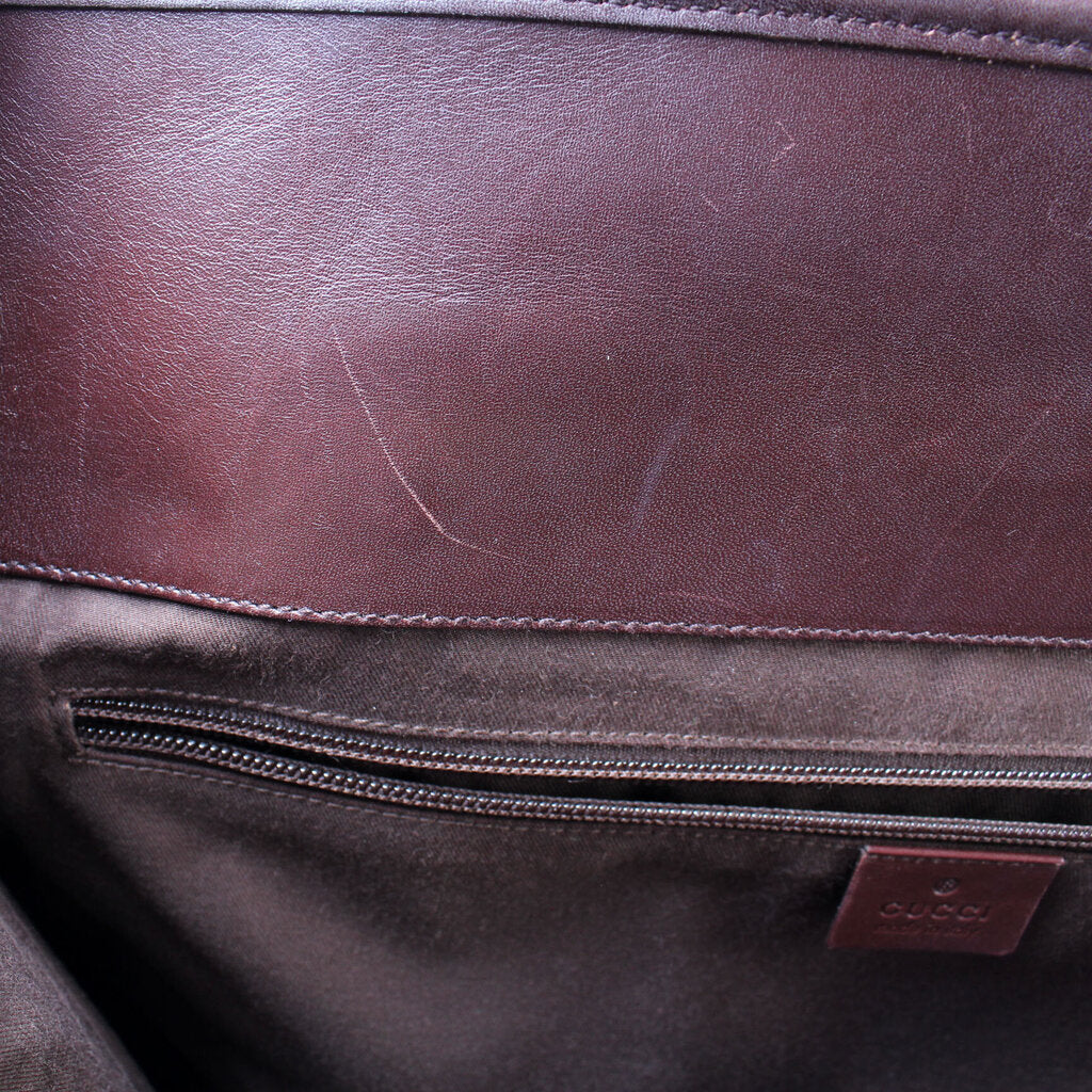 Exterior: The exterior leather is free from any rips or cracks. There are a few minimal scuffs to the leather and minor wear on the corners.