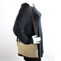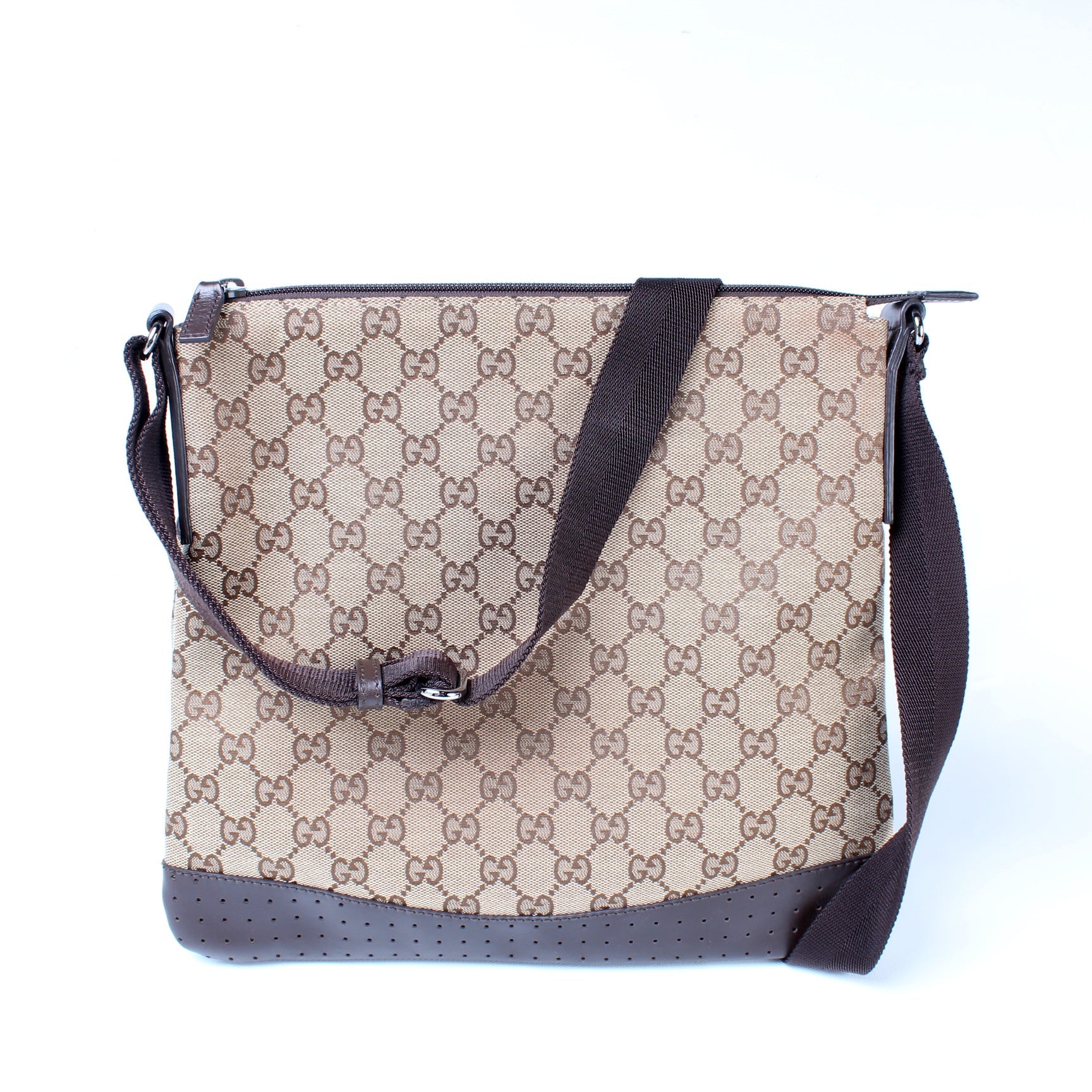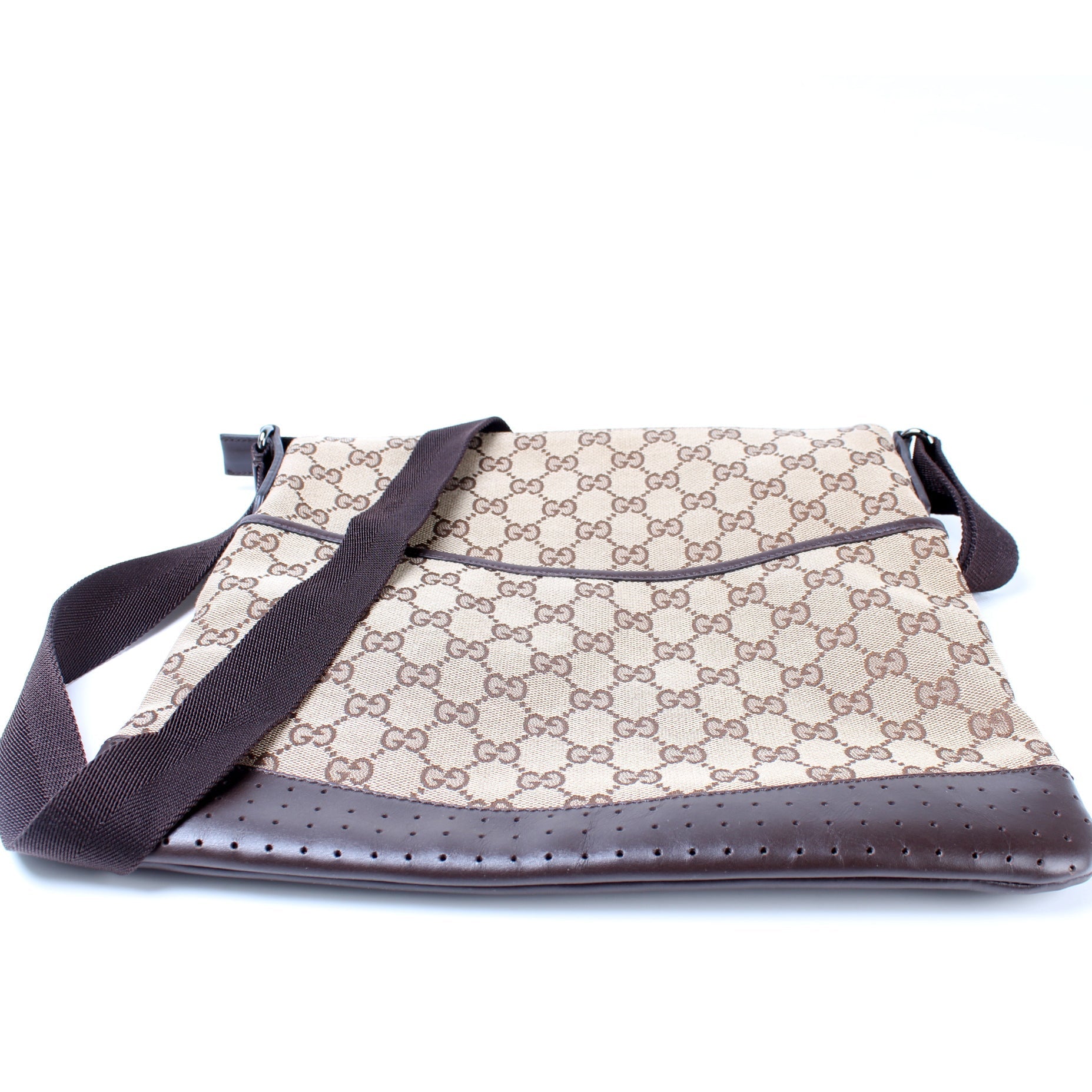 This Gucci GG Canvas Flat Messenger Mediumis eye catching bag. The exterior is in the classic Gucci GG coated canvas.