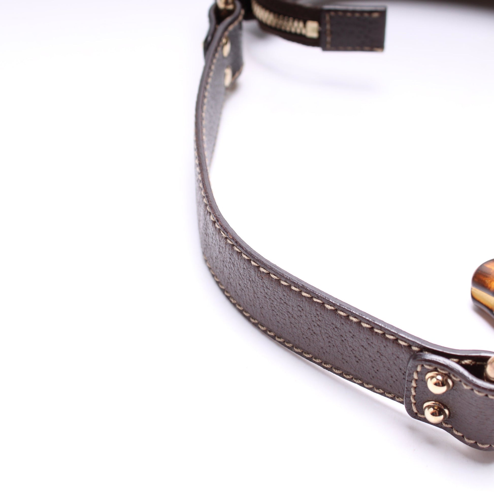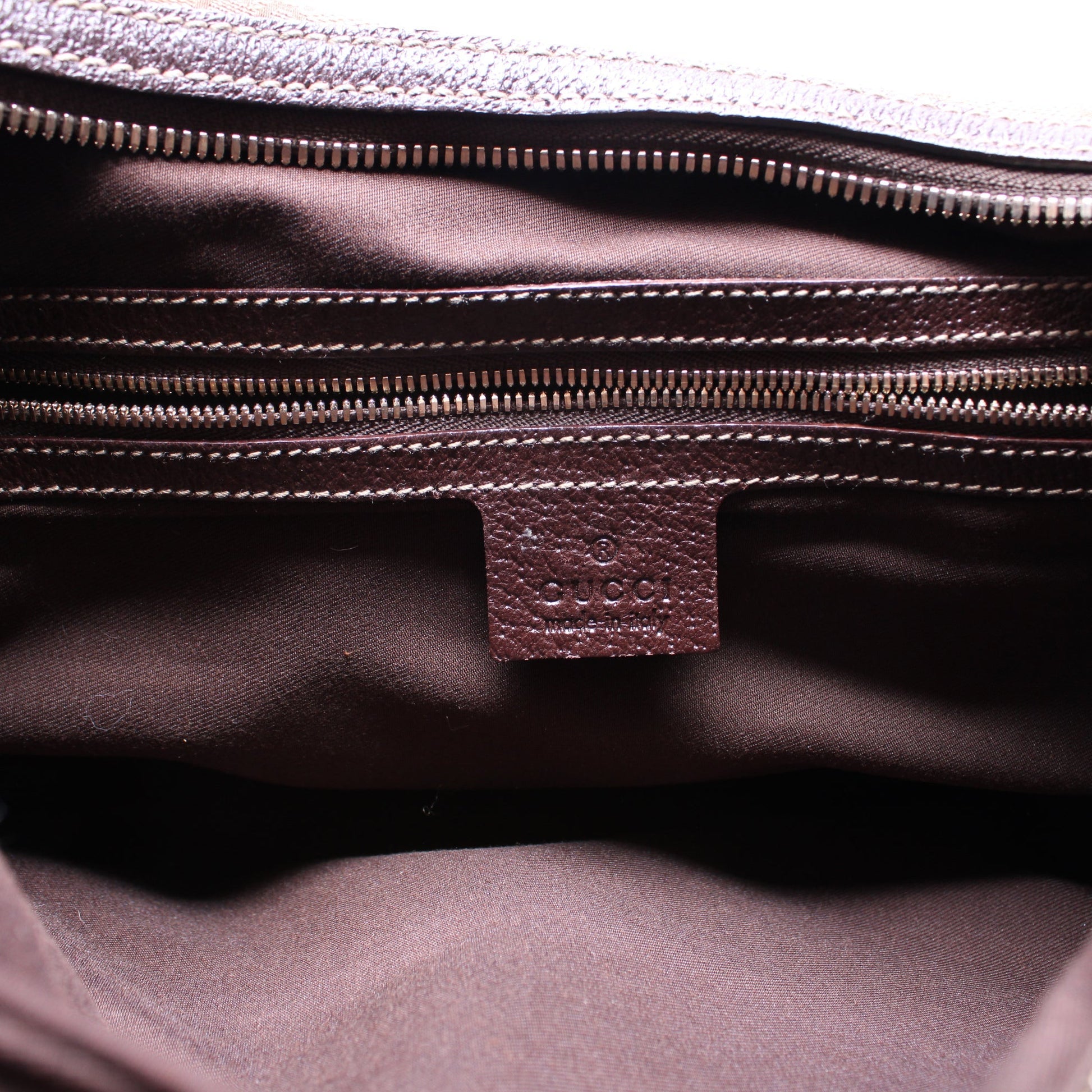 Hardware: The zip closure operates properly, but stick a little. The hardware shows light scuffing throughout. The zipper pull shows light wear.