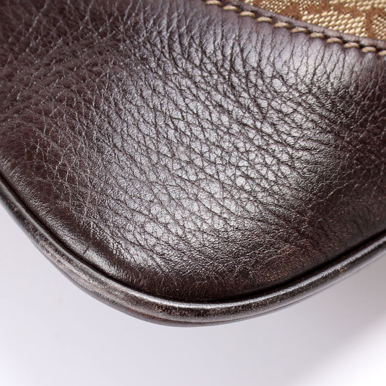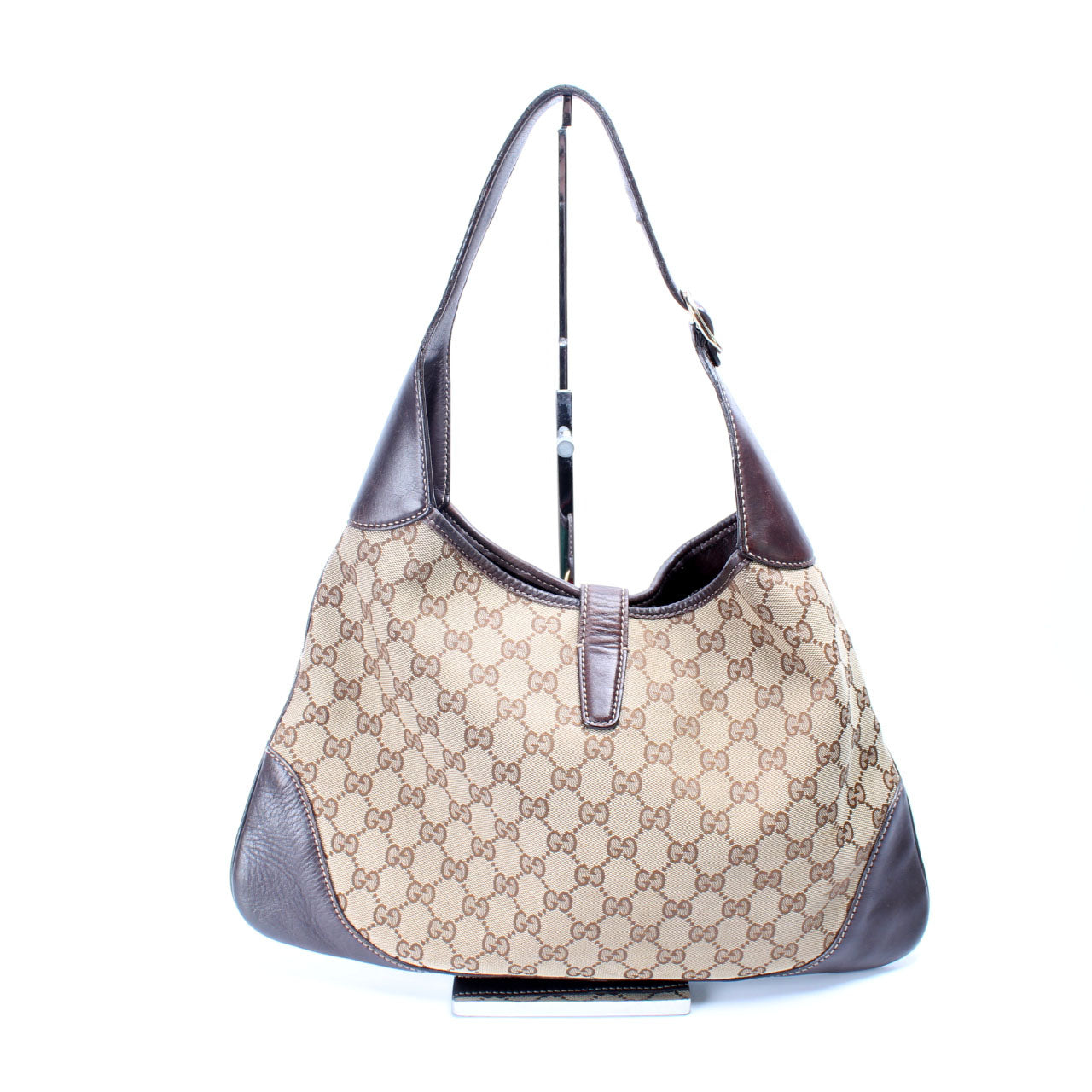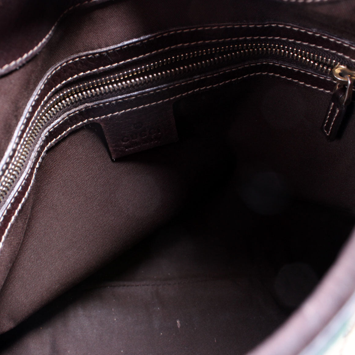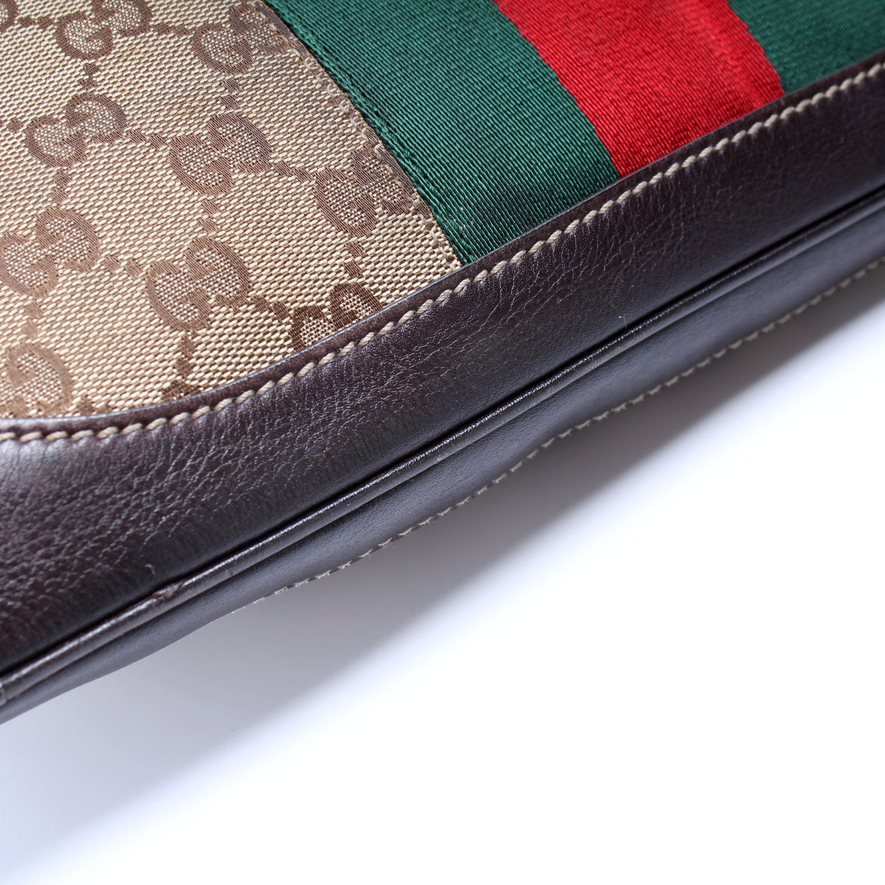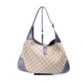 This Gucci Web Jackie Hobois eye catching bag. The exterior is in the classic Gucci GG canvas.