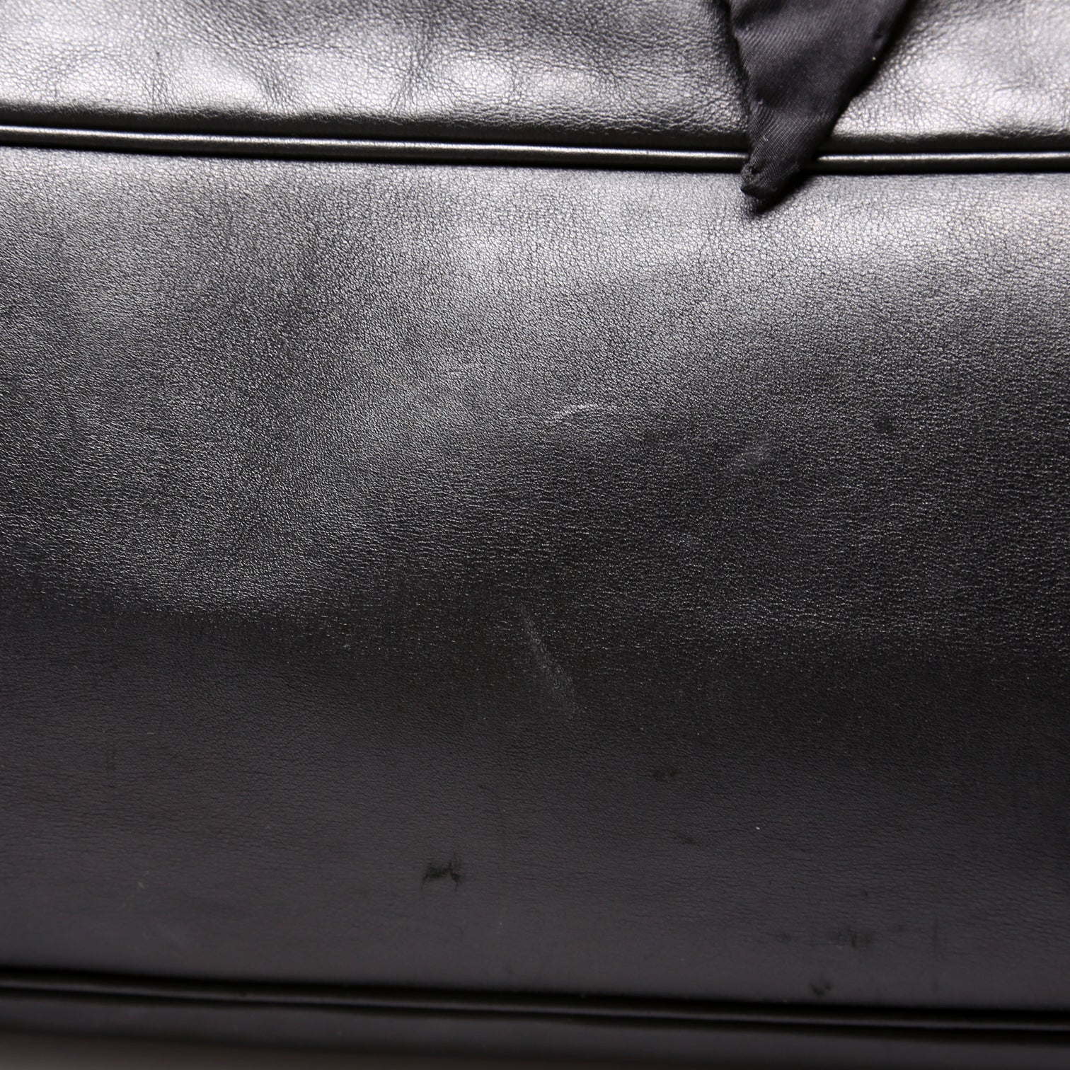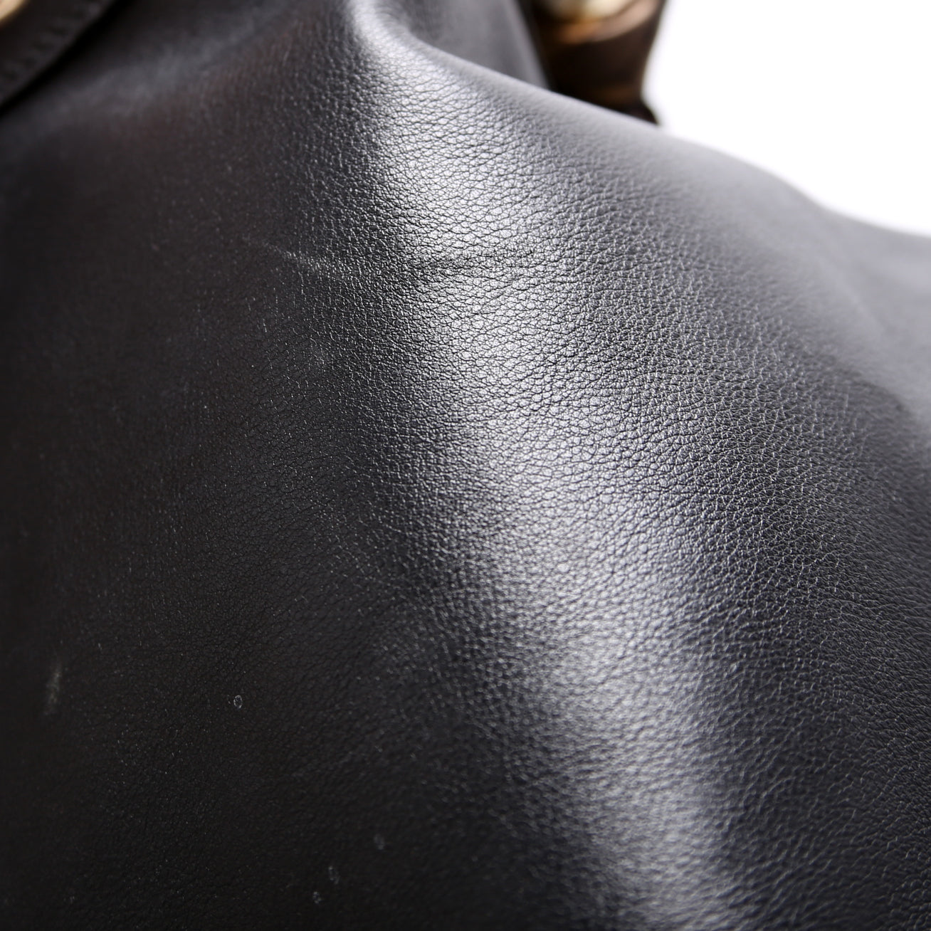 Exterior: The exterior leather shows wear to the corners and scuffs throughout.