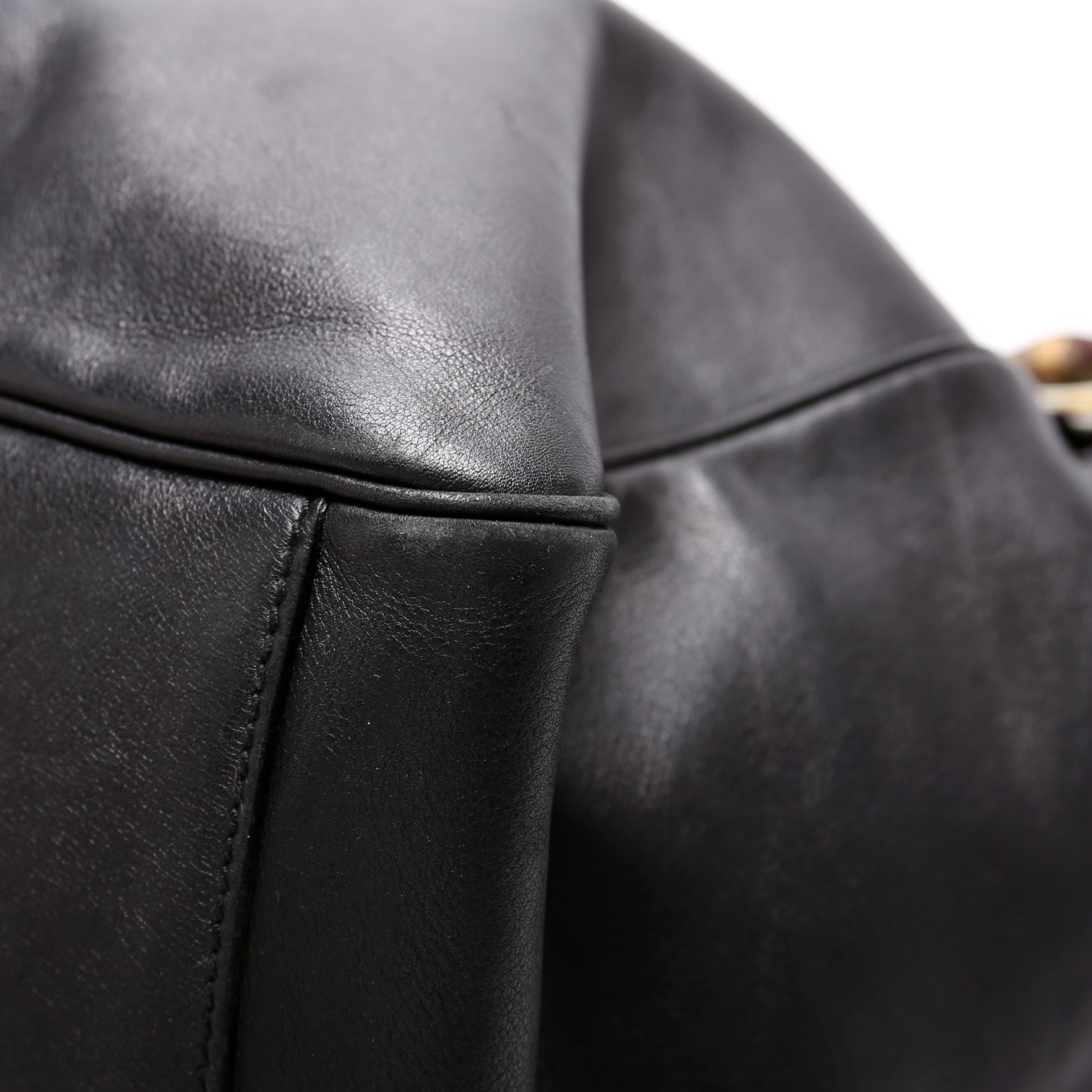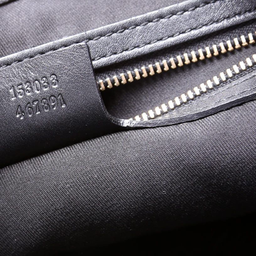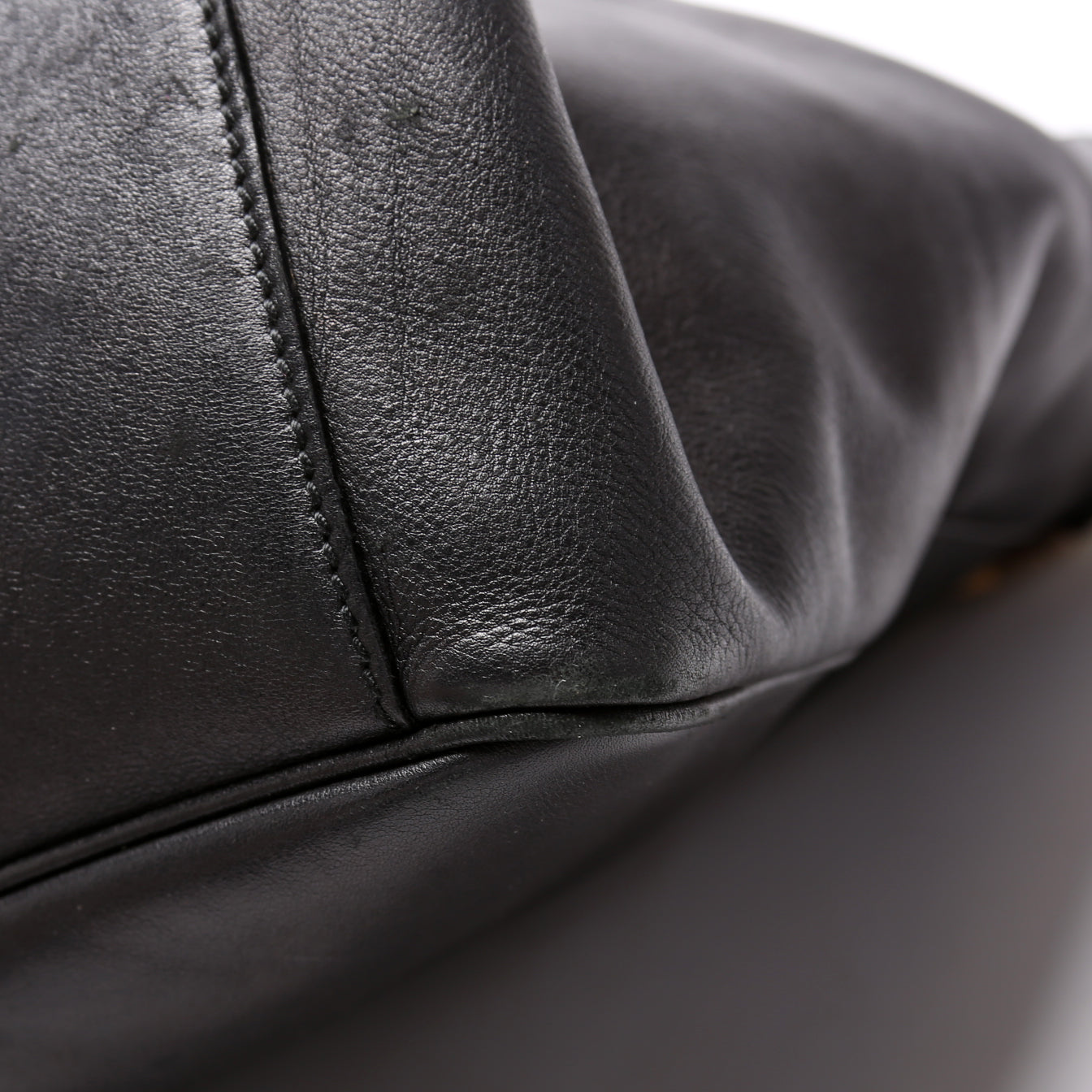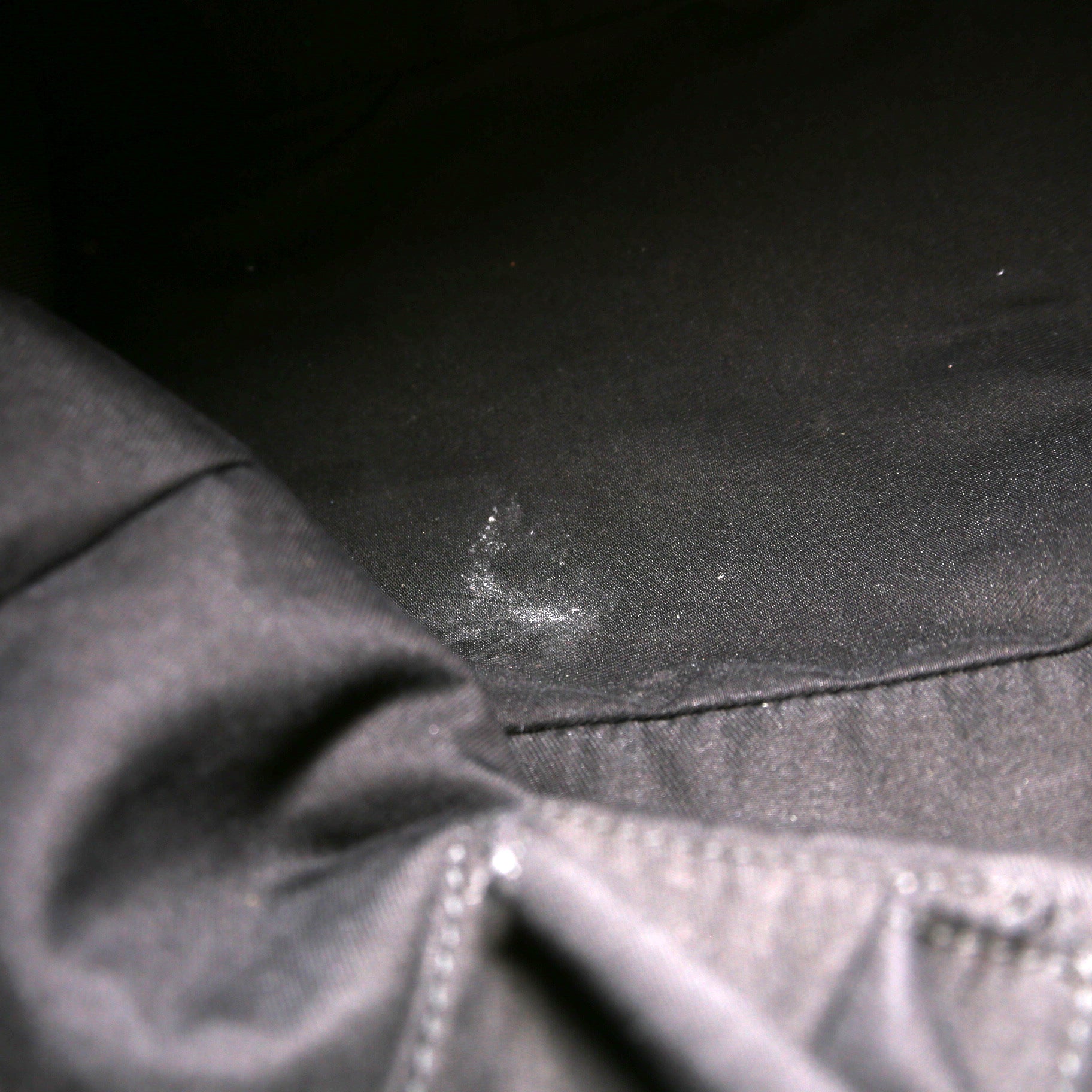 Interior: The interior has minor stains. It features one open and one zipper pocket.