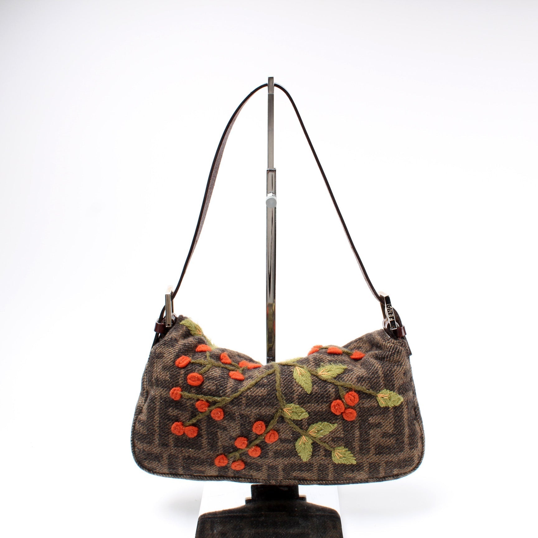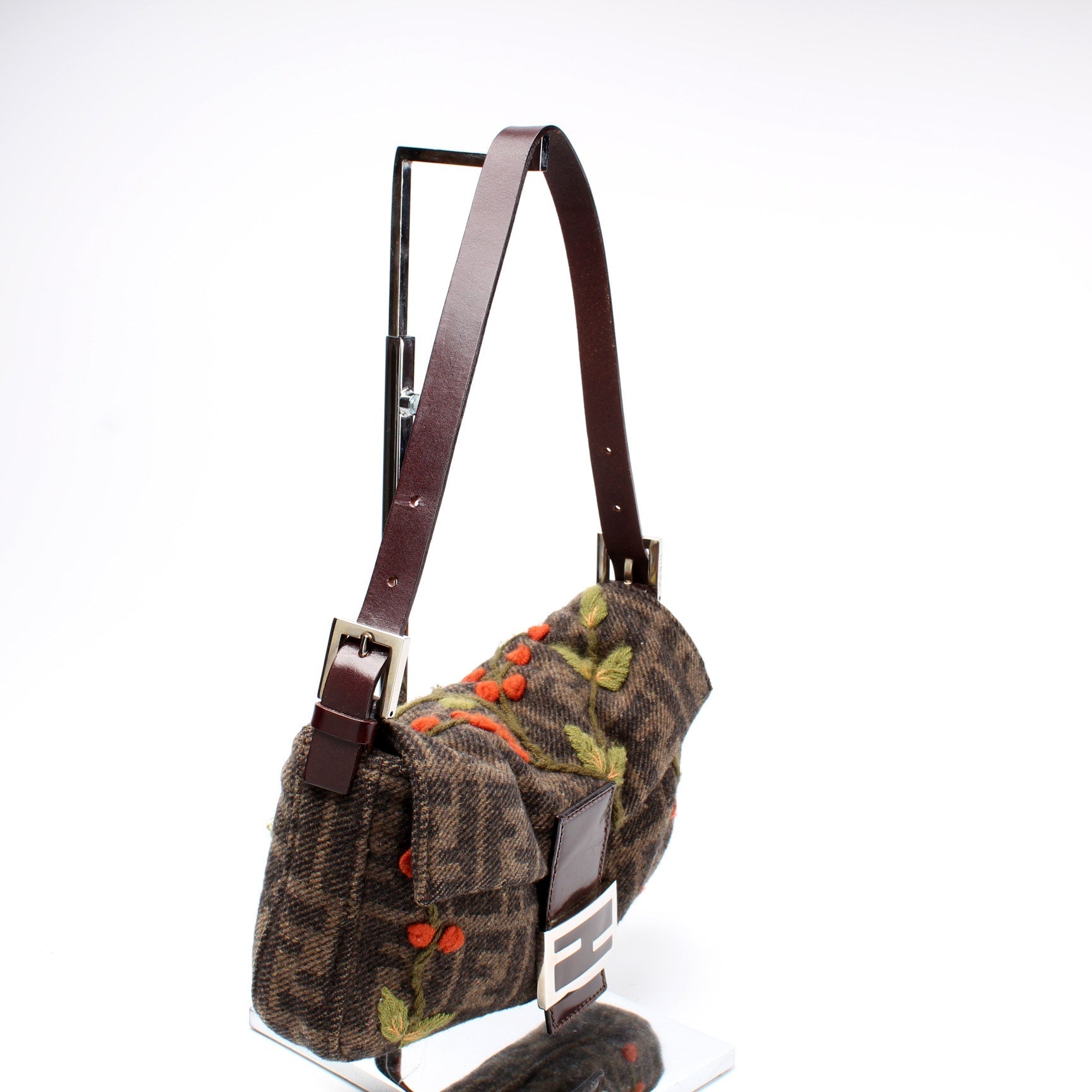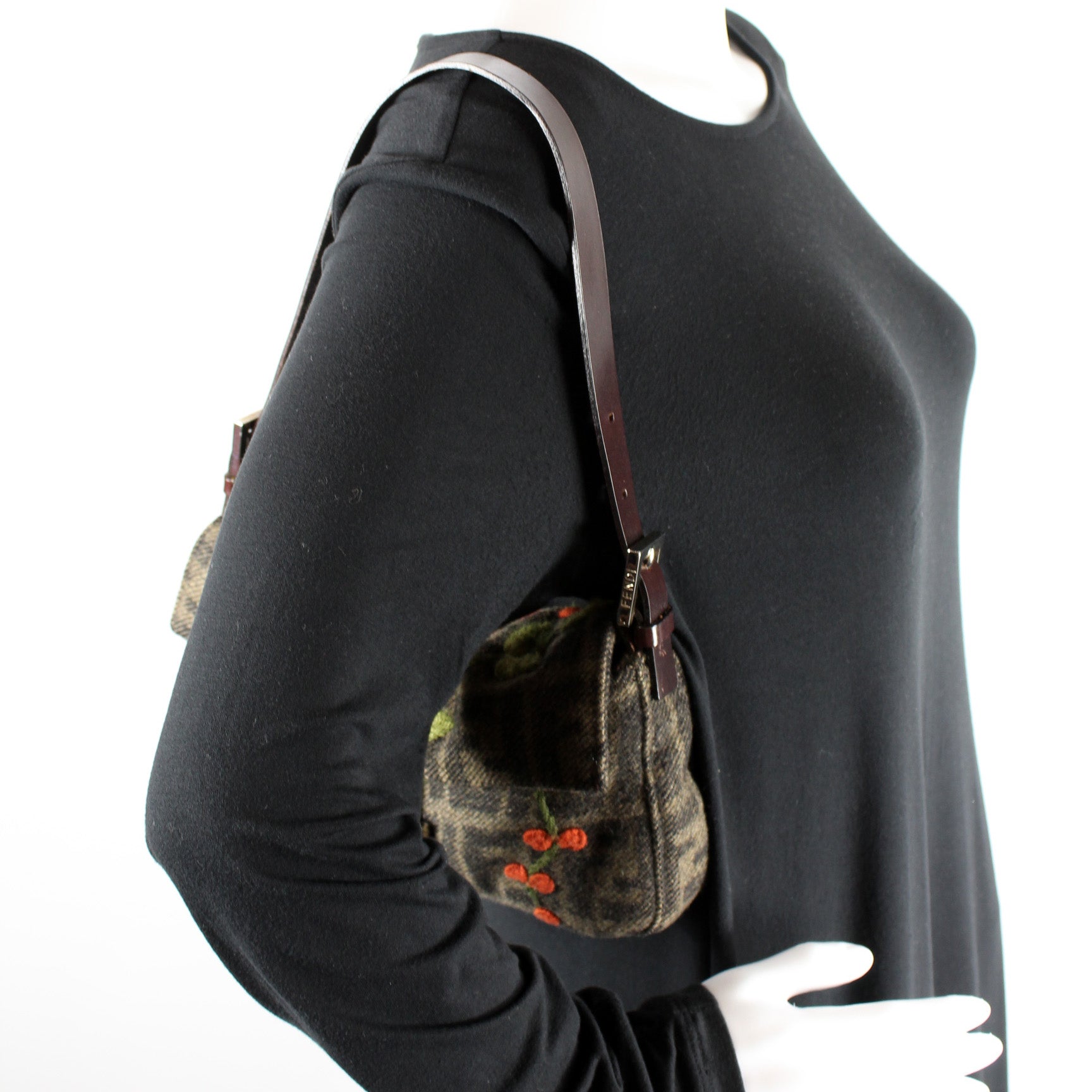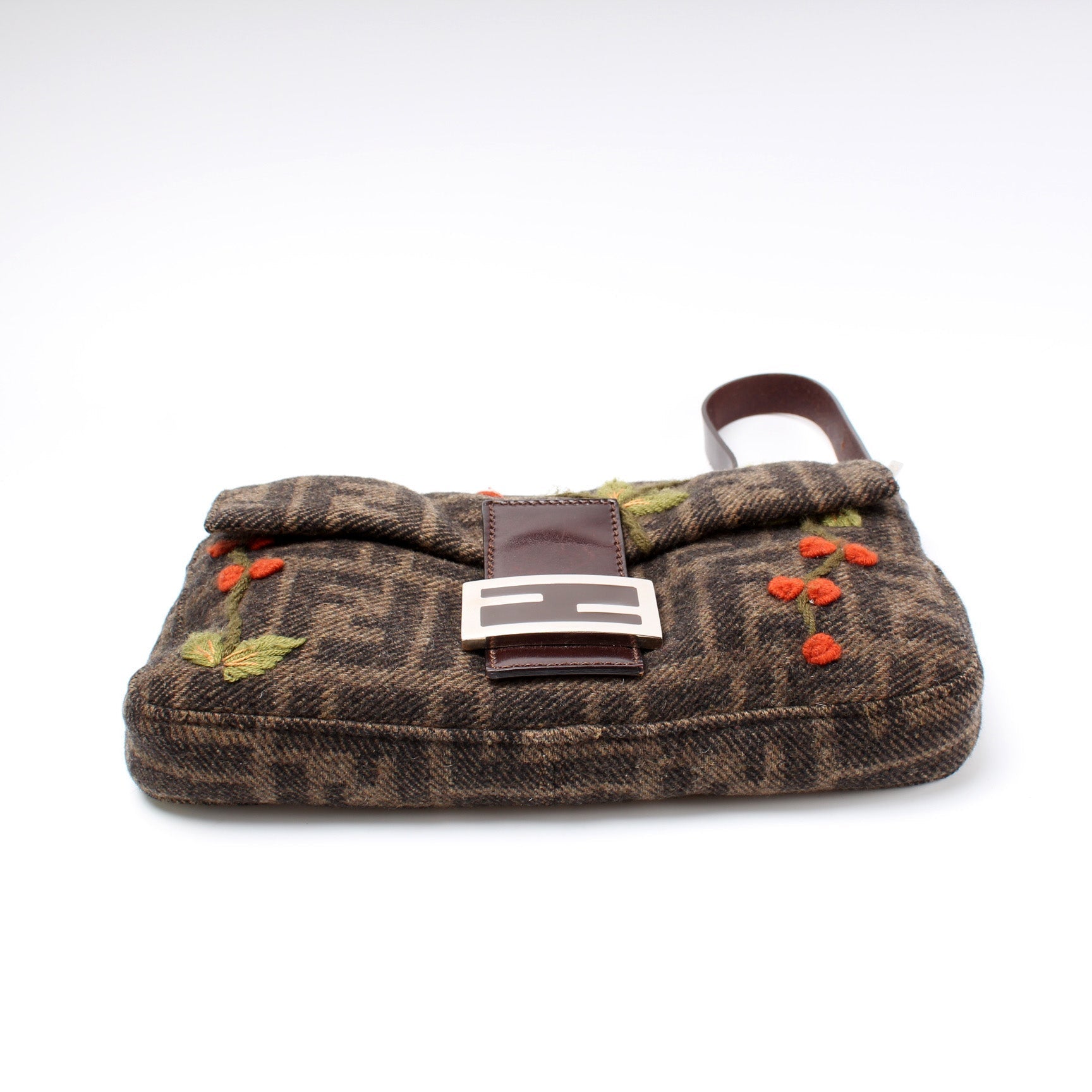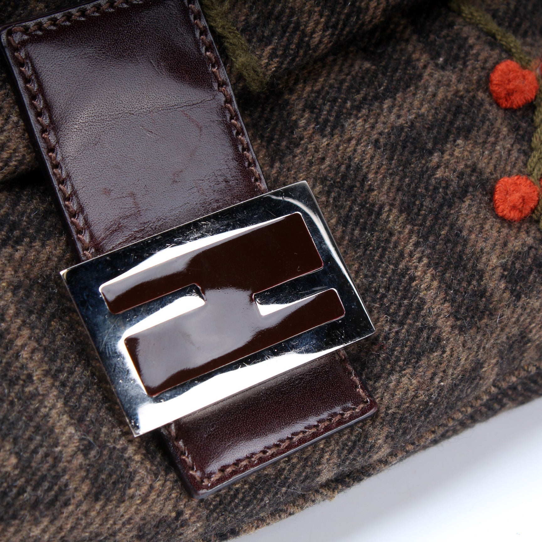 This Fendi Mamma Baguette Woolis eye catching bag. The exterior is in the classic Fendi Wool Fabric.