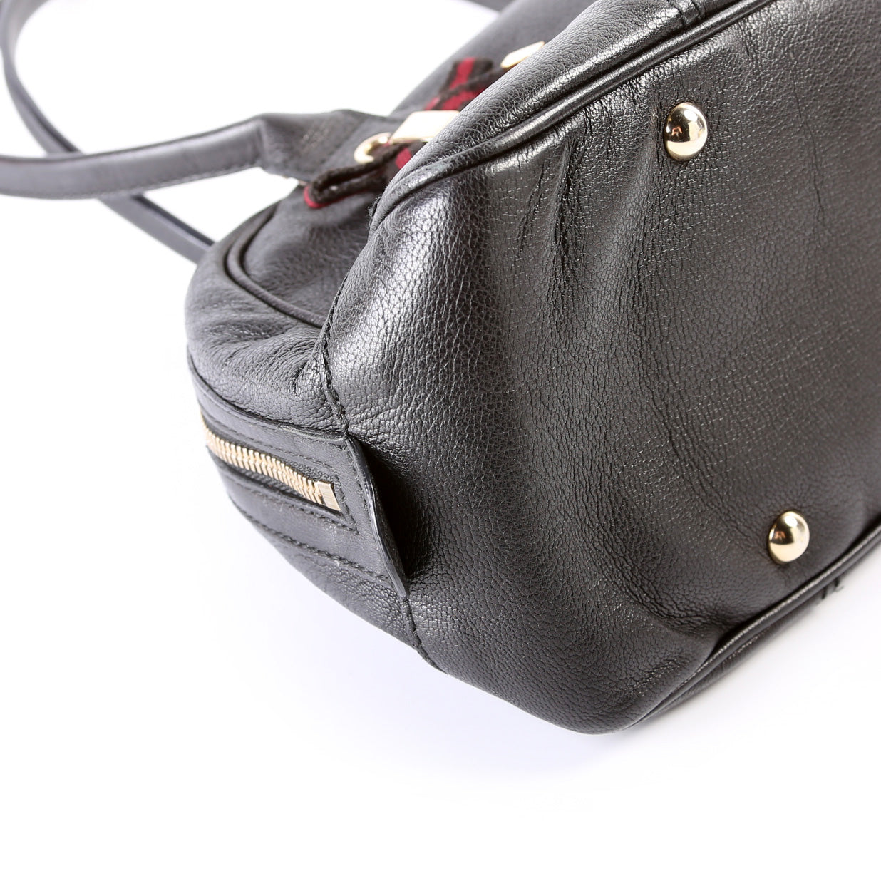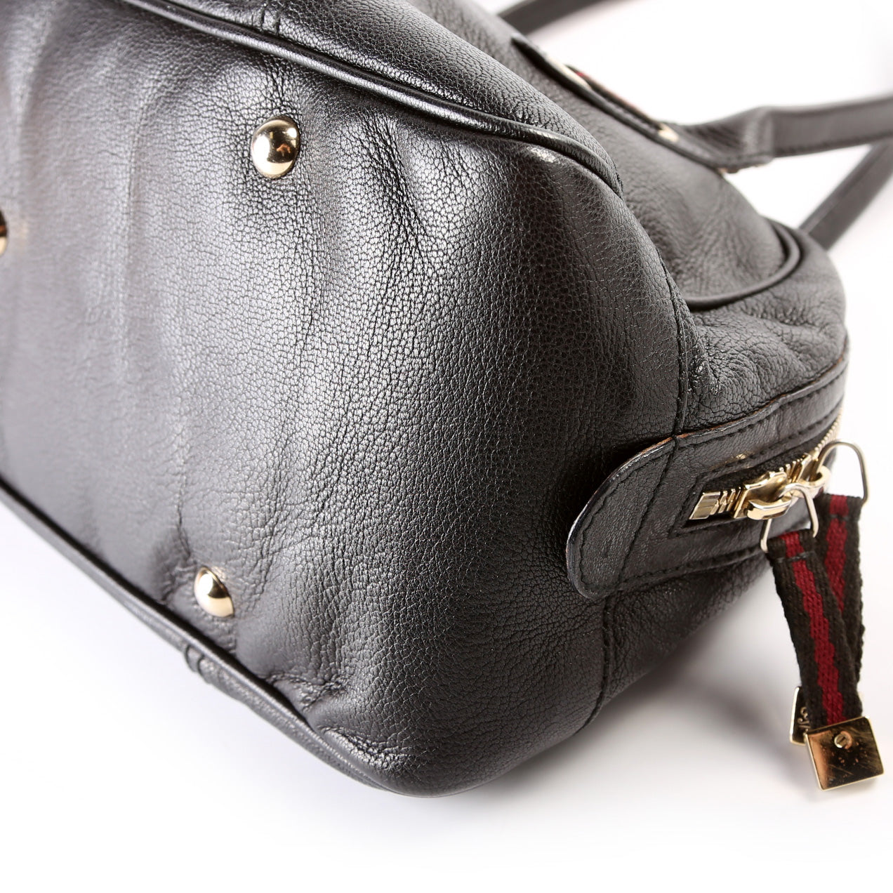 Handle: The leather handles have wear throughout the piping.