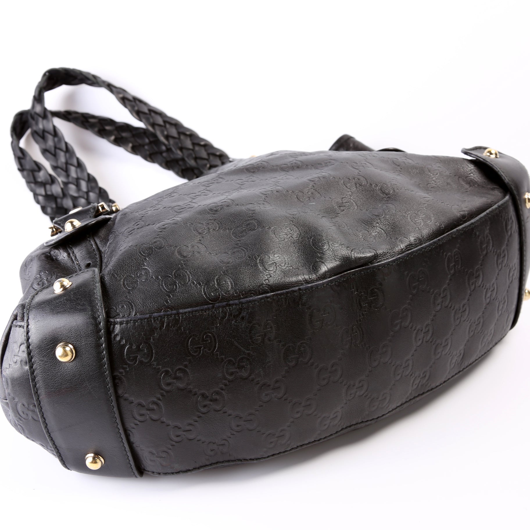 Exterior: The exterior leather is free from any rips or cracks, there are light scuffs throughout. The corners and edges show minor rubbing.