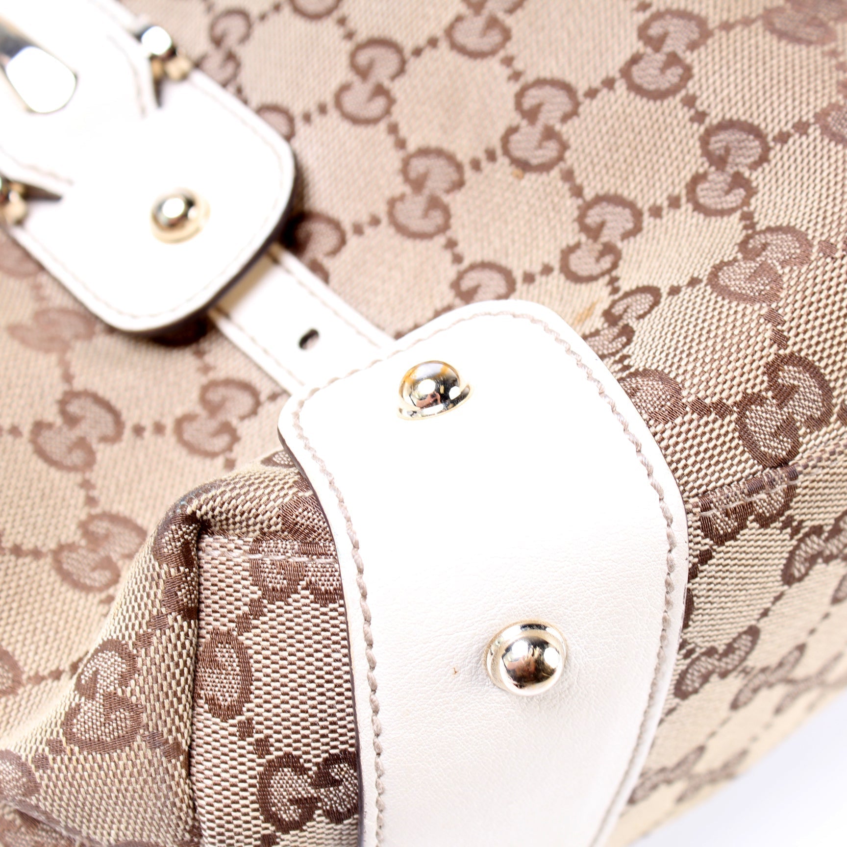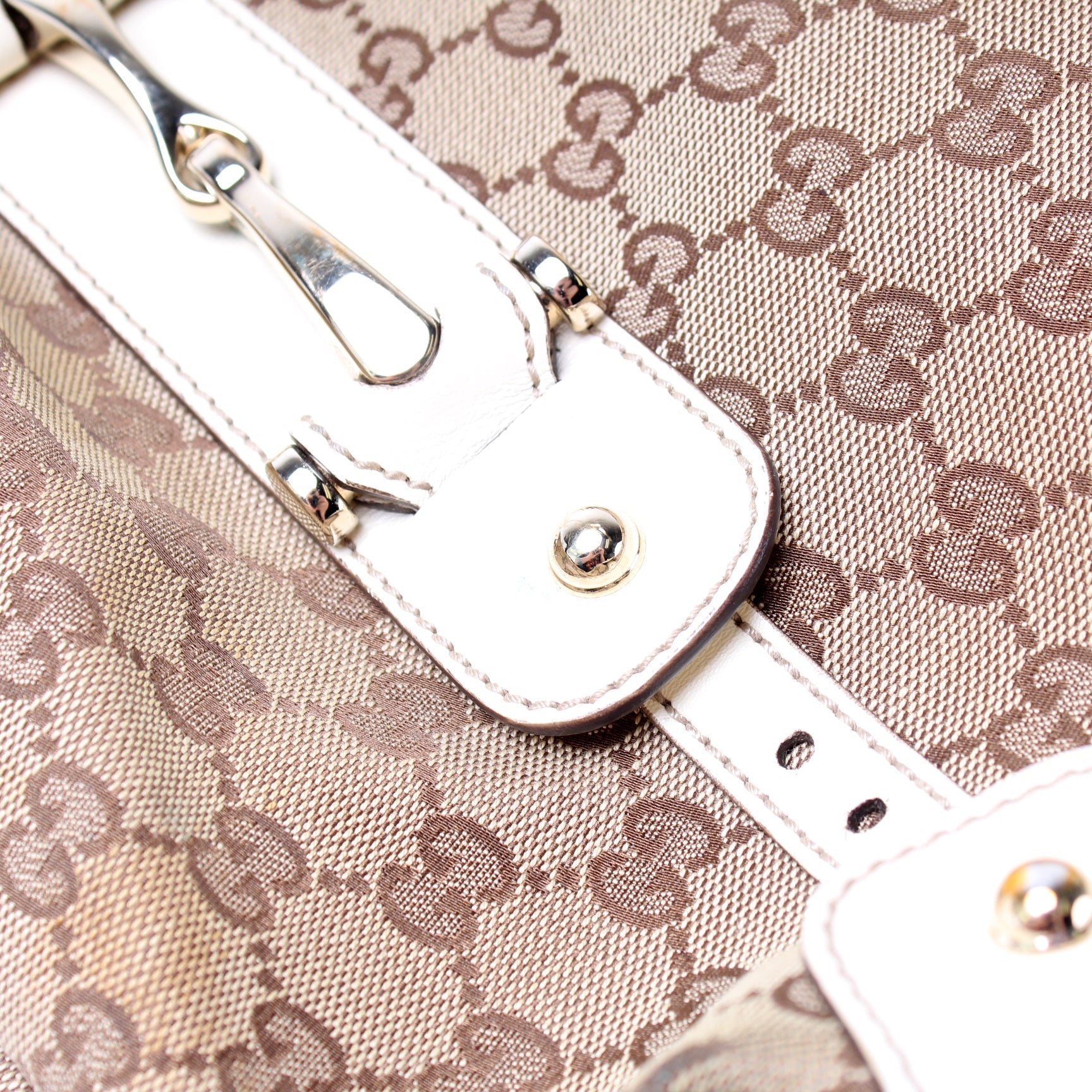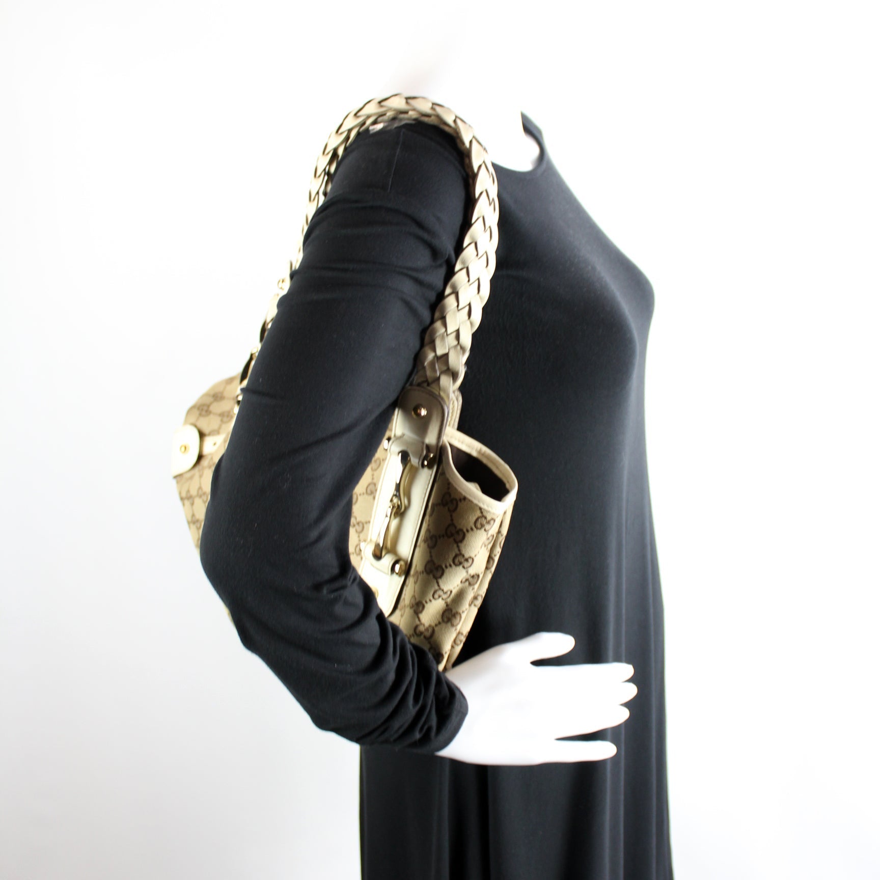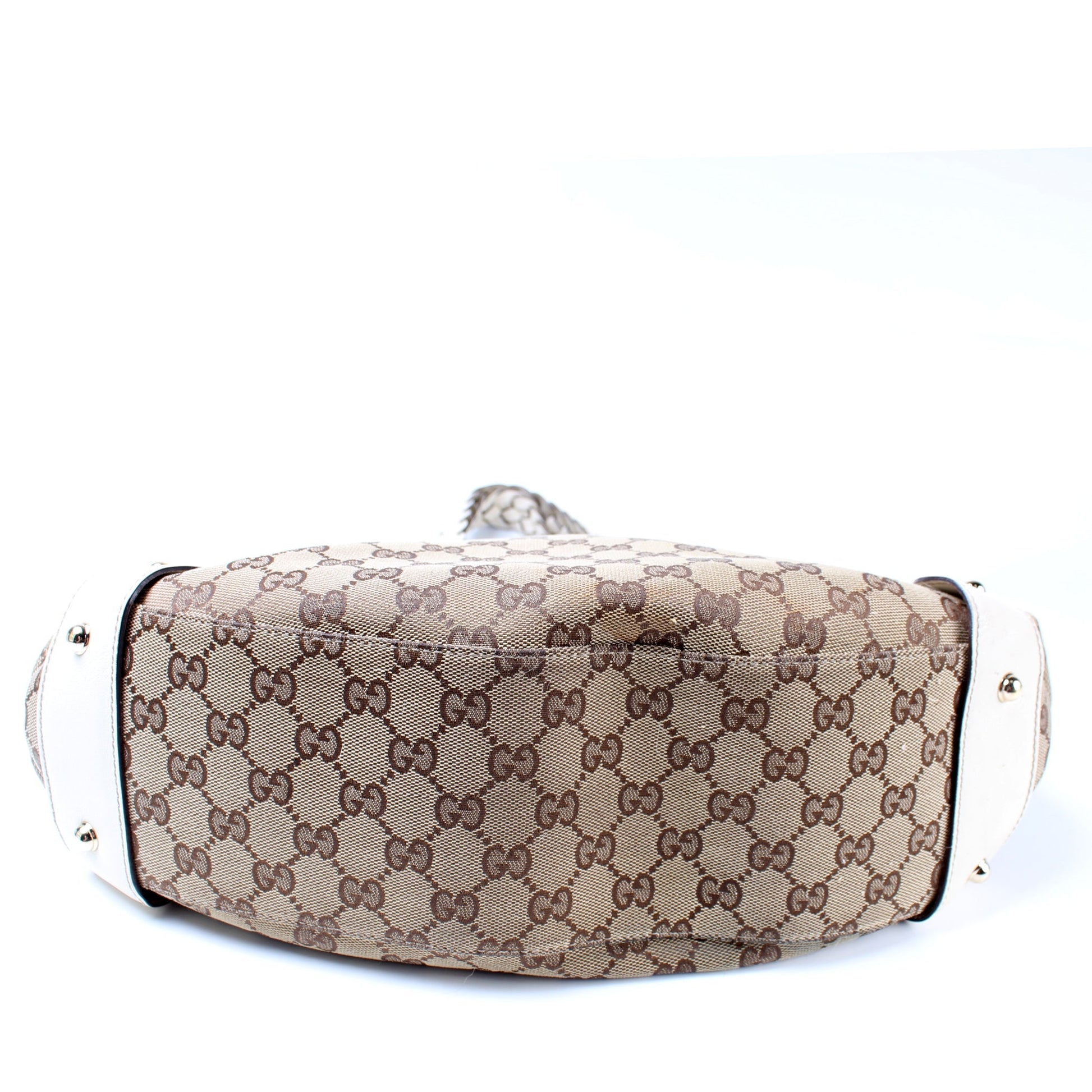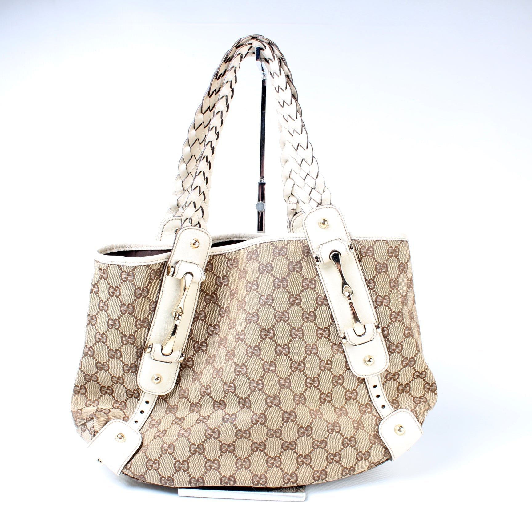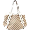 This Gucci 162900 Pelham Medium Toteis eye catching bag. The exterior is in the classic GG Canvas.