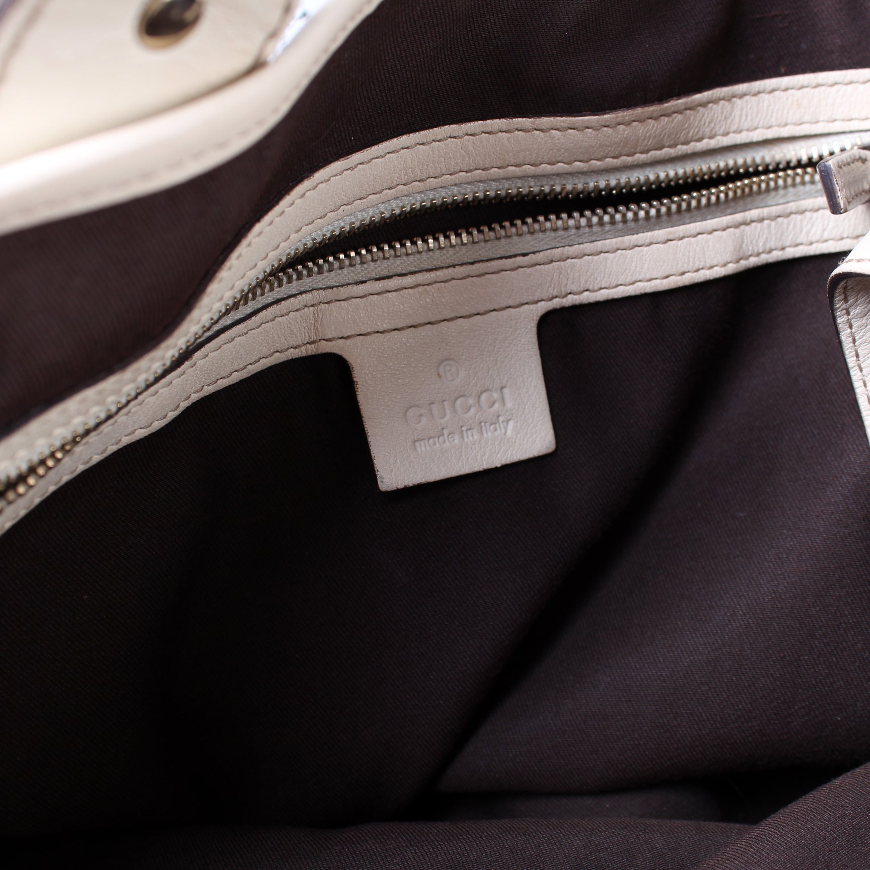 Interior: The interior is clean and free of rips or tears. The interior includes one zip closure pocket.
