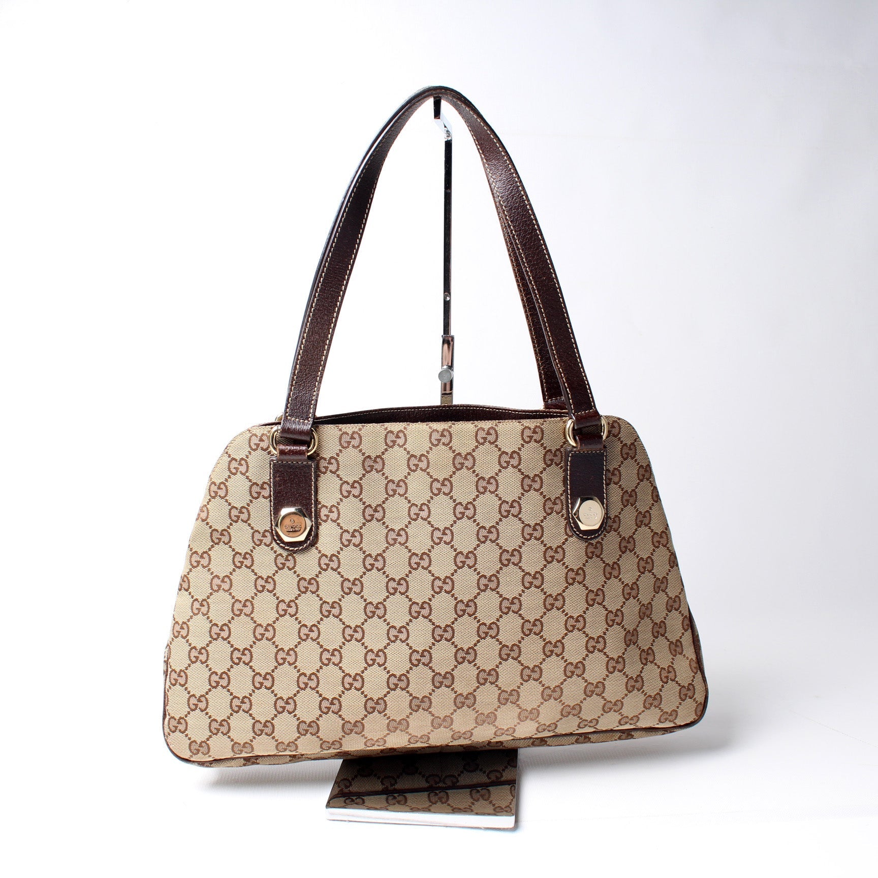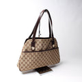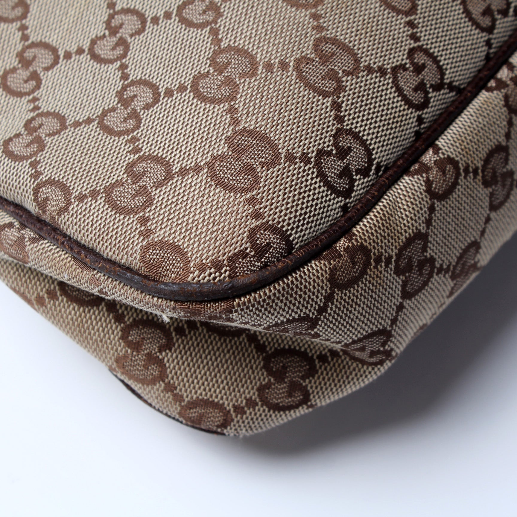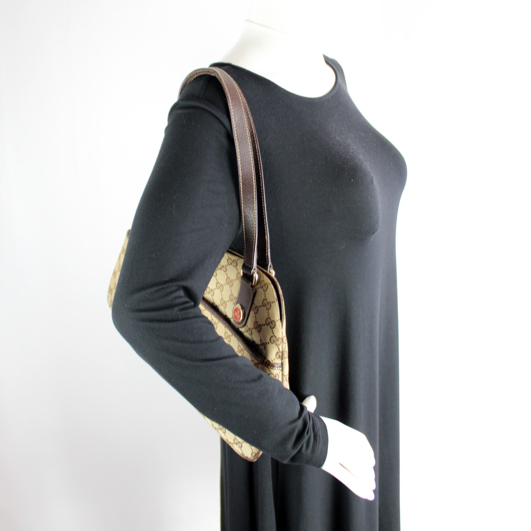 This Gucci Charmy Shoulder Bagis eye catching bag. The exterior is in the classic Gucci GG canvas.