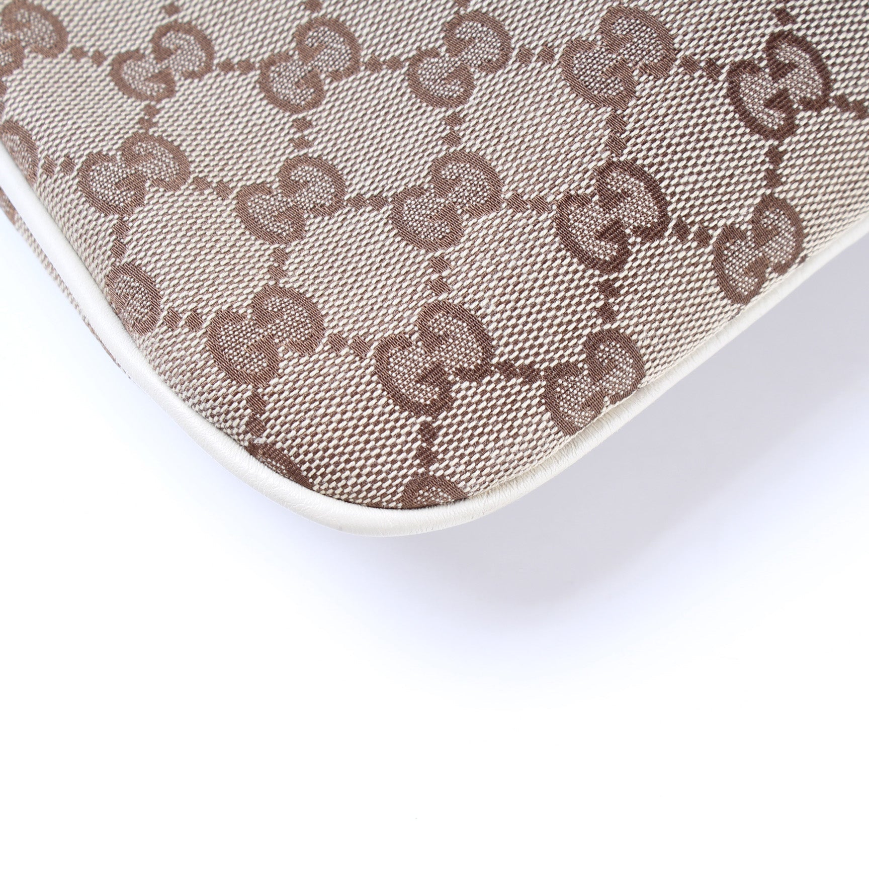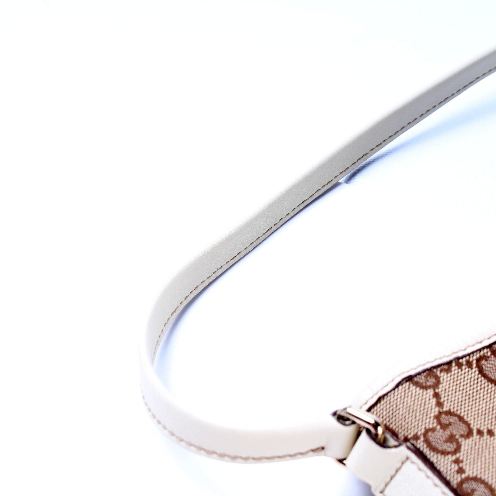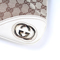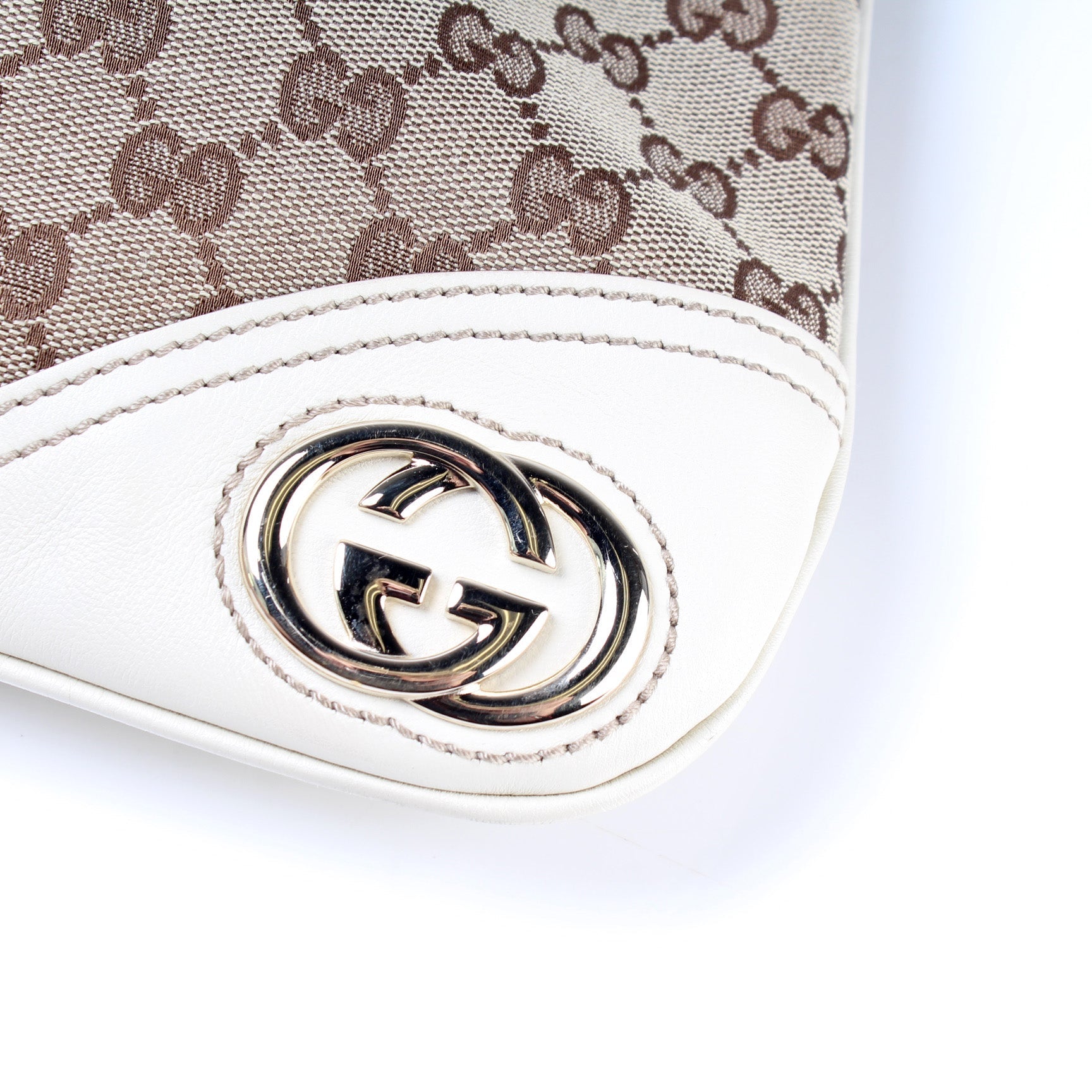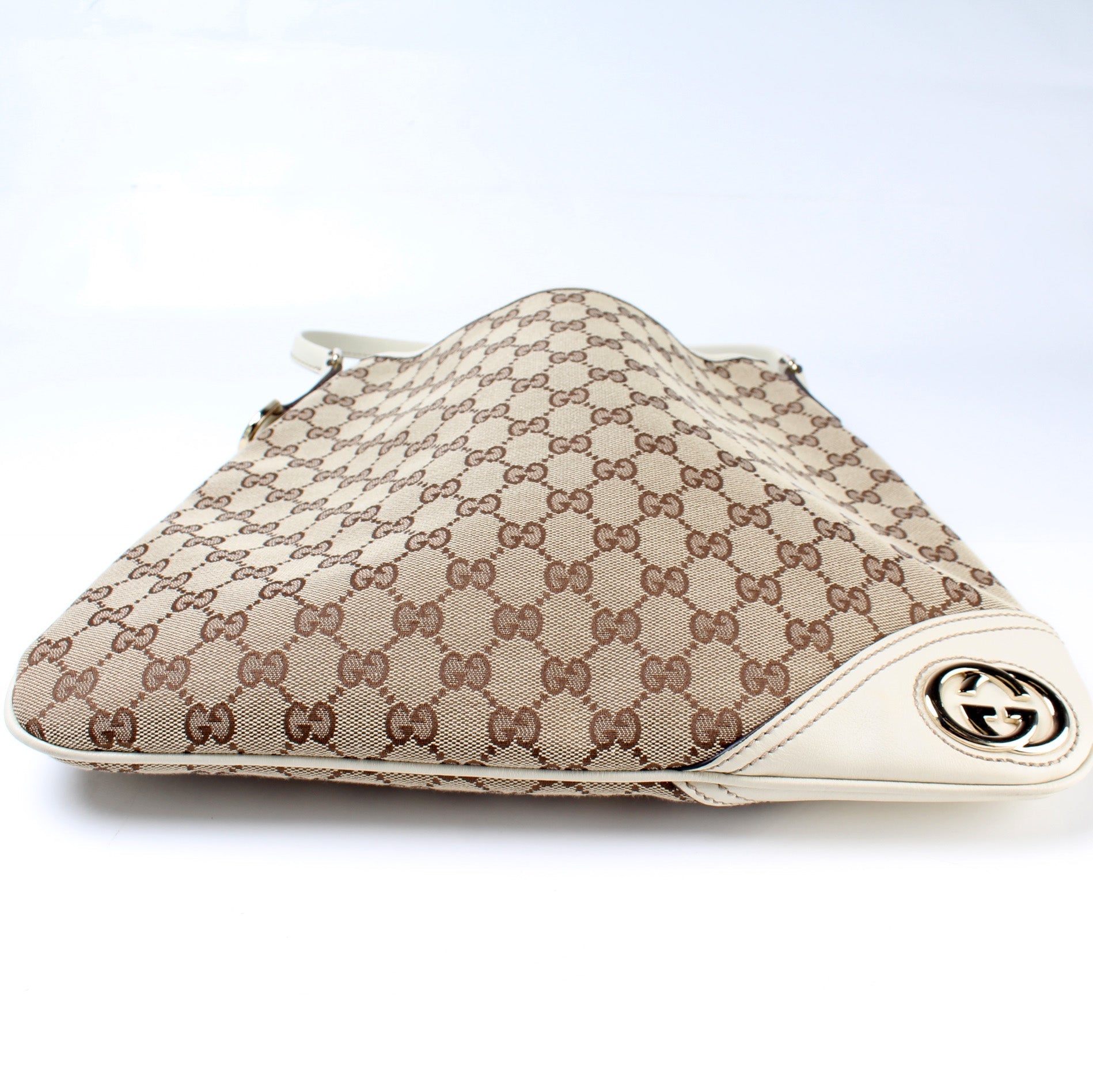 This Gucci Britt Shoulder Bagis eye catching bag. The exterior is in the classic Gucci GG canvas.