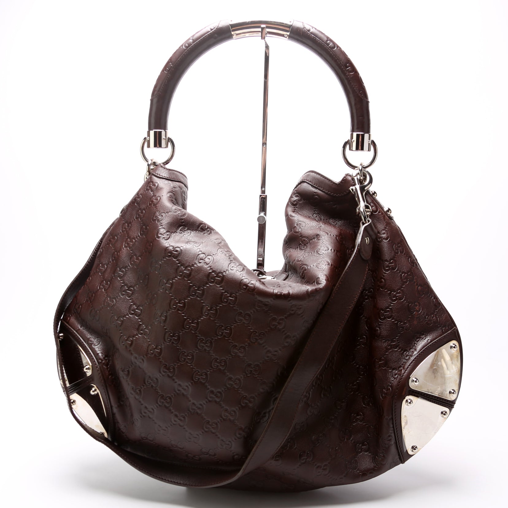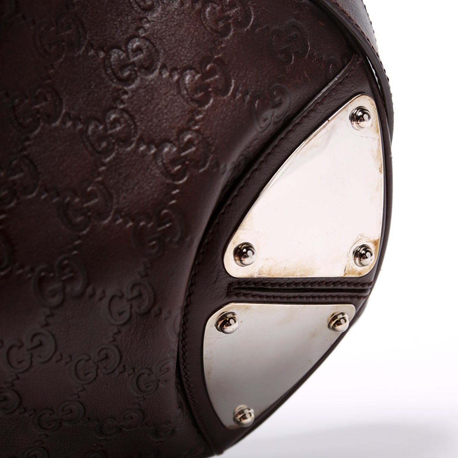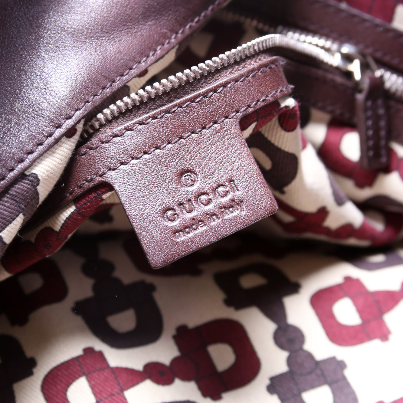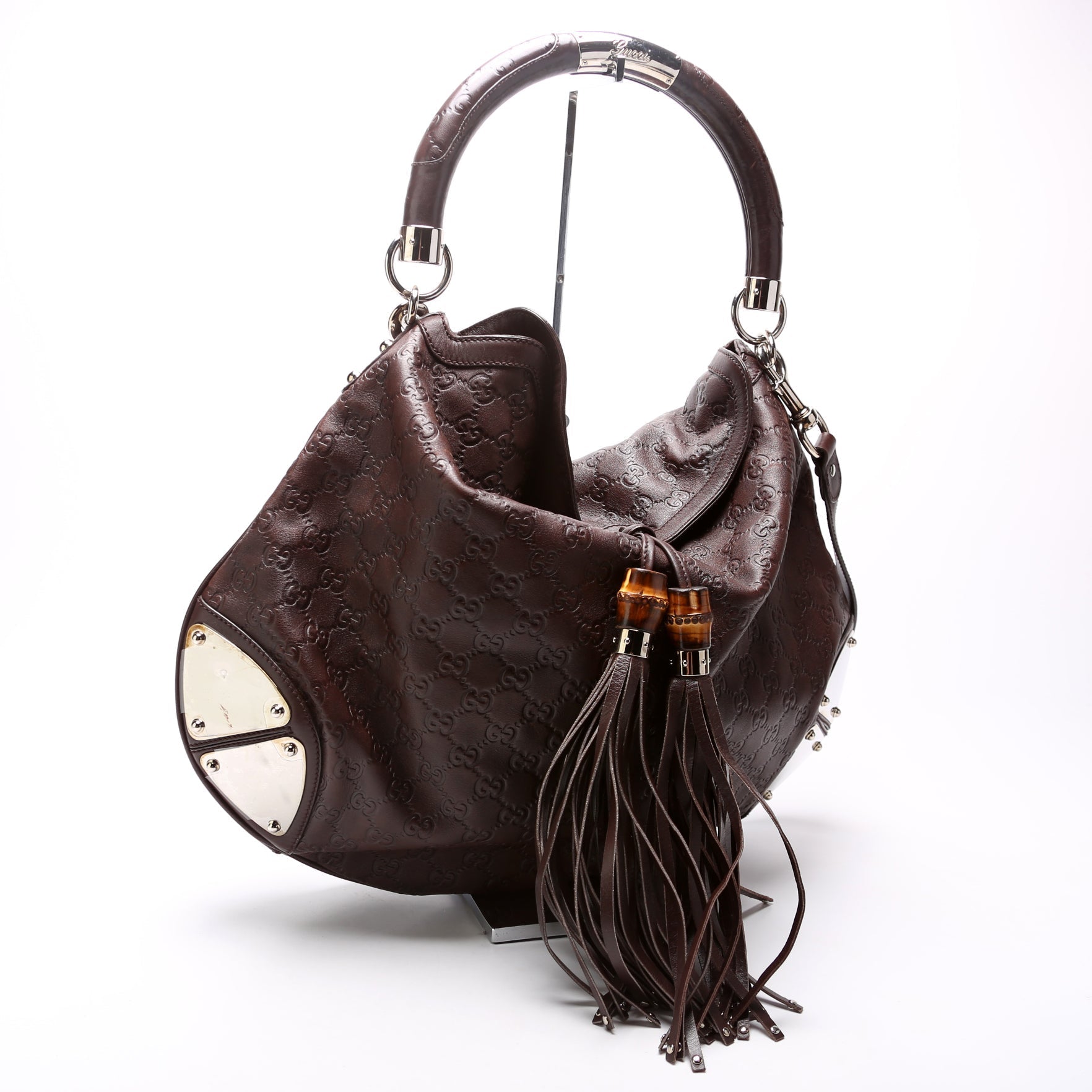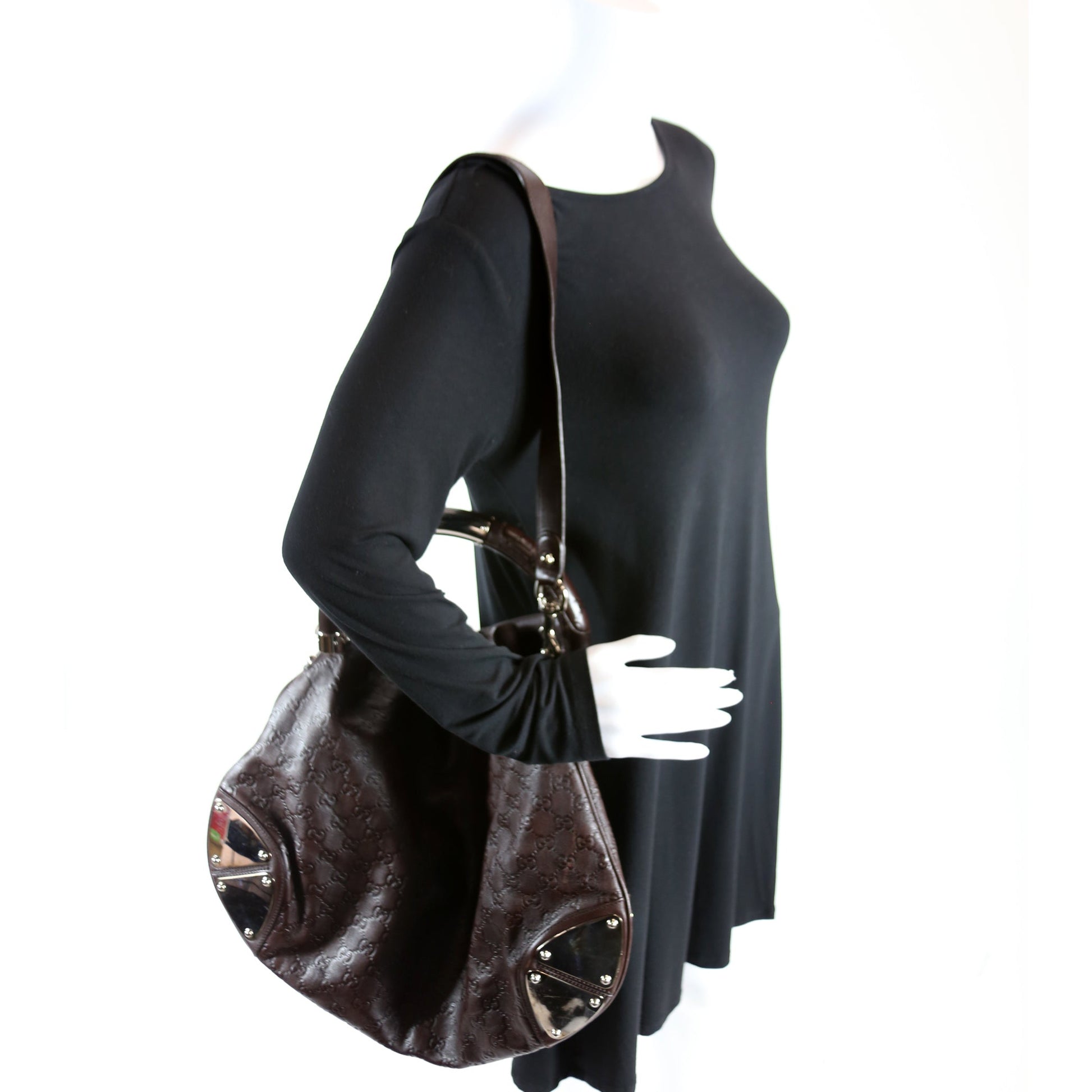 This Gucci Guccissima Indy Top Handle Hobois eye catching bag. The exterior is in the classic Gucci Guccissima Leather.