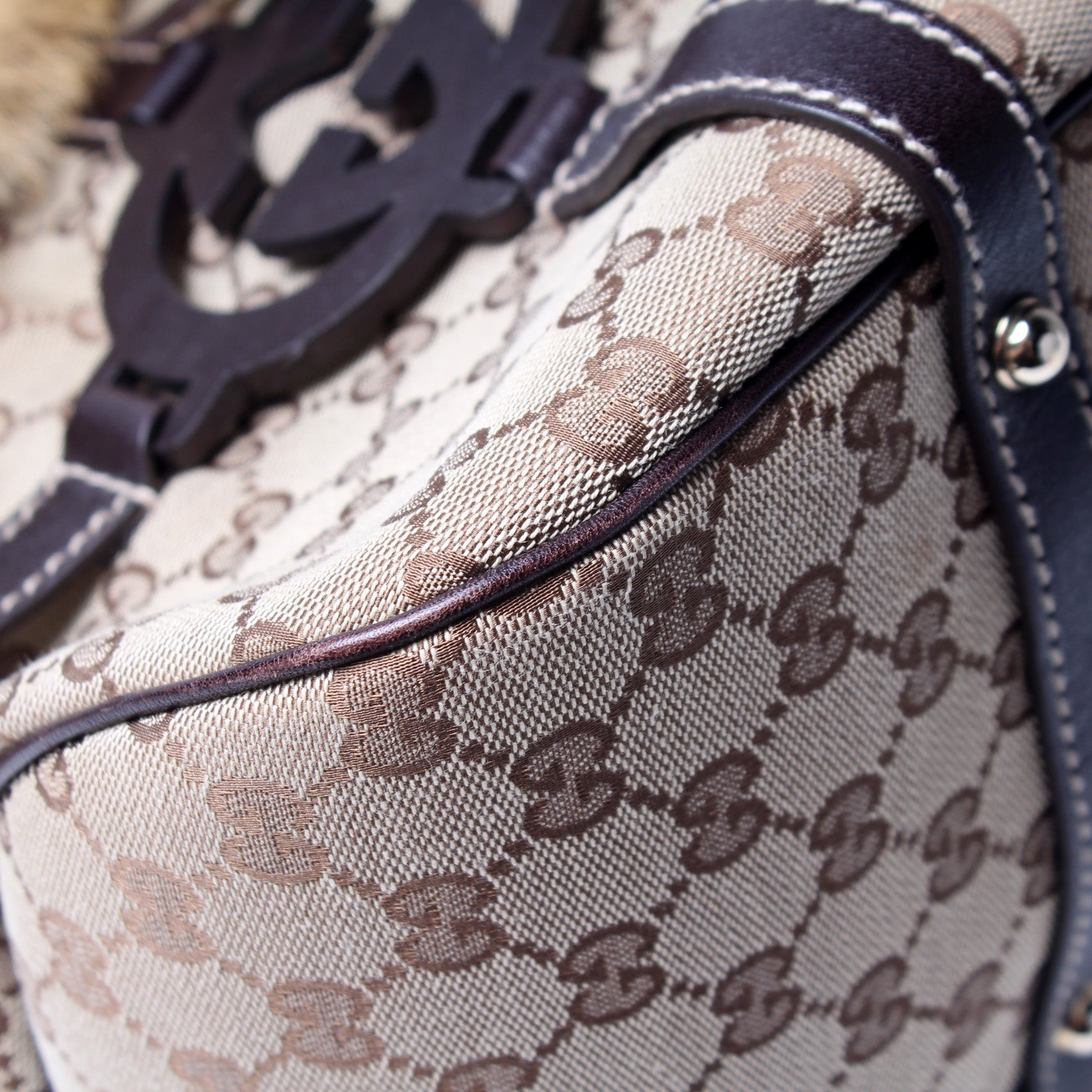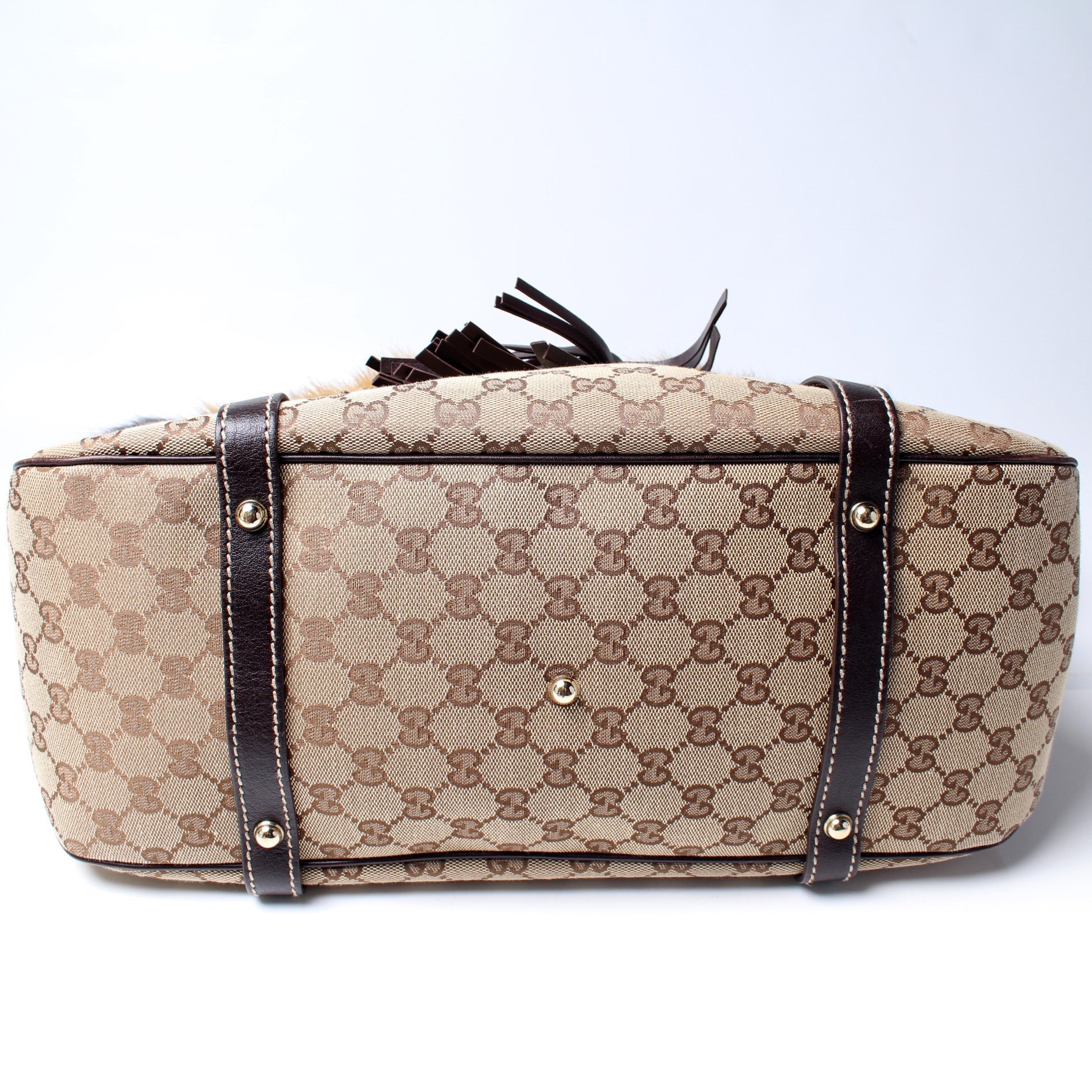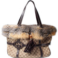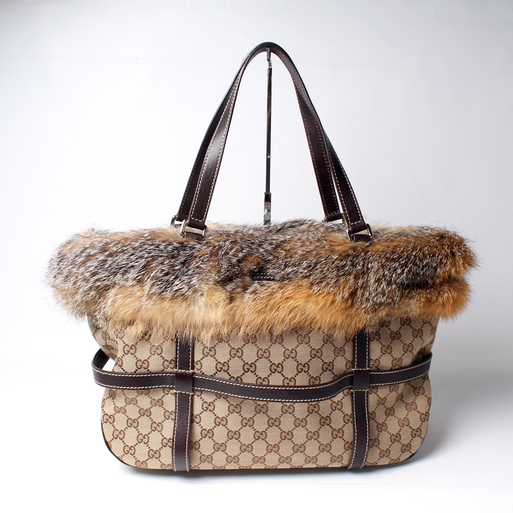 This Gucci GG Canvas Fur Royal Toteis eye catching bag. The exterior is in the classic GG Canvas.
