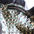 Interior: The interior is free of rips or tears. The interior features one zip closure pocket and one open pocket.