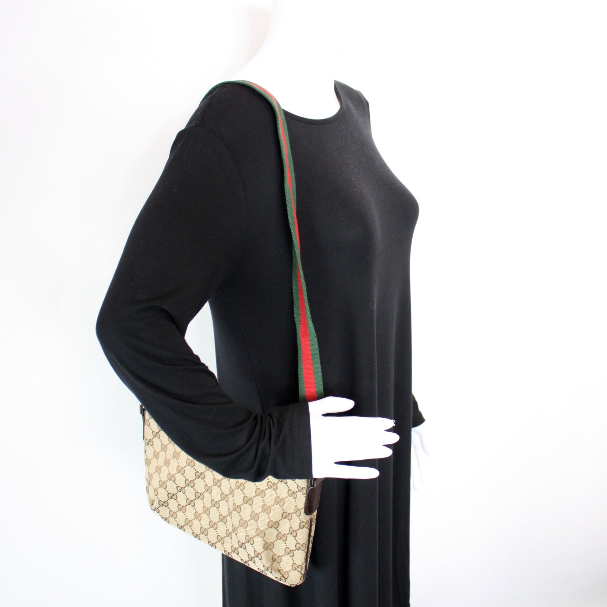 This Gucci Shelly Shoulder Bagis eye catching bag. The exterior is in the classic Gucci GG canvas.