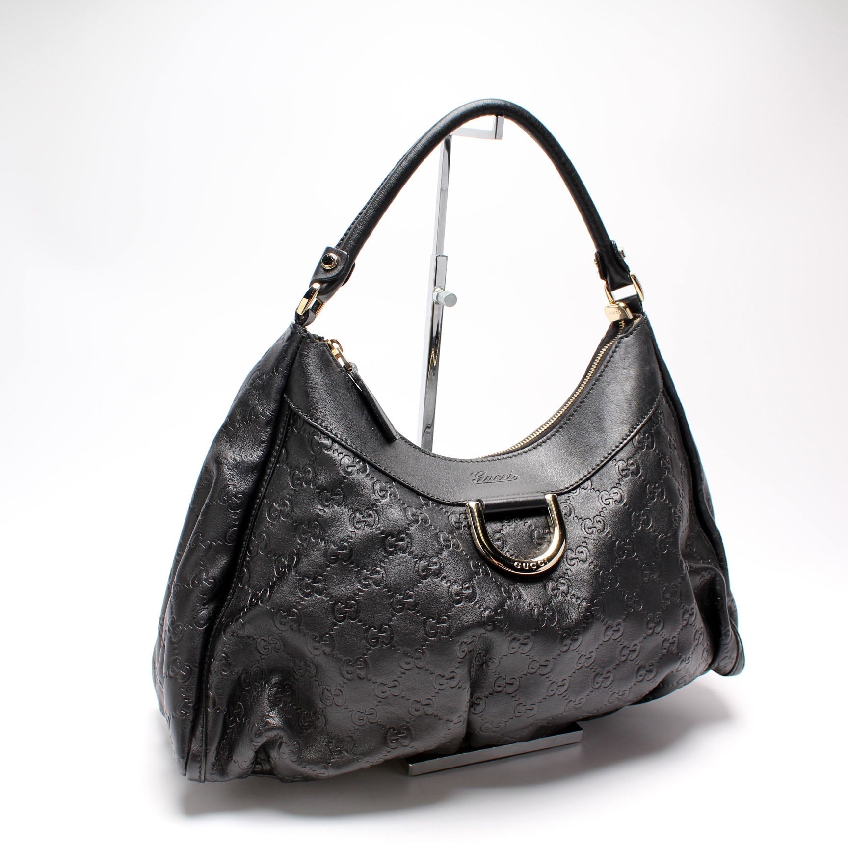 This Gucci D Ring Hobo is d 100% . The exterior is in the classic Gucci GG canvas.