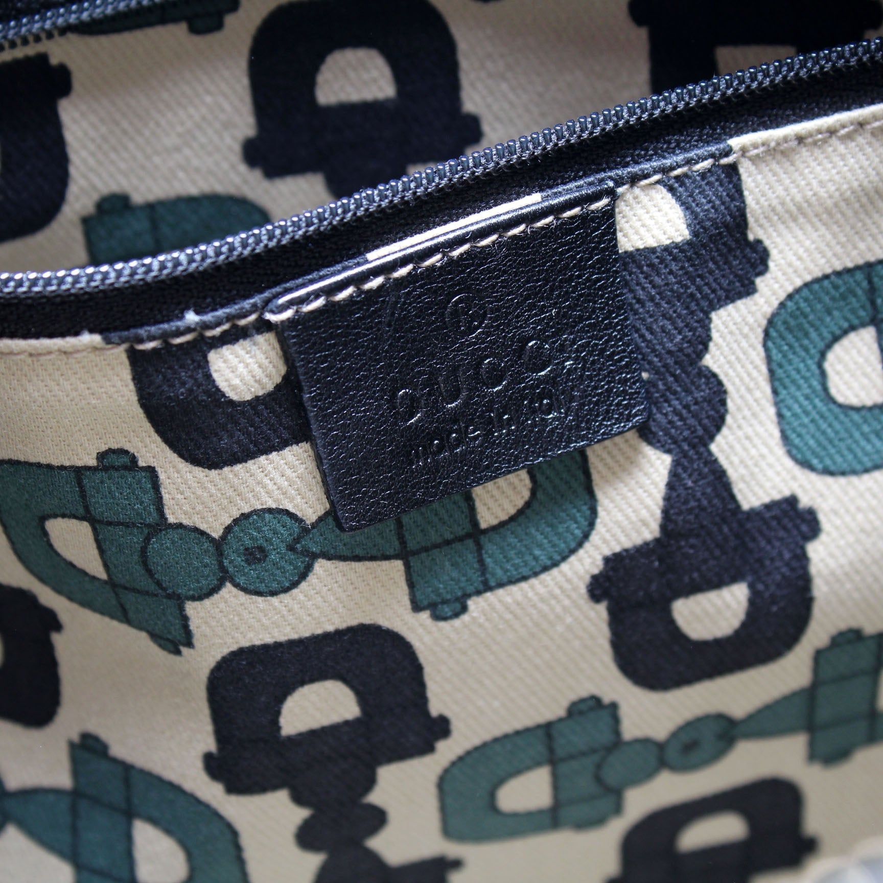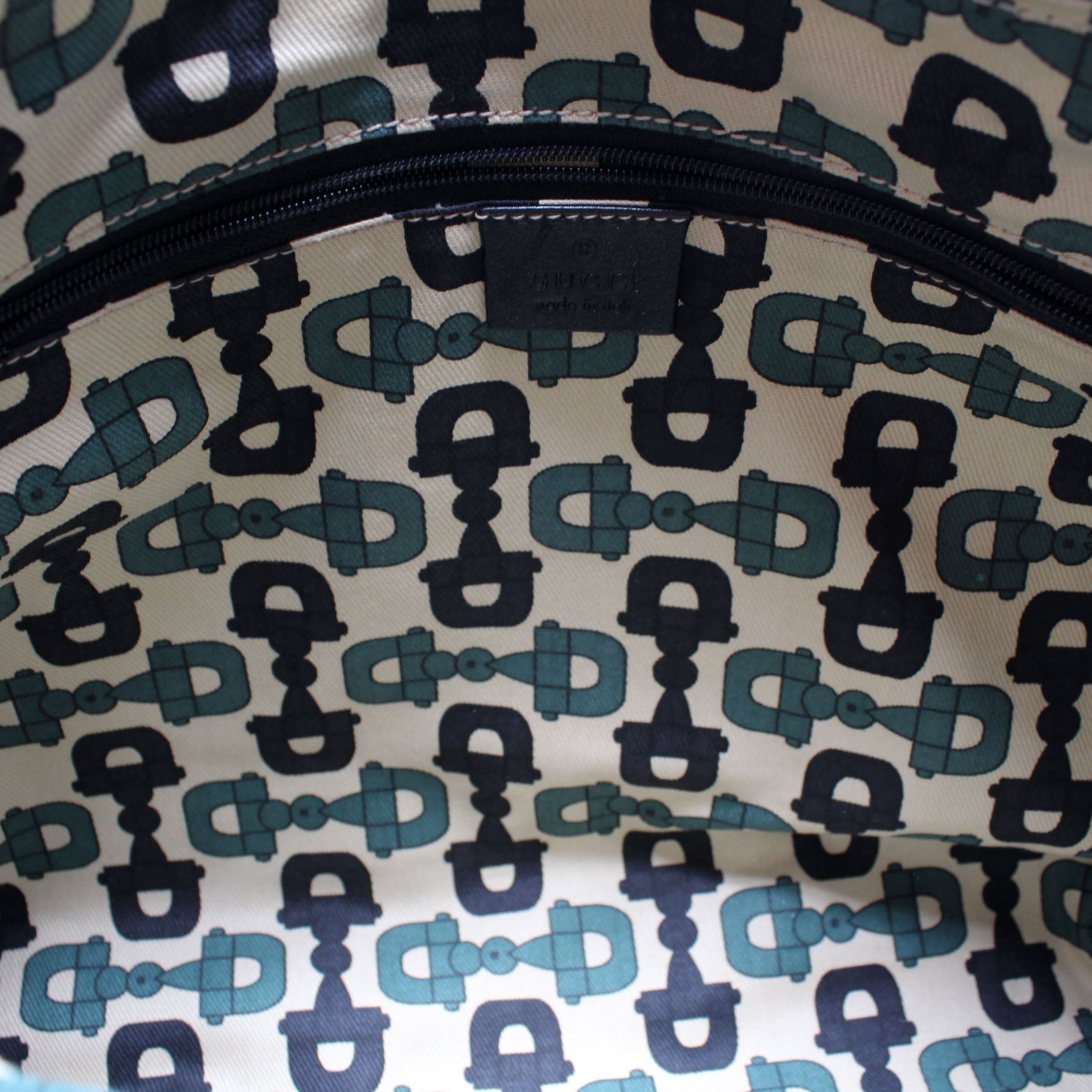 Interior: The interior is clean and free of rips or tears. The interior features one zip closure pocket.