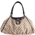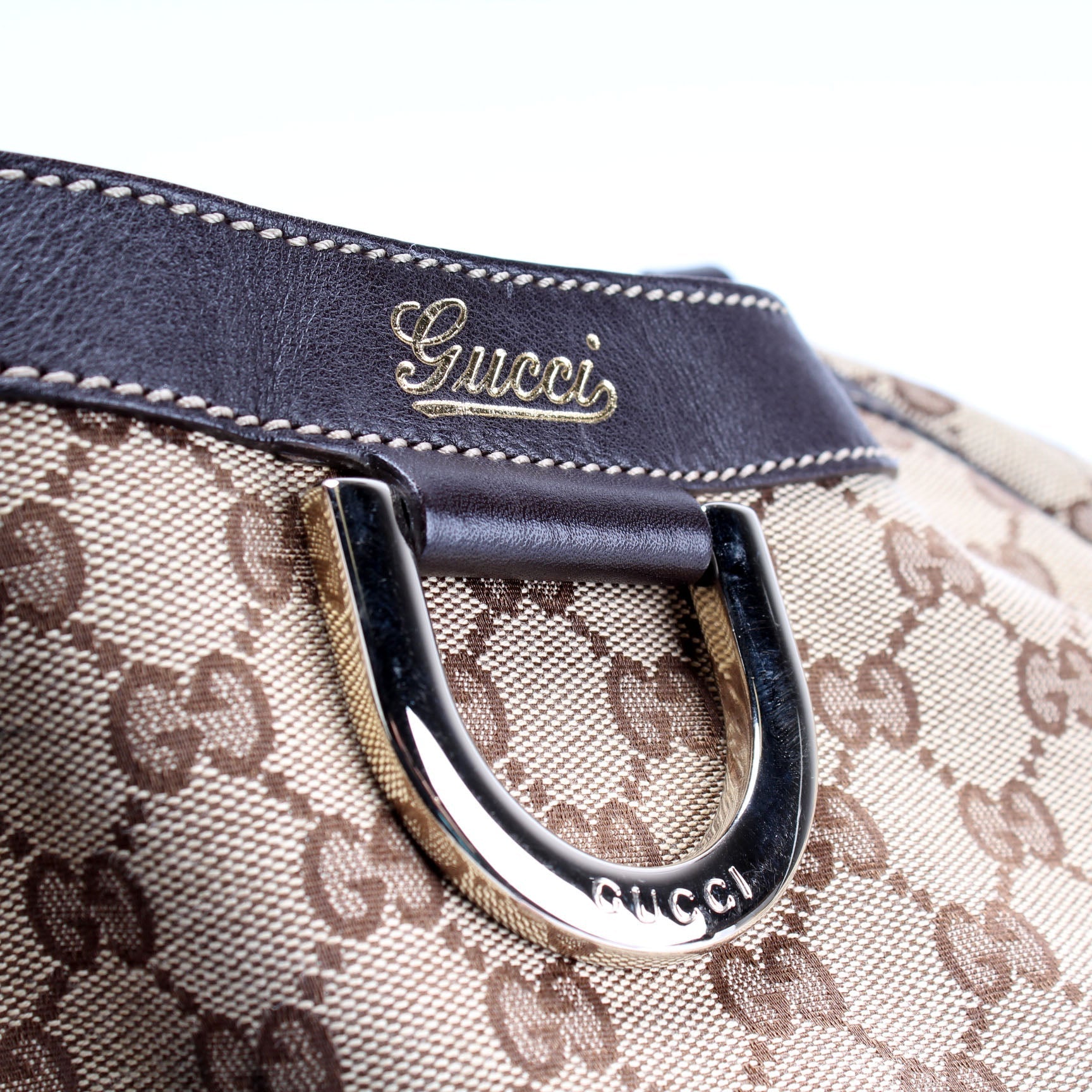 This Gucci GG Canvas Abbey D Ring Large Hobois eye catching bag. The exterior is in the classic Gucci GG canvas.