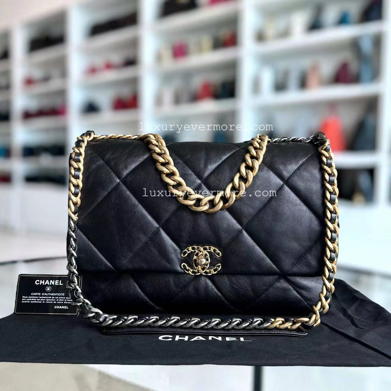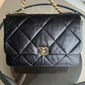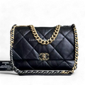 Chanel 19 Bag Maxi - C19 Quilted Goatskin Black 19Bag Two-tone Golden Hardware Series 29