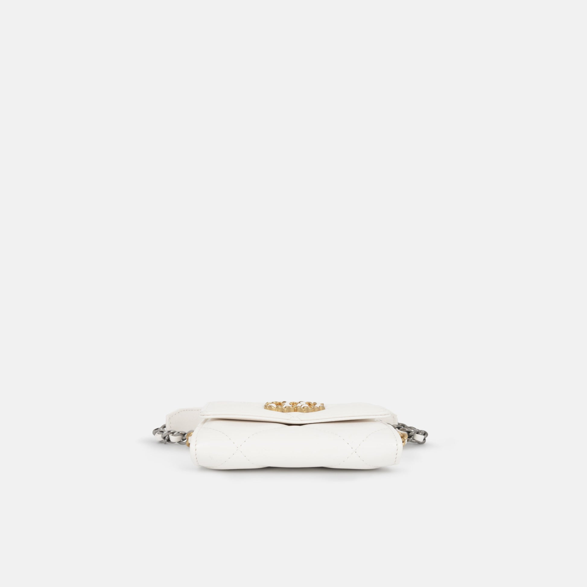 Chanel 19 Cardholder on Chain White Lambskin Gold & Ruthenium Hardware