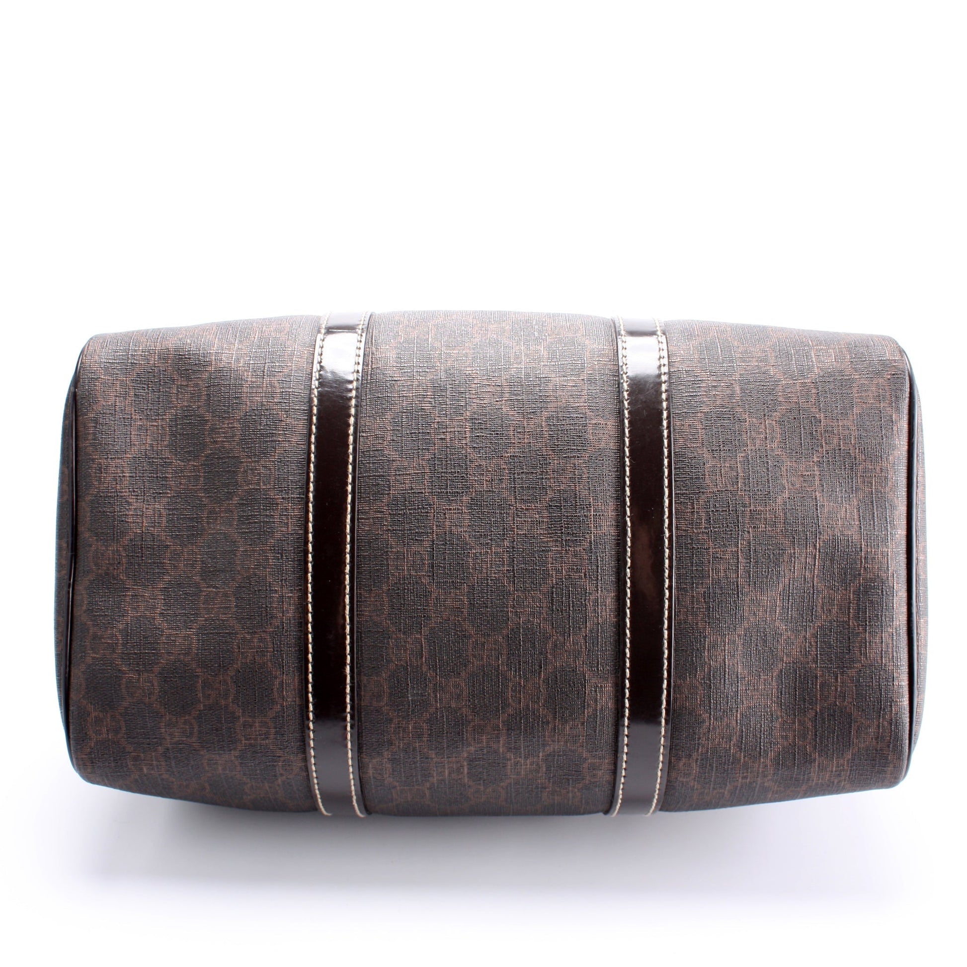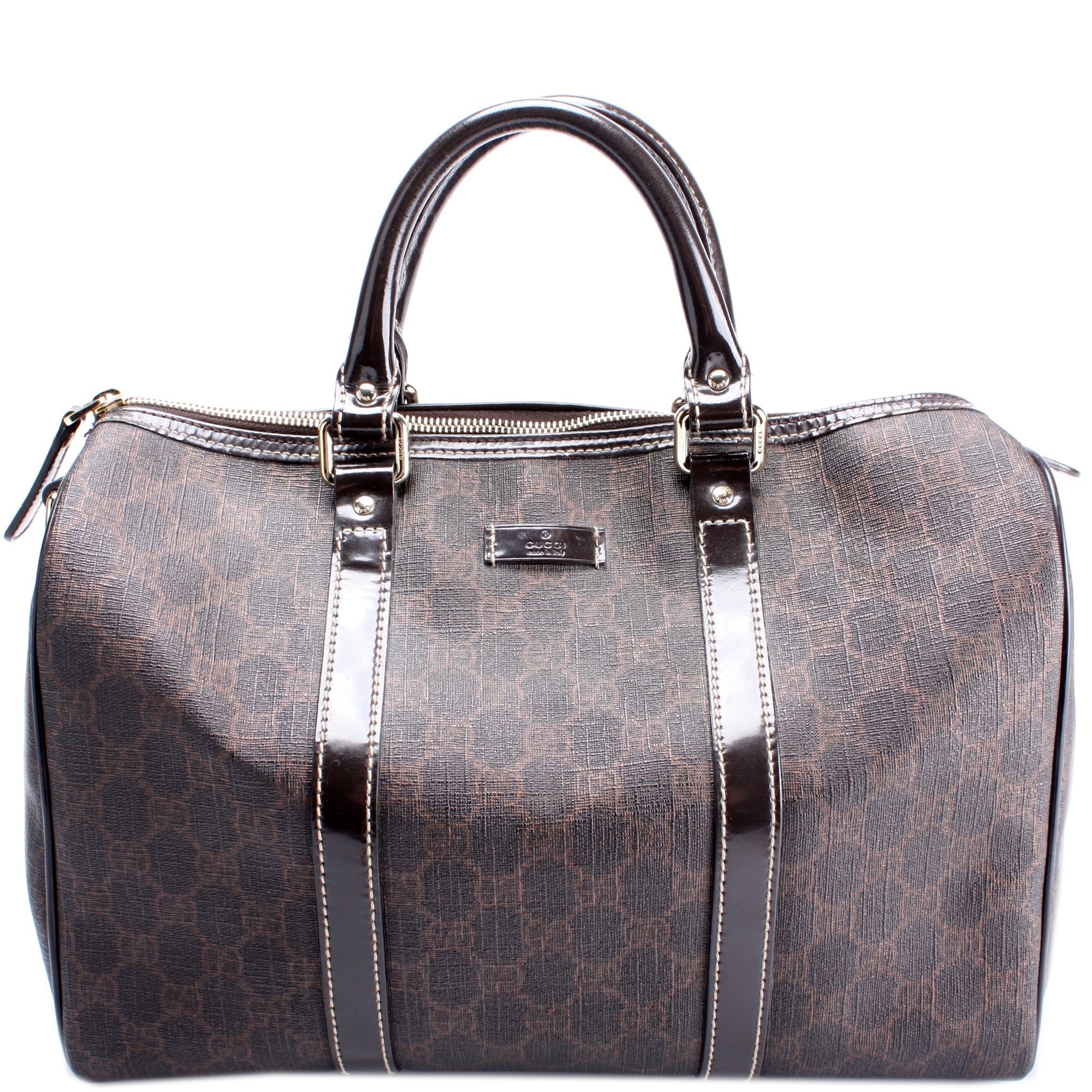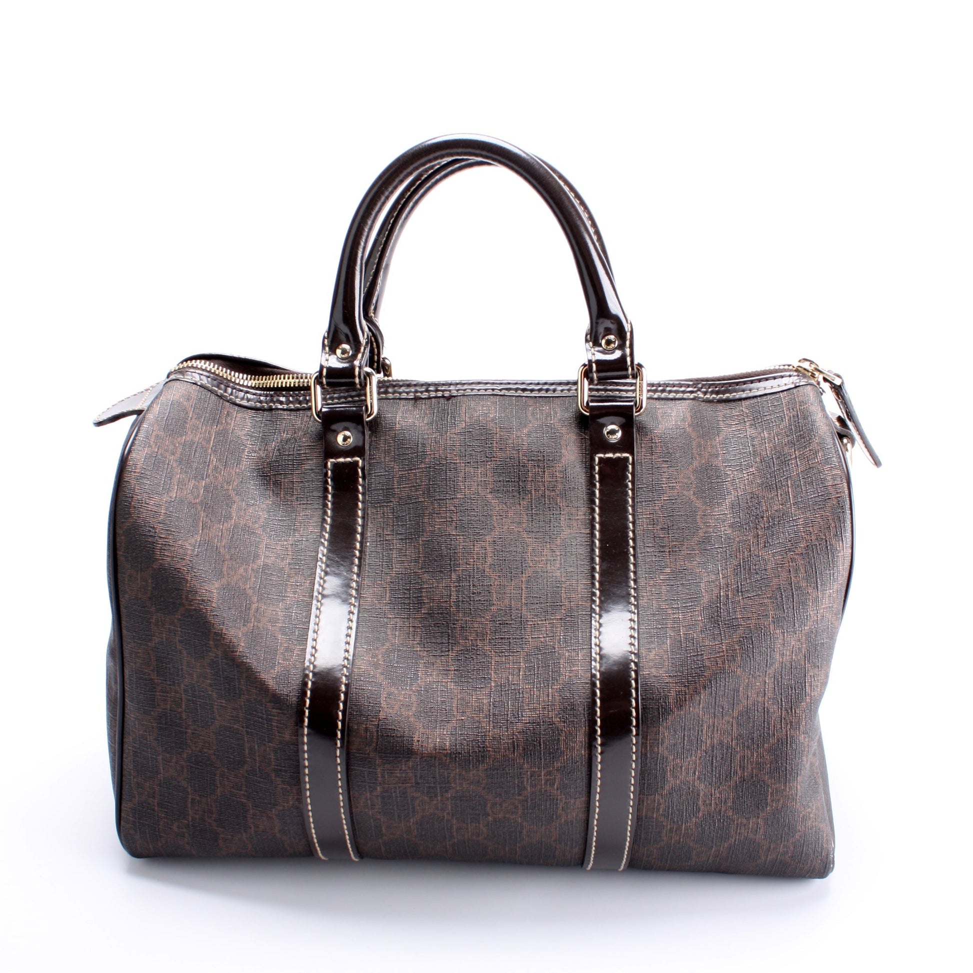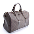 This Gucci Joy Boston Bagis eye catching bag. The exterior is in the classic Gucci GG coated canvas.