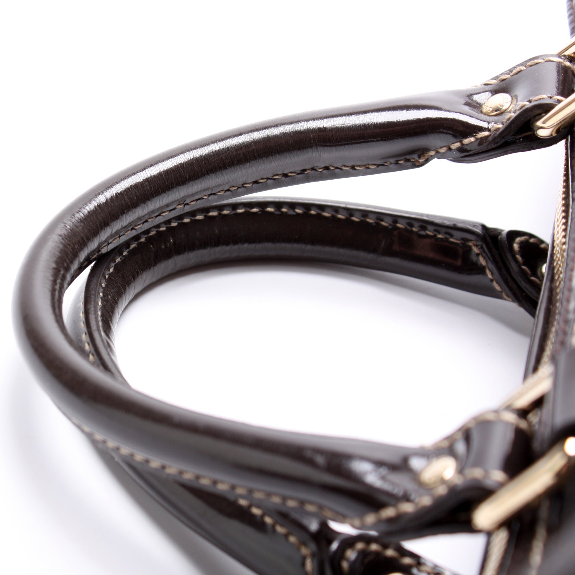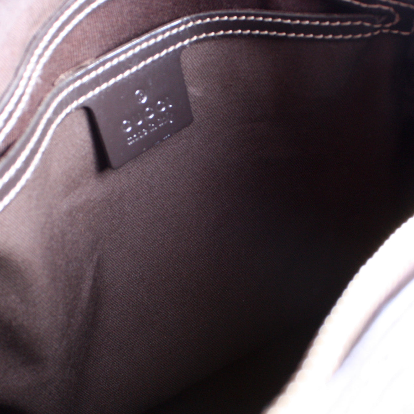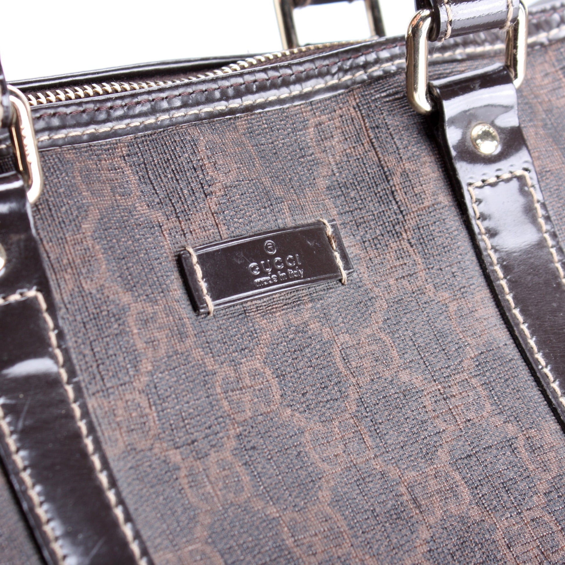 This Gucci Joy Boston Bagis eye catching bag. The exterior is in the classic Gucci GG coated canvas.