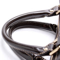 Exterior: The exterior is free of any rips or cracks. The leather trim shows light wear. The corners show minor wear.