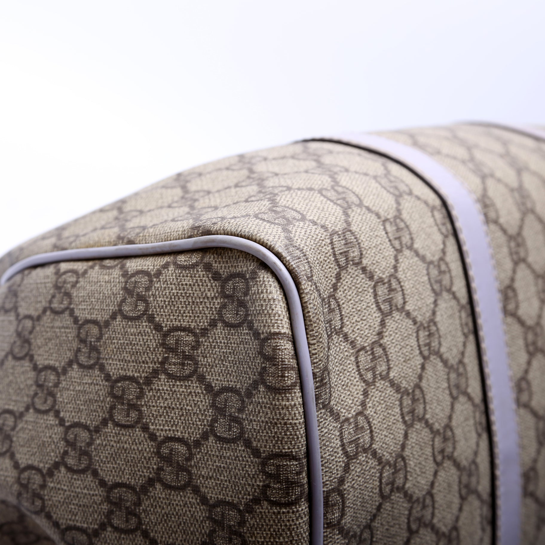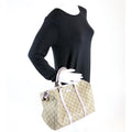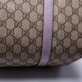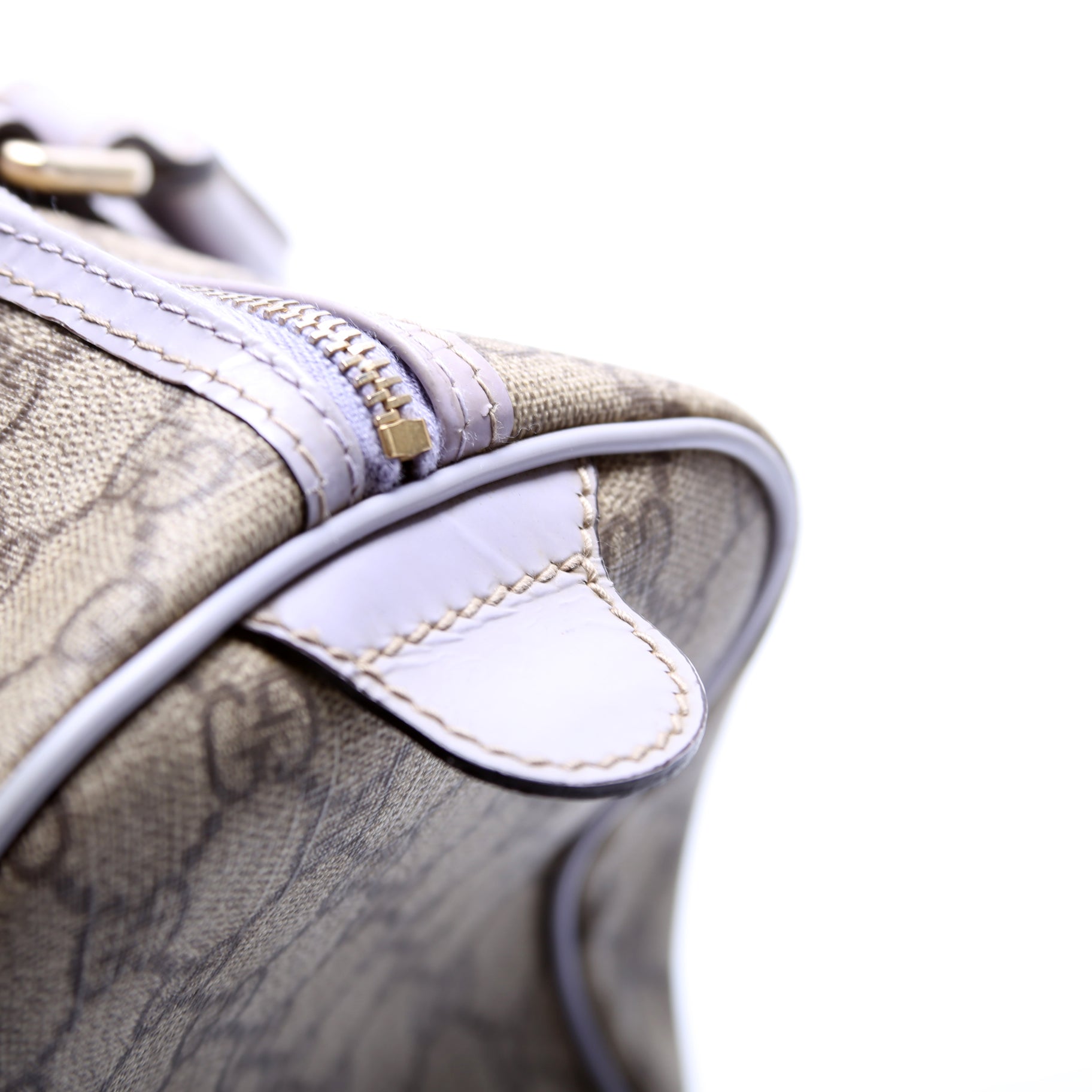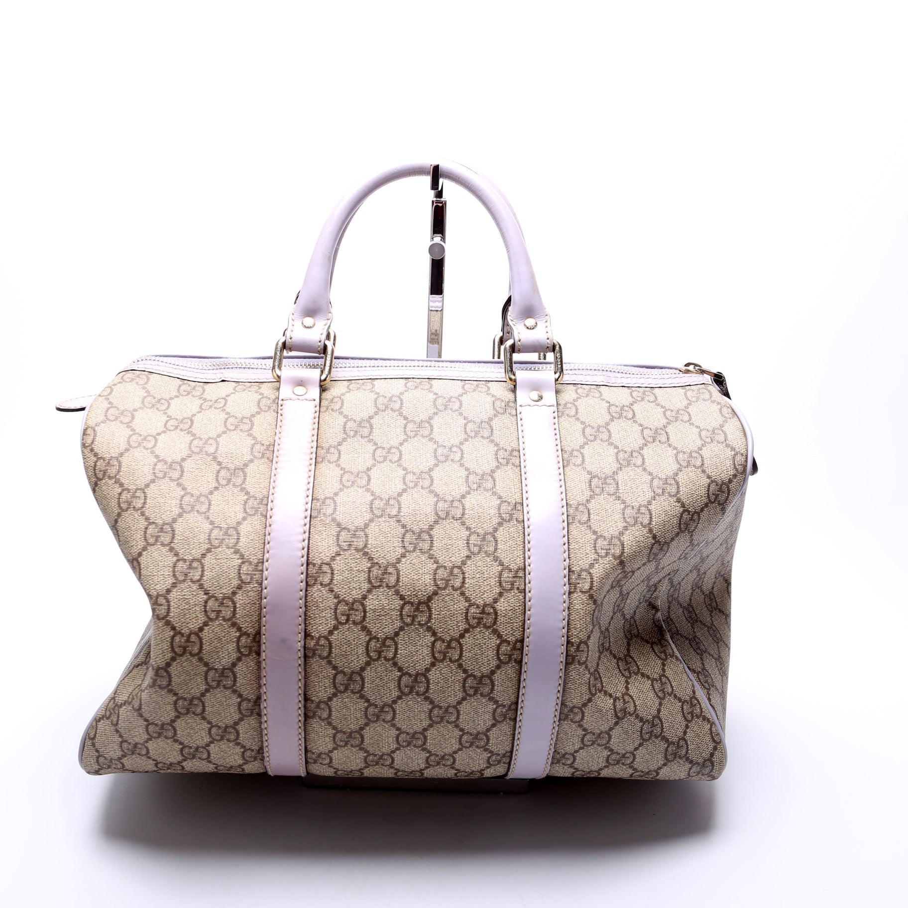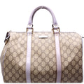 This Gucci Joy Boston Bagis eye catching bag. The exterior is in the classic Gucci GG coated canvas.