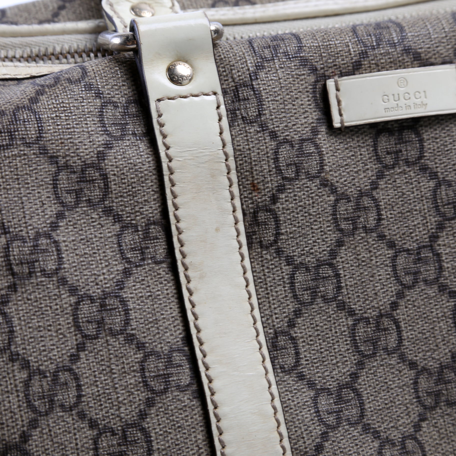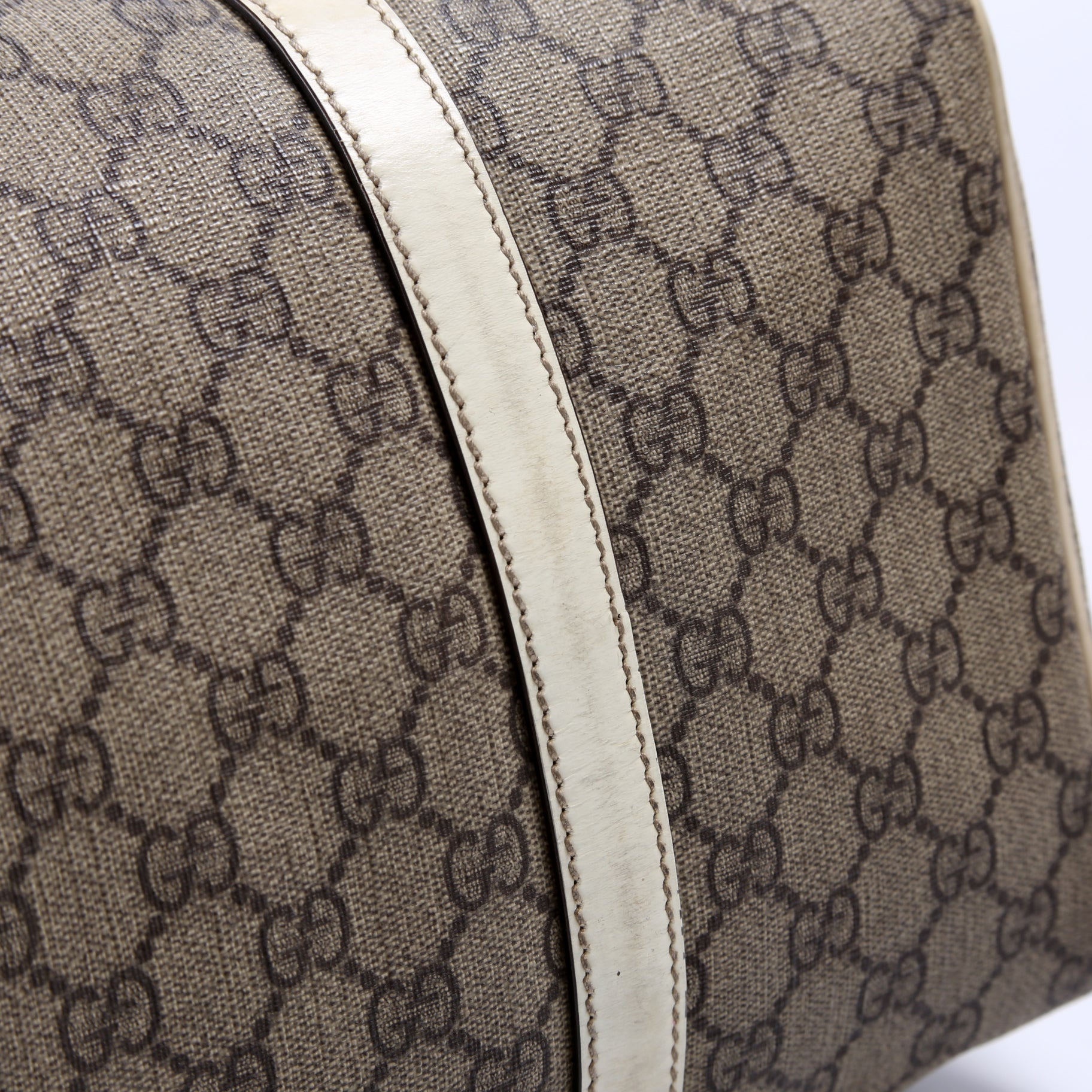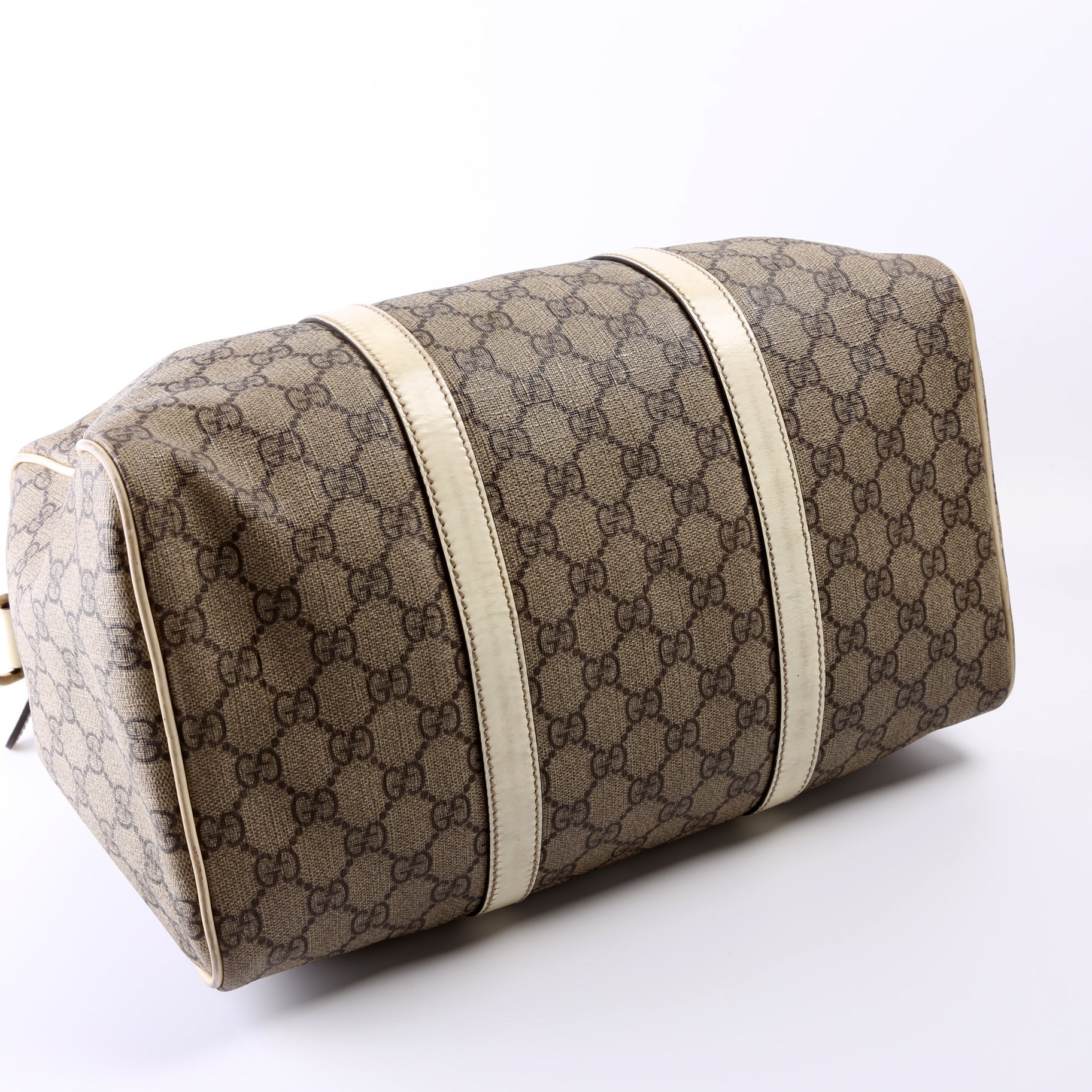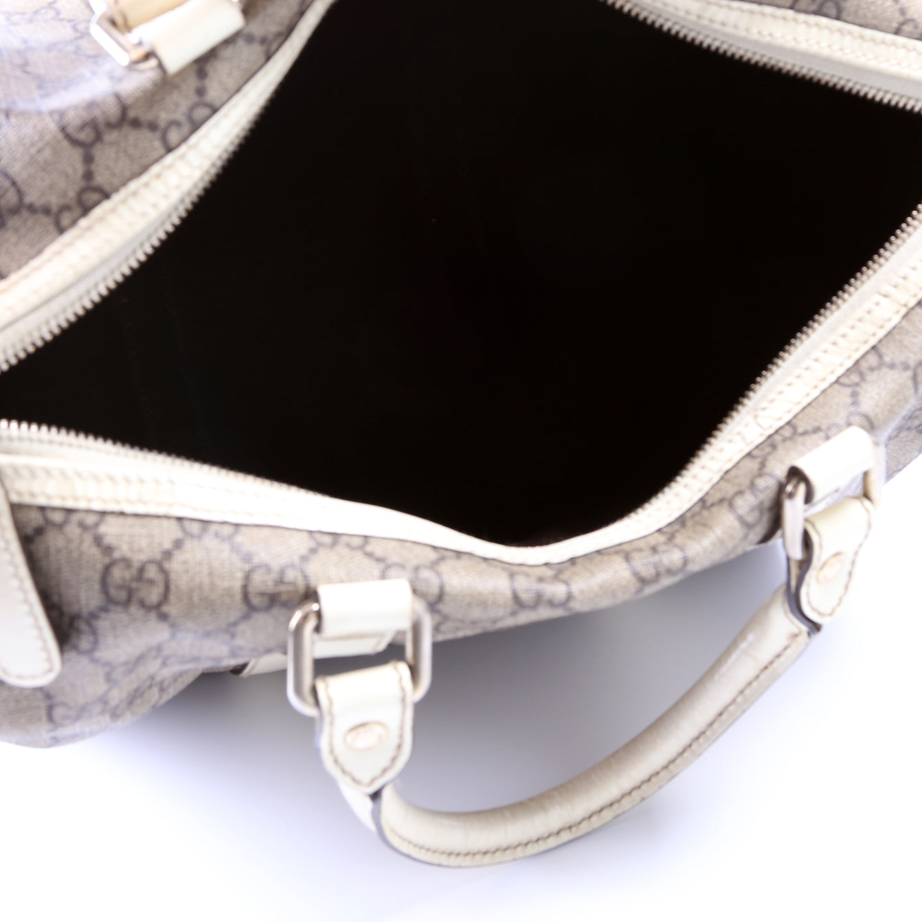 This Gucci Joy Boston Bagis eye catching bag. The exterior is in the classic Gucci GG coated canvas.
