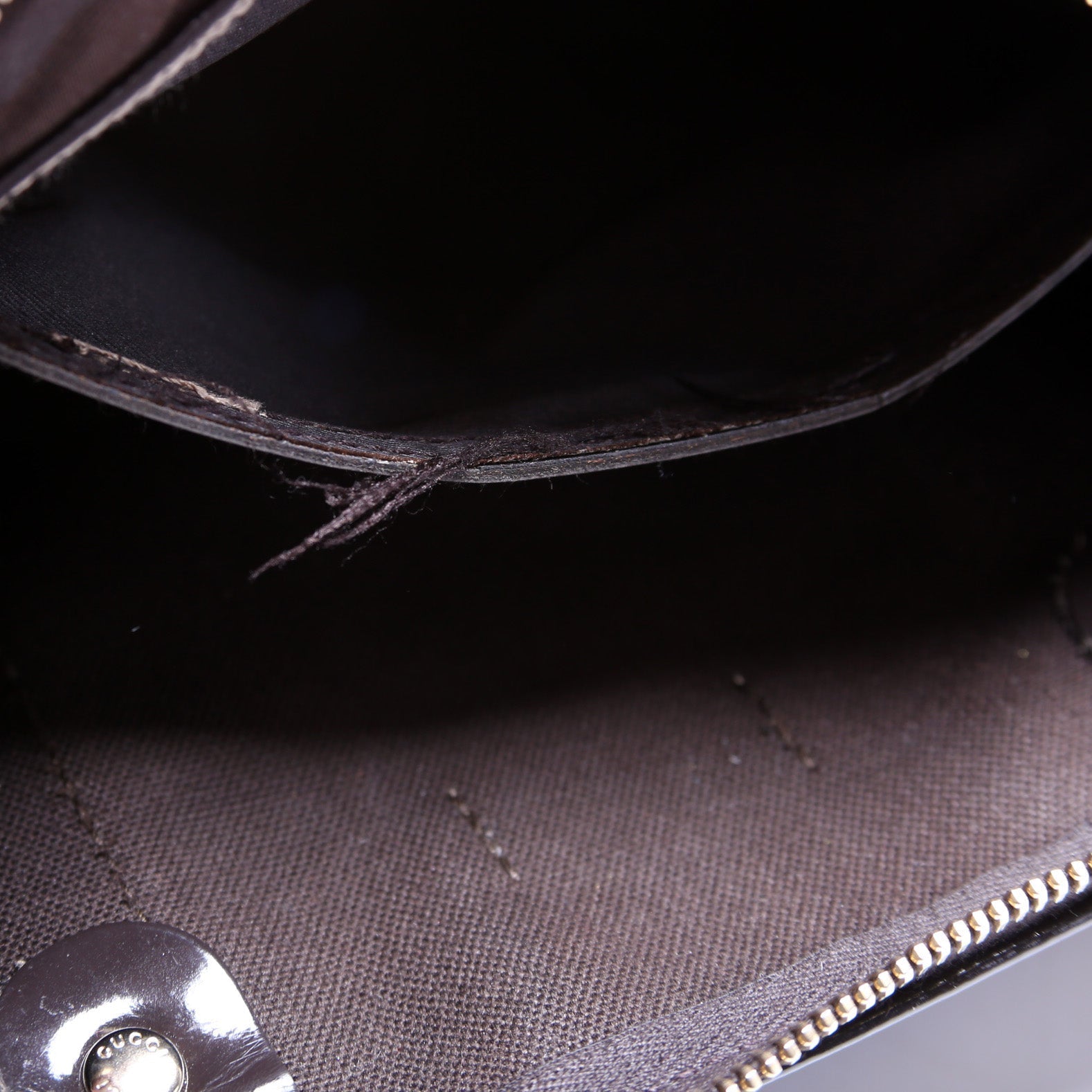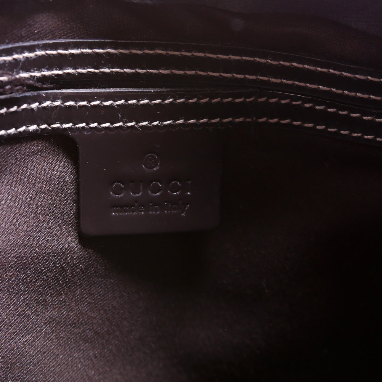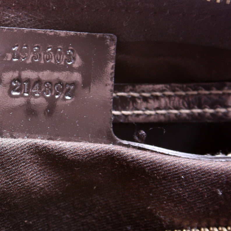 This Gucci Joy Boston Bagis eye catching bag. The exterior is in the classic Gucci GG coated canvas.