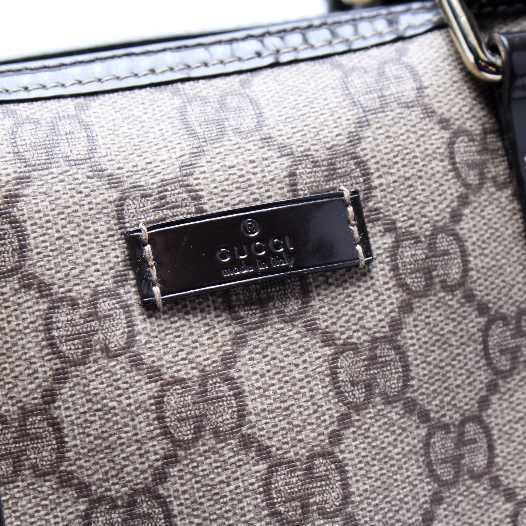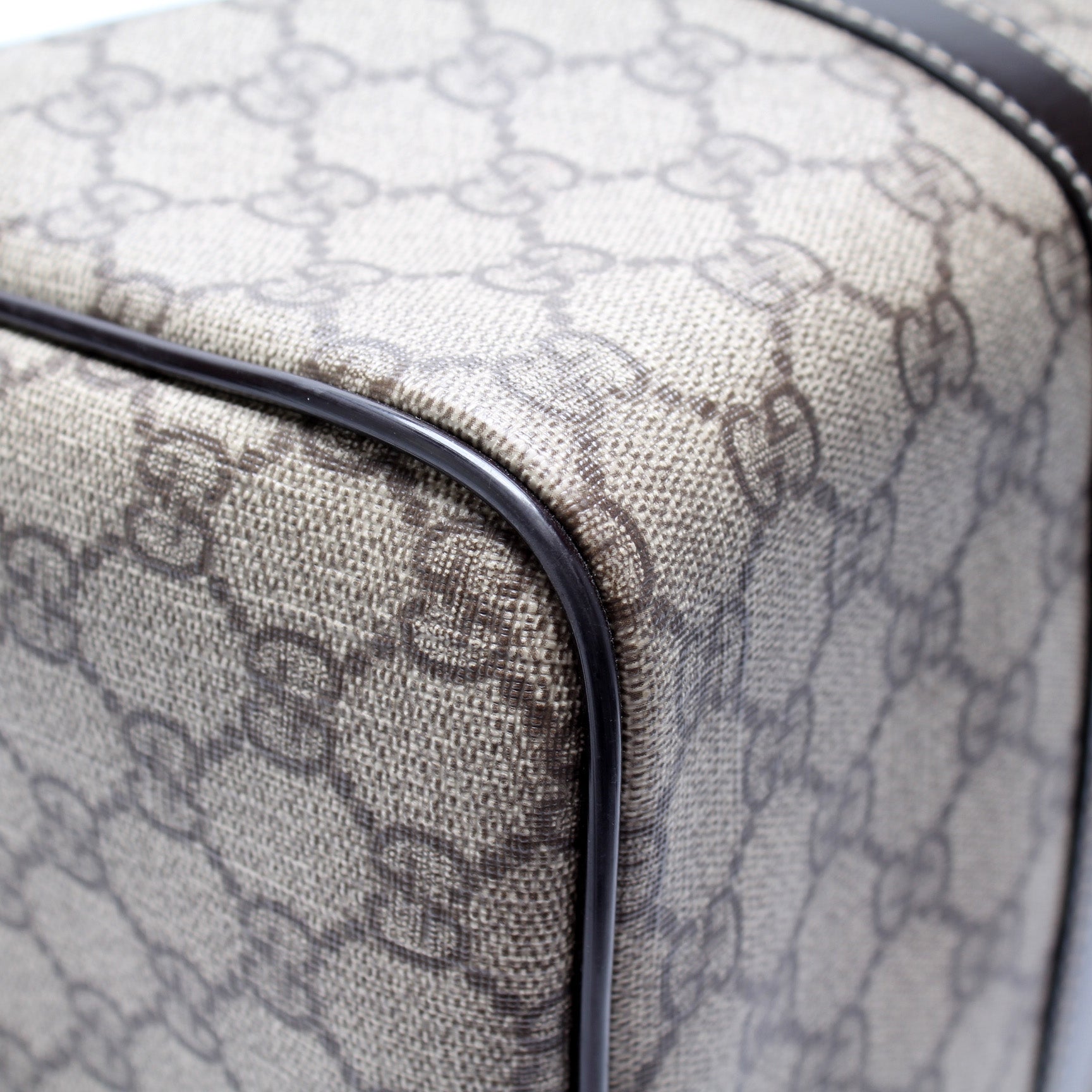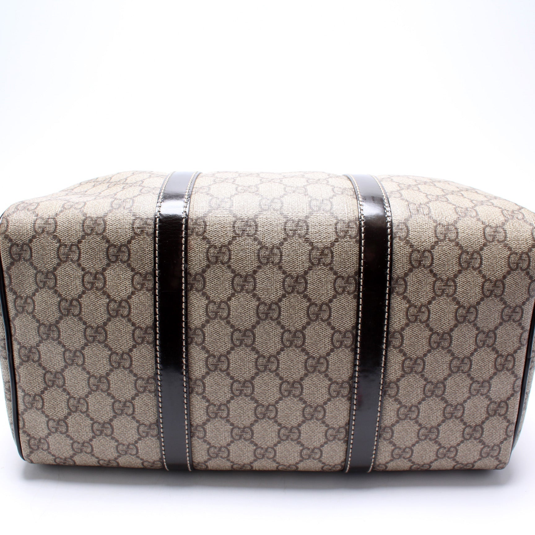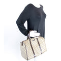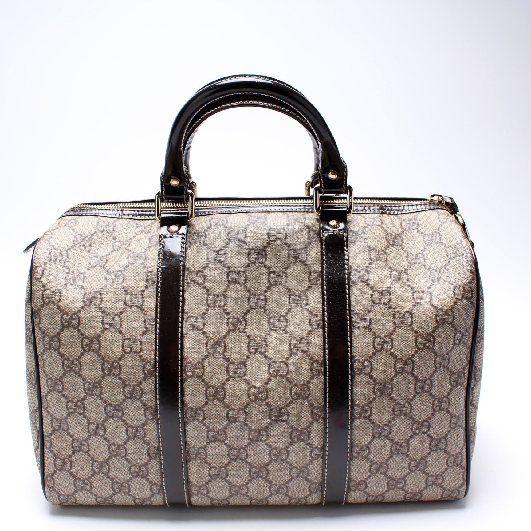 This Gucci Joy Boston Bagis eye catching bag. The exterior is in the classic Gucci GG coated canvas.