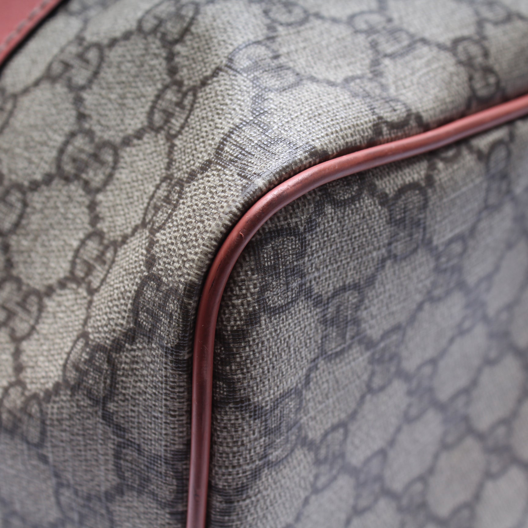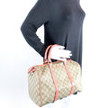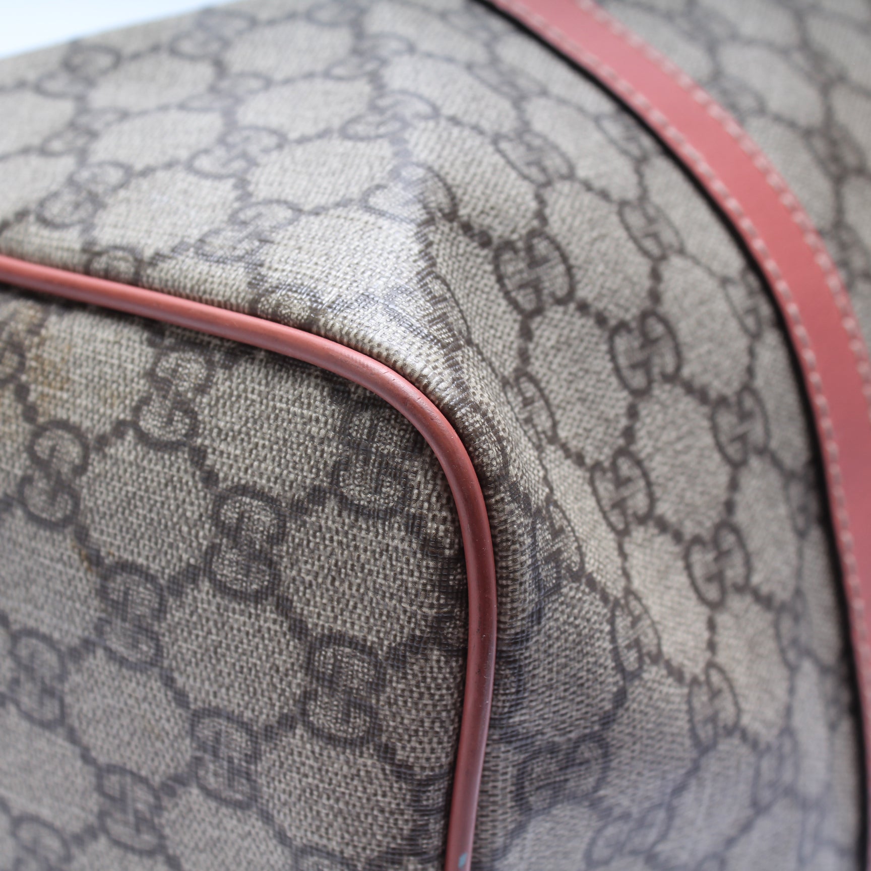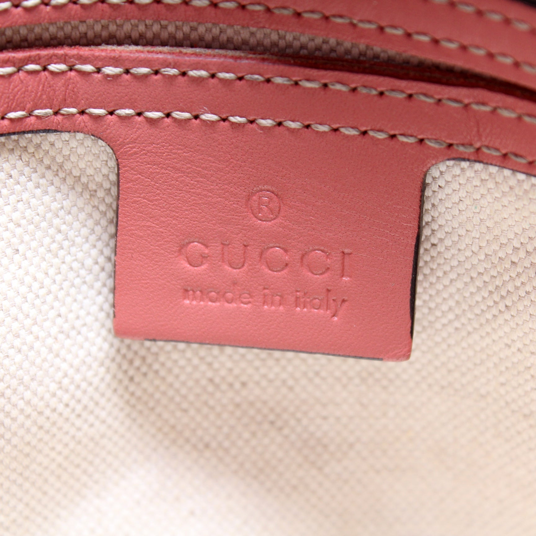This Gucci Joy Boston Bagis eye catching bag. The exterior is in the classic Gucci GG coated canvas.