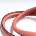 Exterior: The exterior is free of any rips or cracks. The leather trim shows light wear. The corners show minor discoloration.