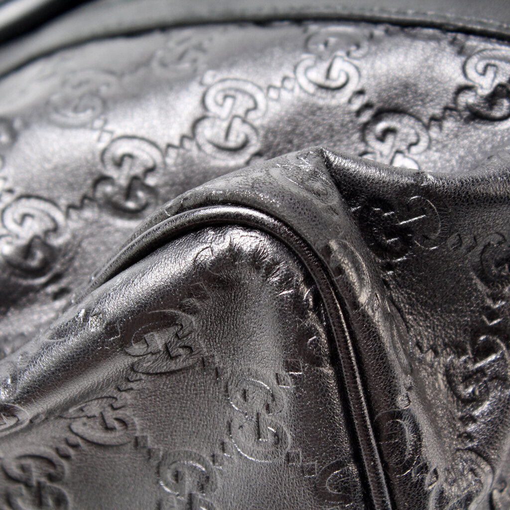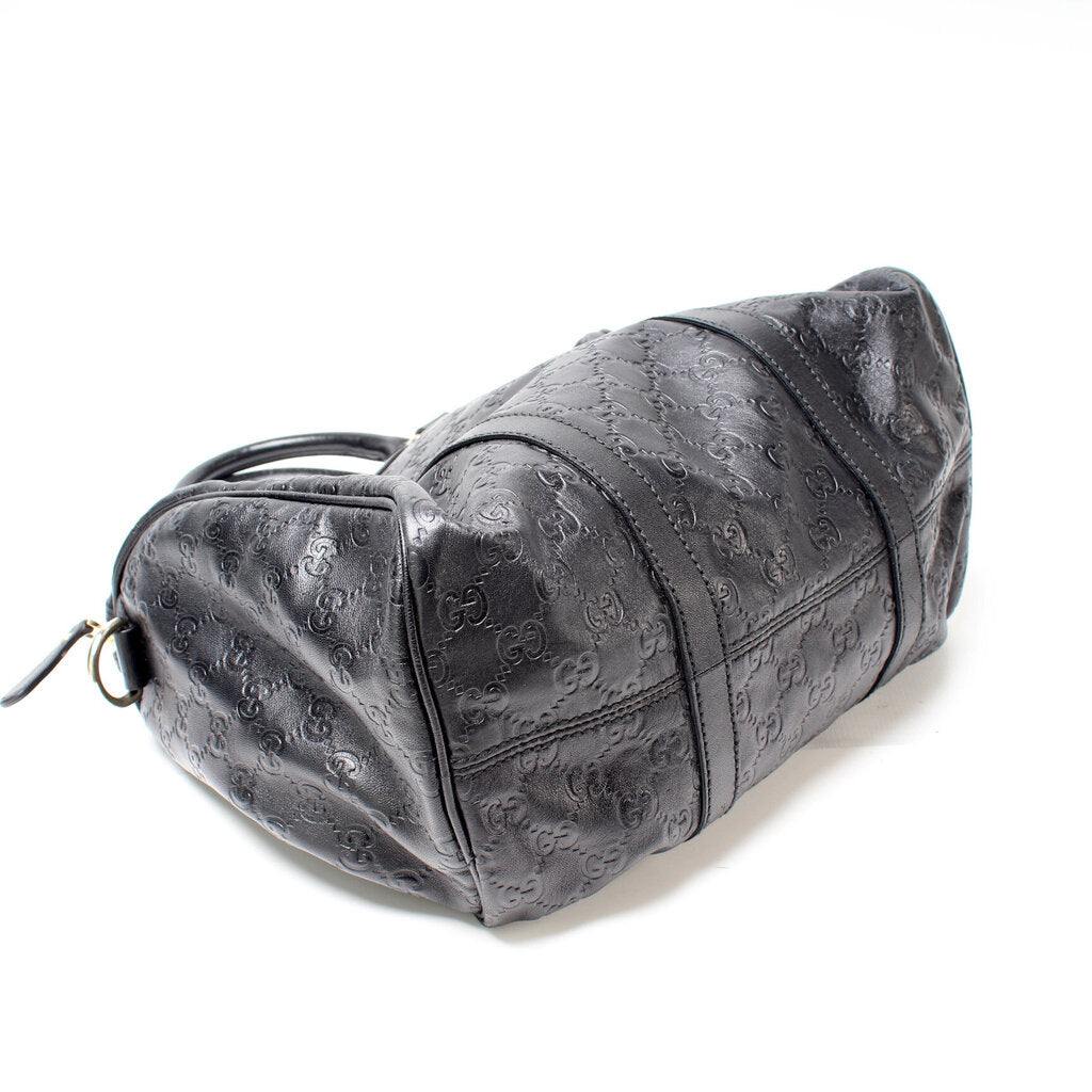 This Gucci Joy Boston Bagis eye catching bag. The exterior is in the classic Gucci GG leather.