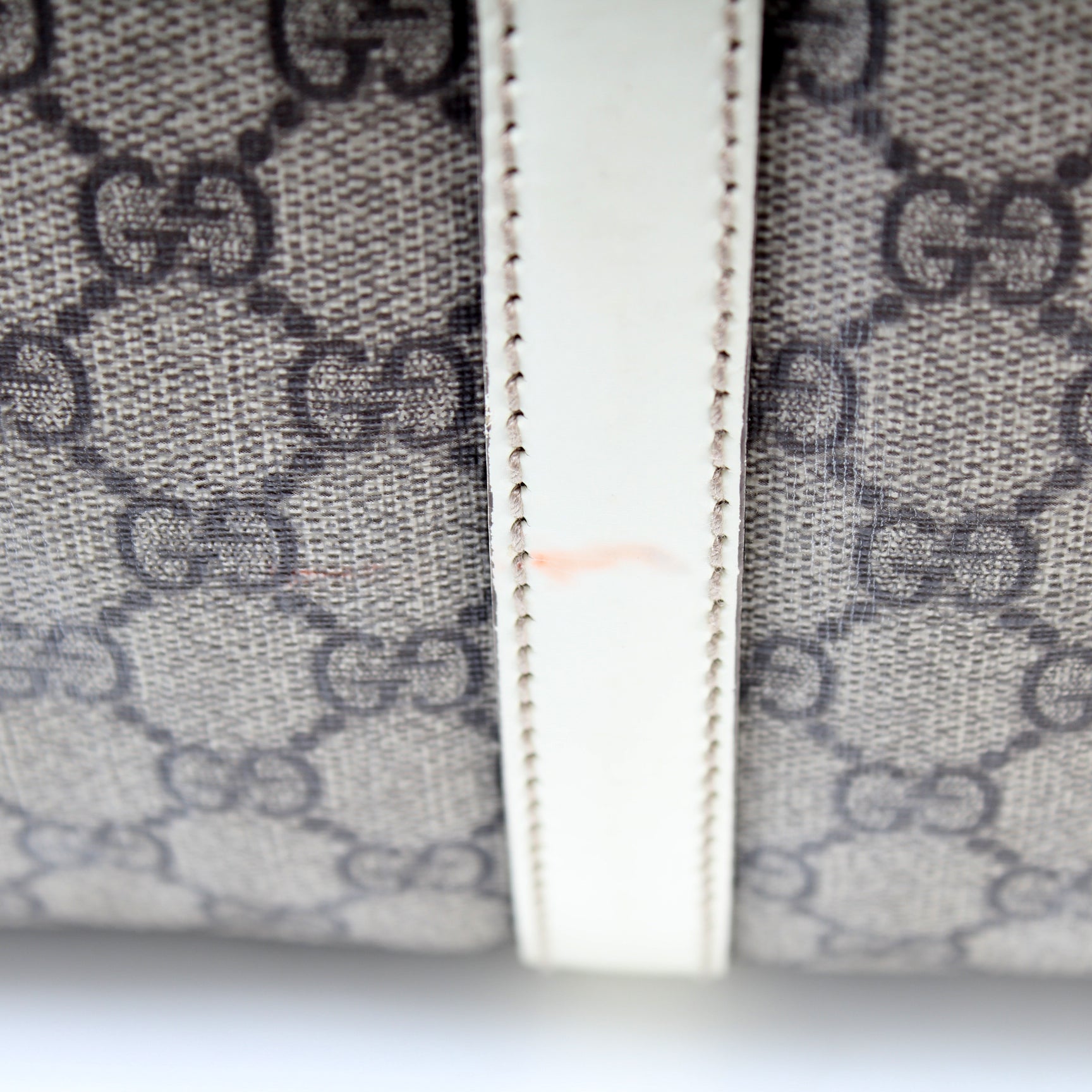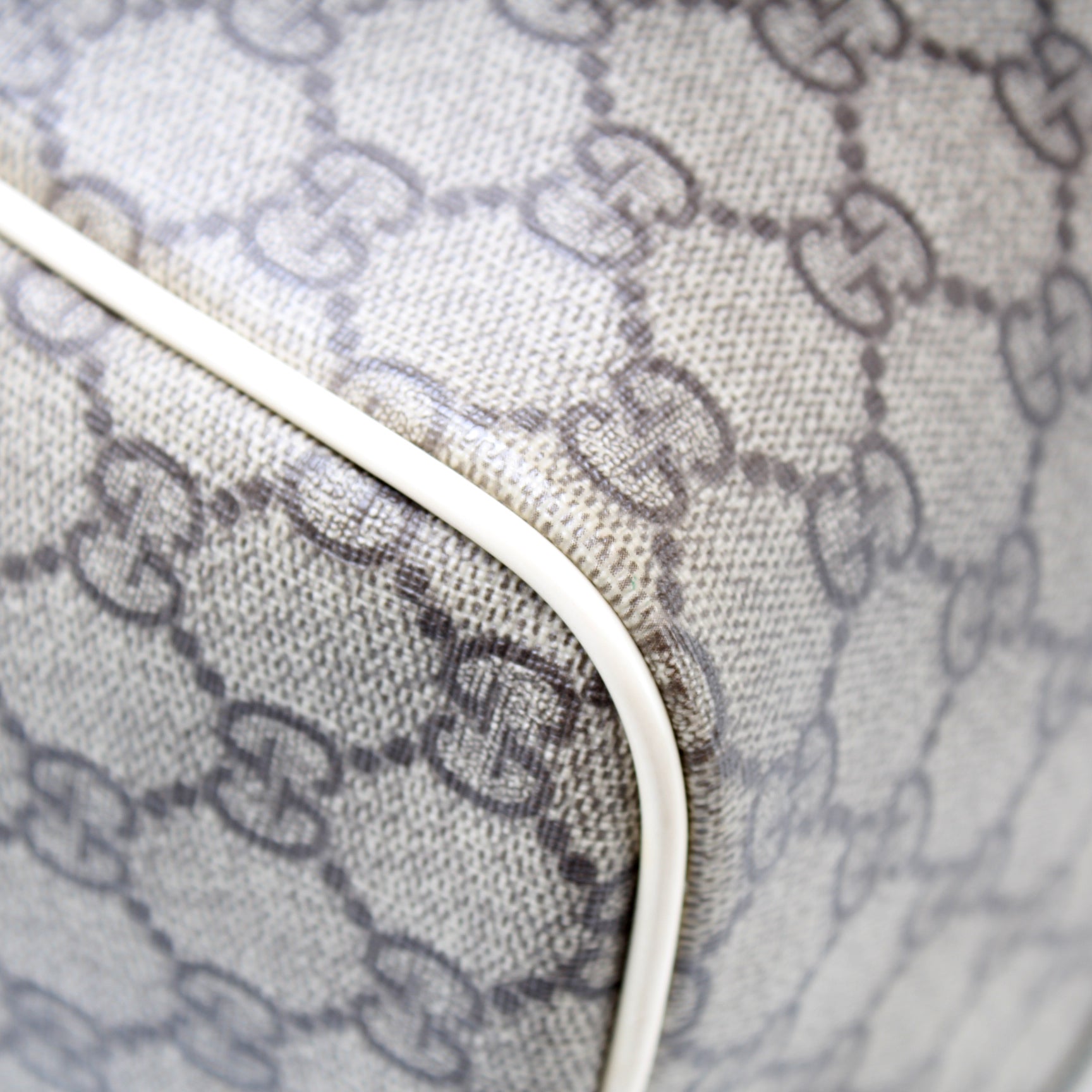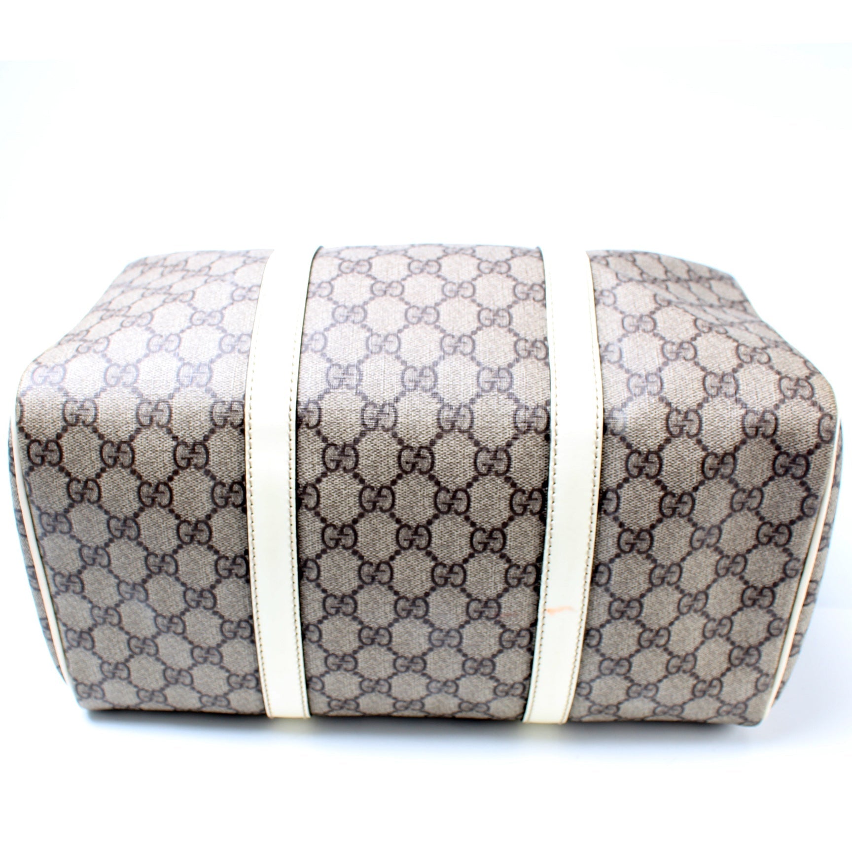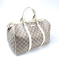 This Gucci Joy Boston Bagis eye catching bag. The exterior is in the classic Gucci GG coated canvas.