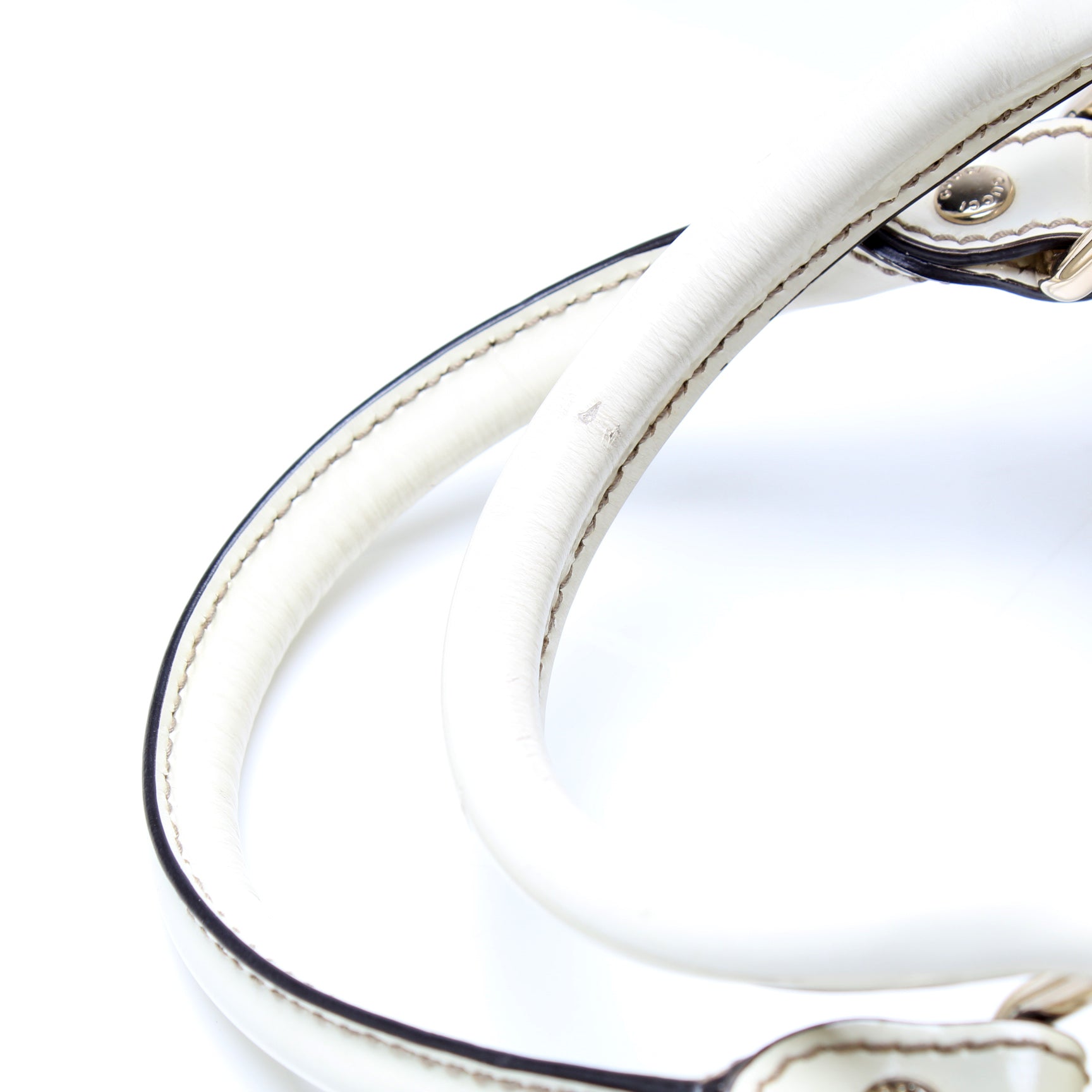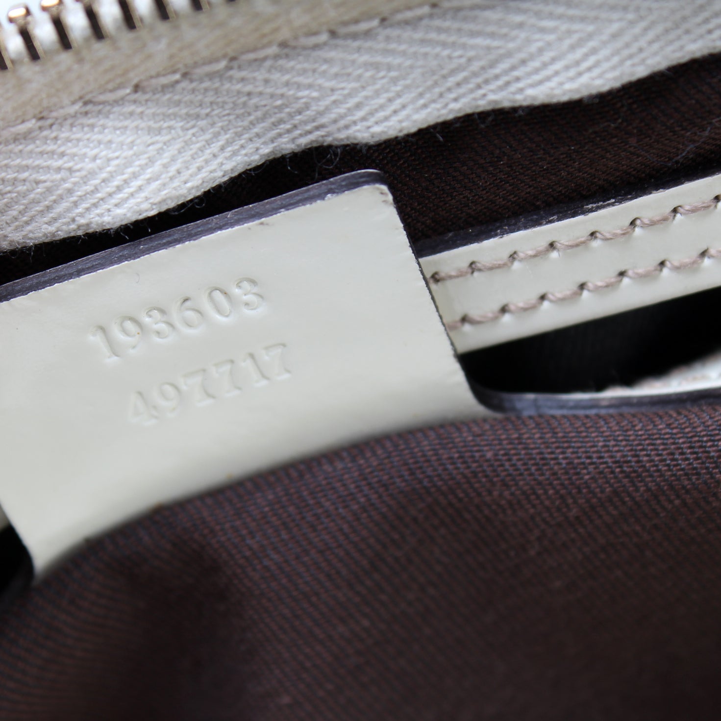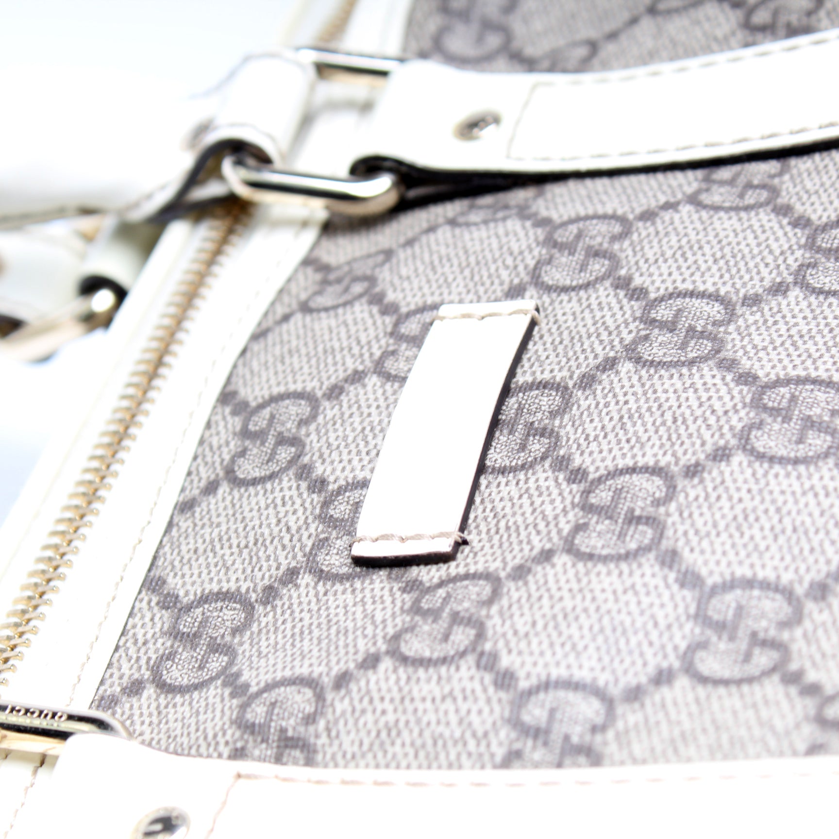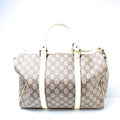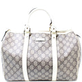 This Gucci Joy Boston Bagis eye catching bag. The exterior is in the classic Gucci GG coated canvas.
